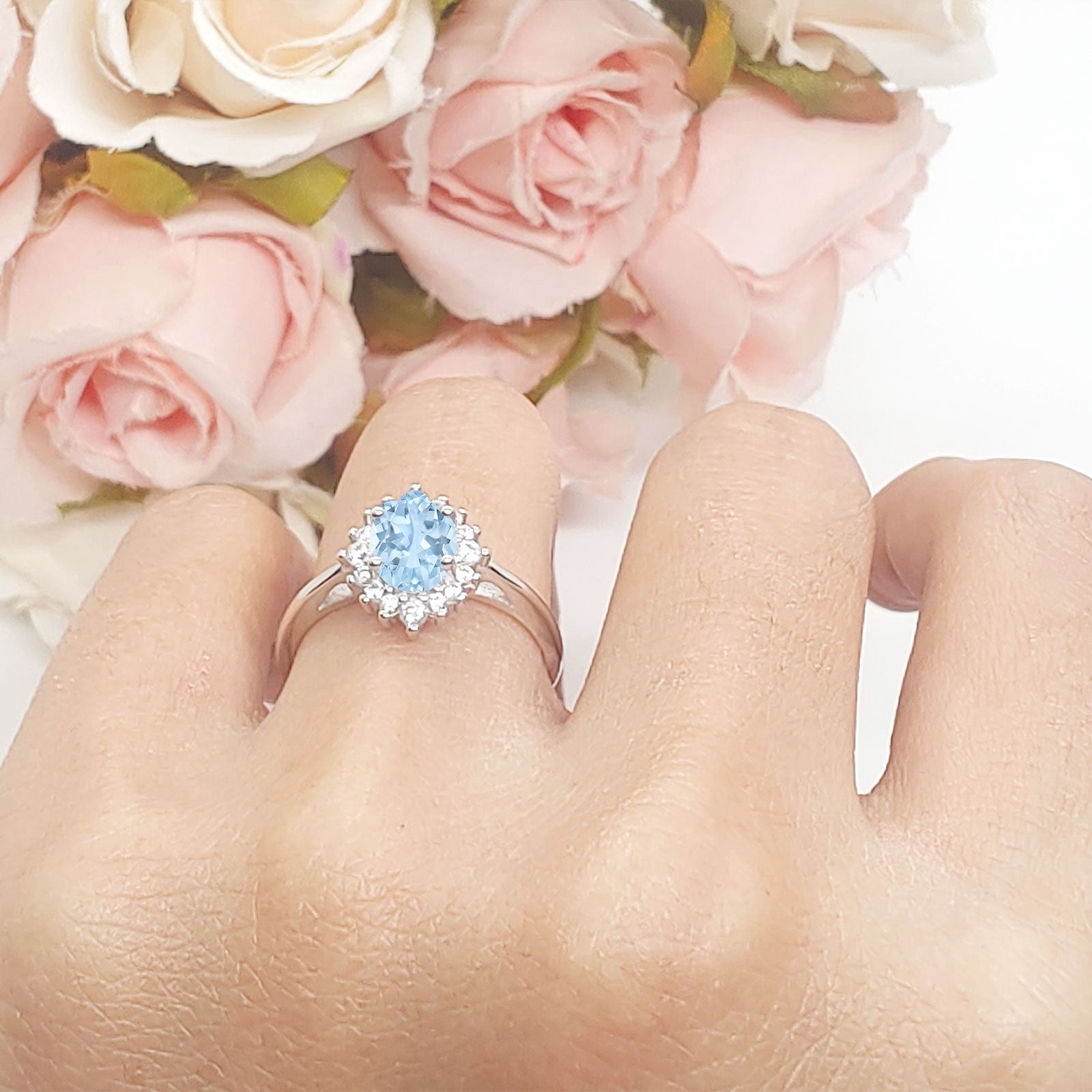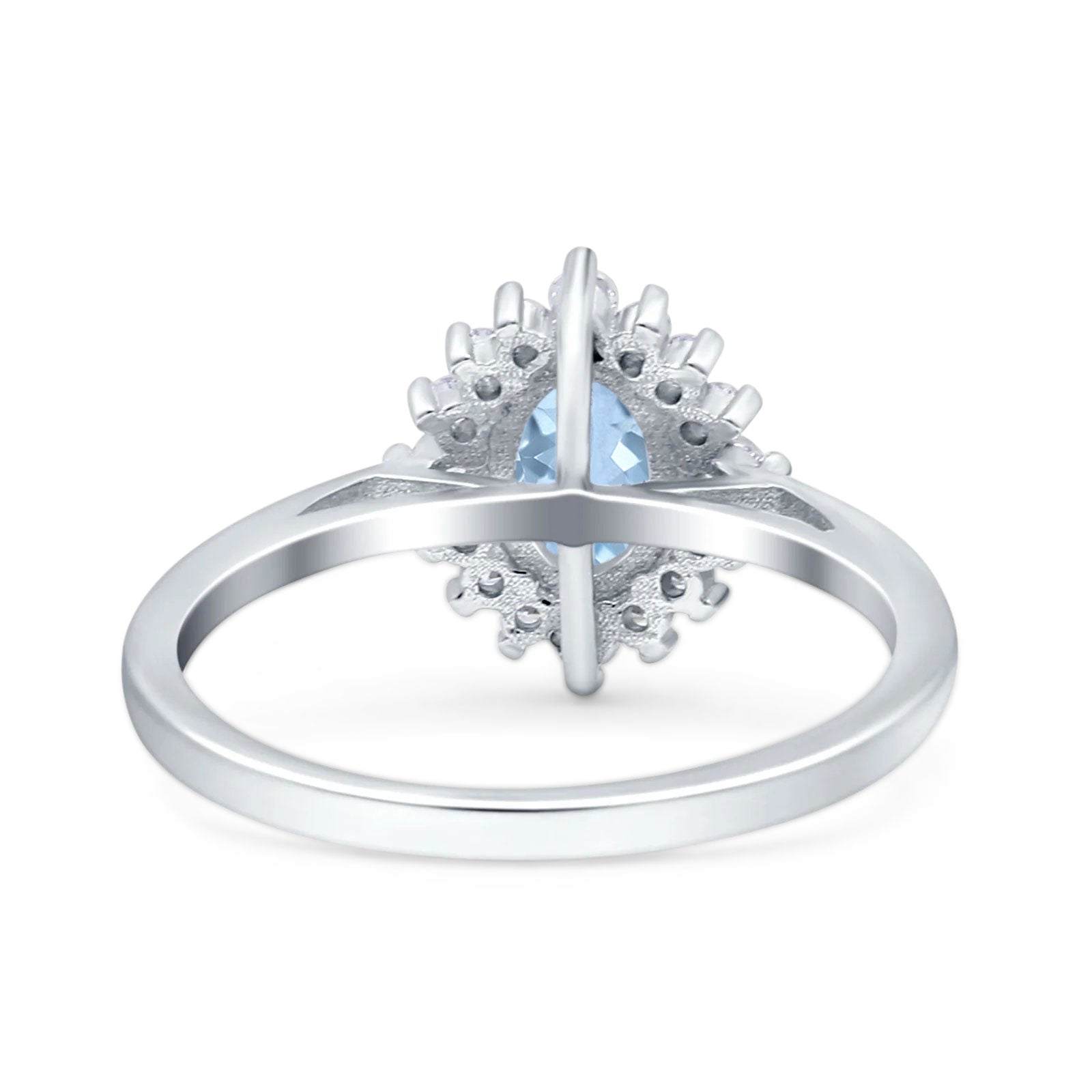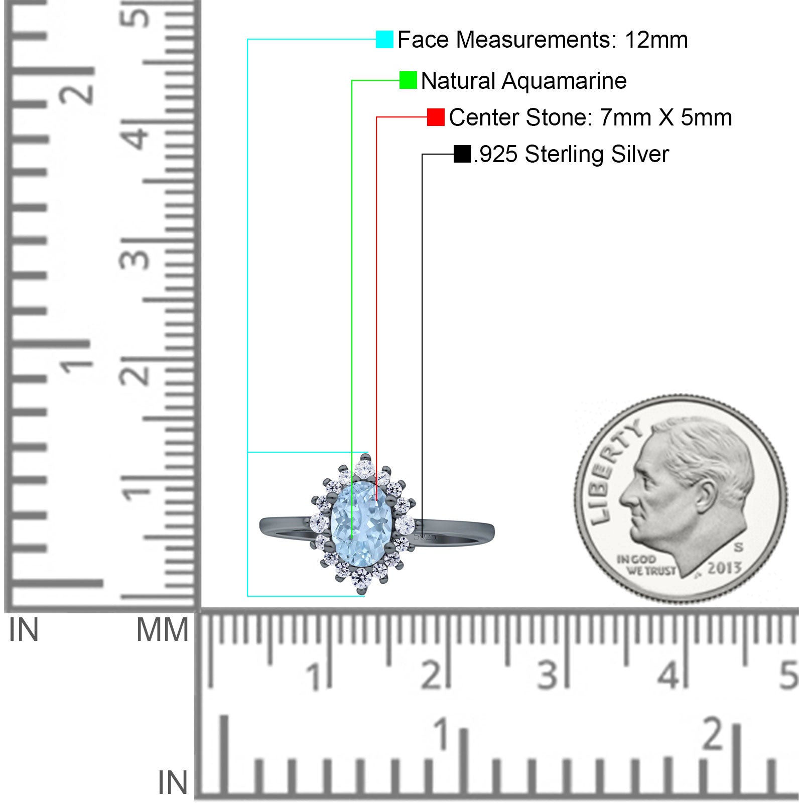 Art Deco Oval Natural Aquamarine Halo Floral Cubic Zirconia Ring 925 Sterling Silver
