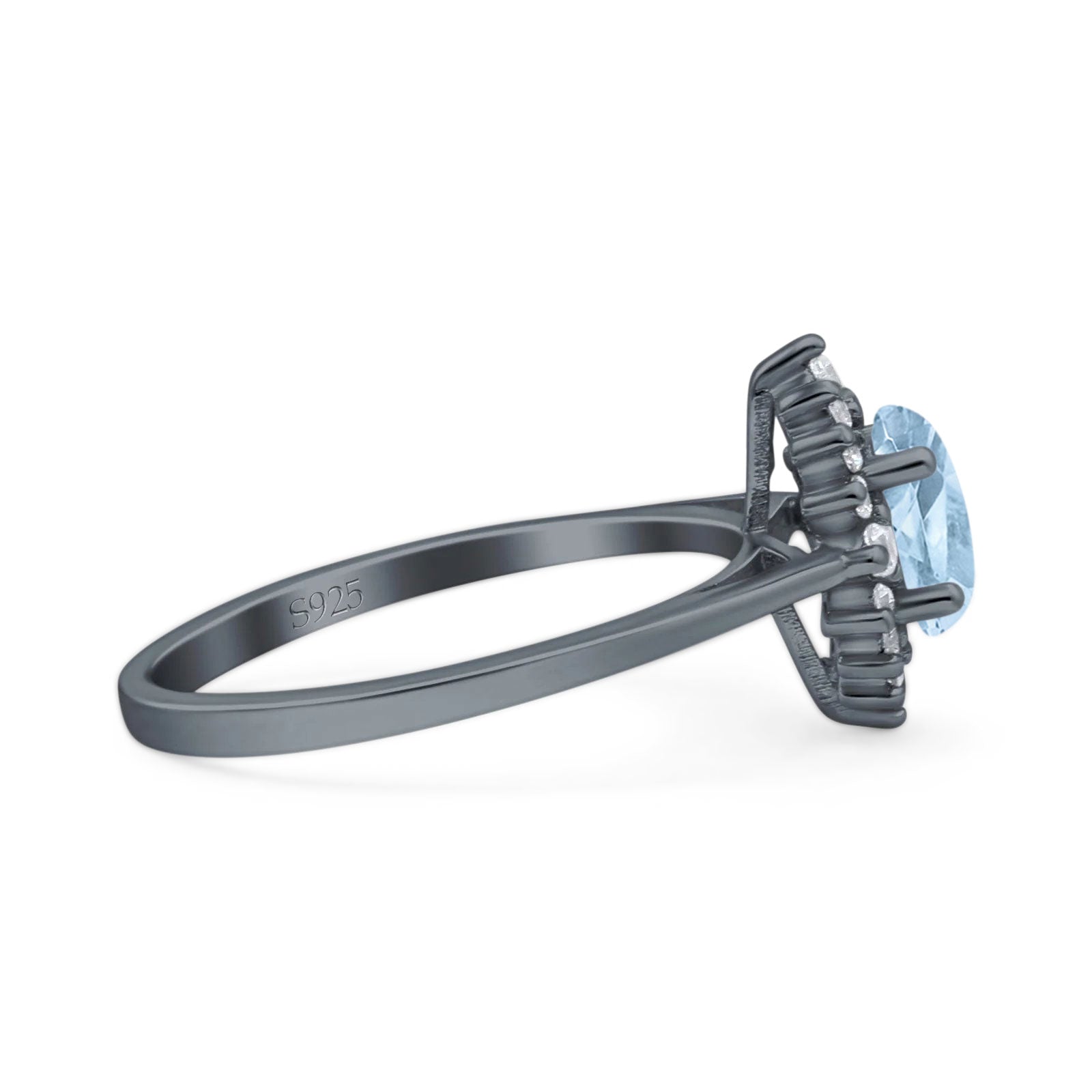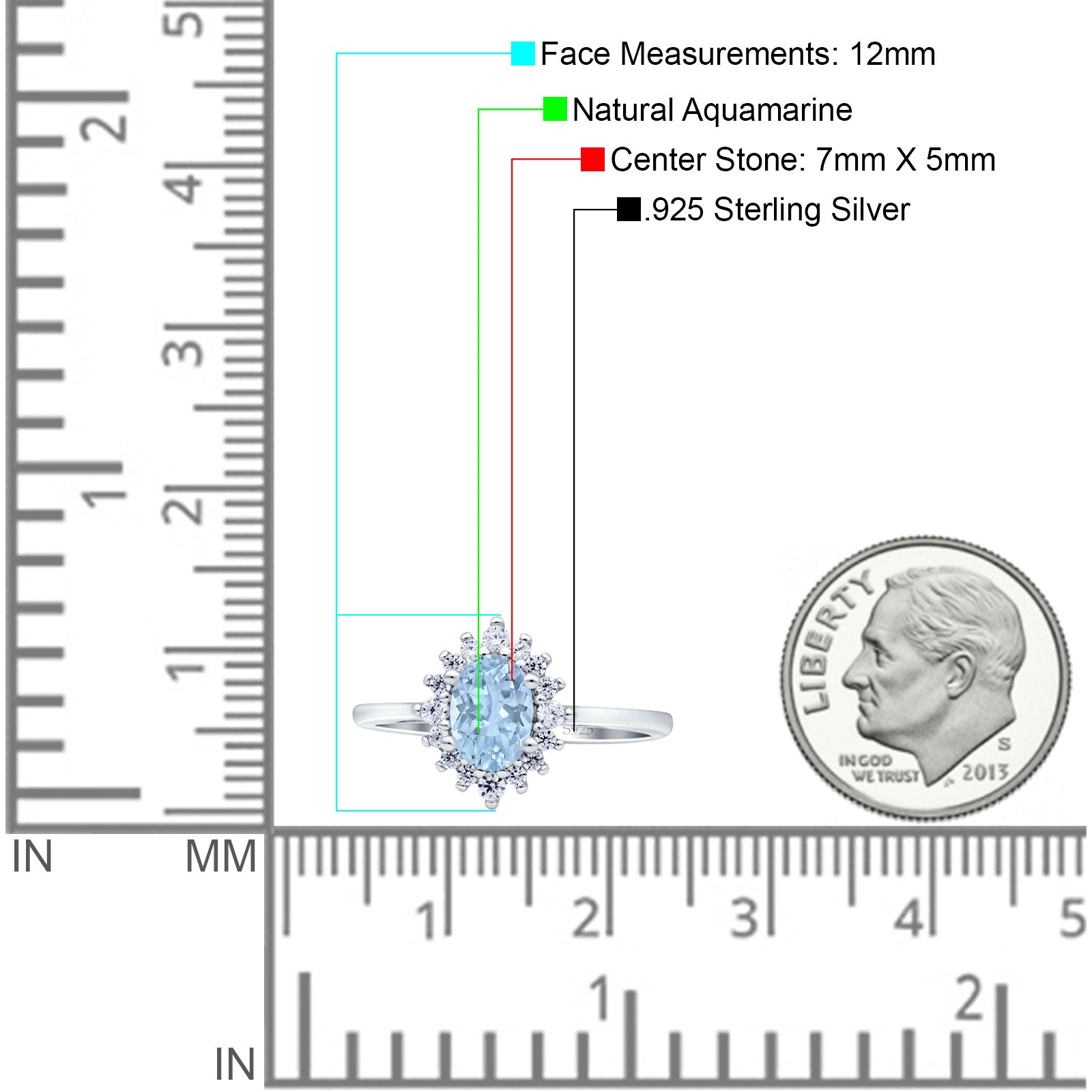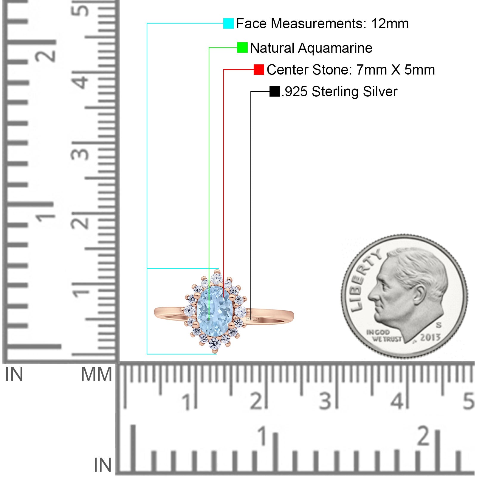 Art Deco Oval Natural Aquamarine Halo Floral Cubic Zirconia Ring 925 Sterling Silver