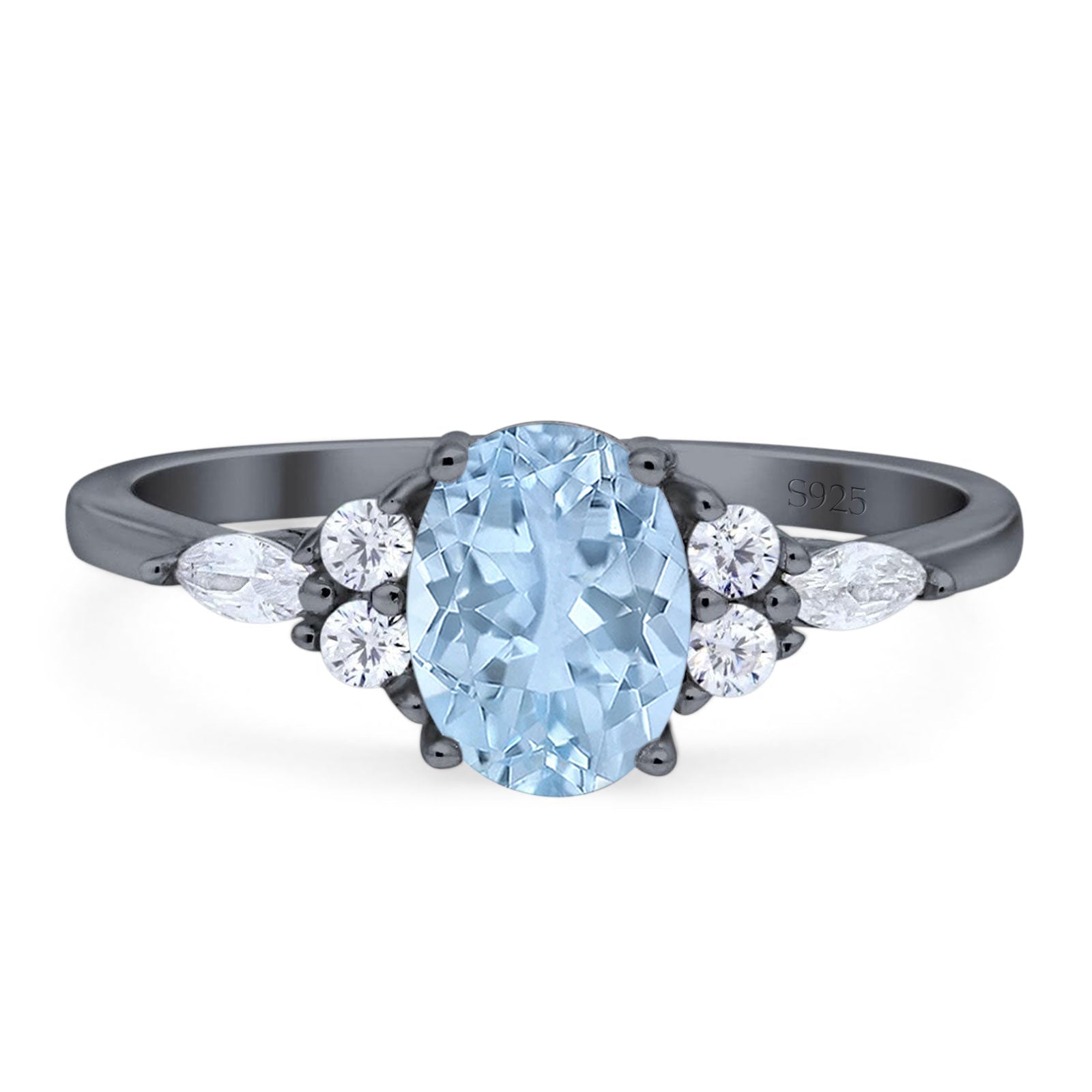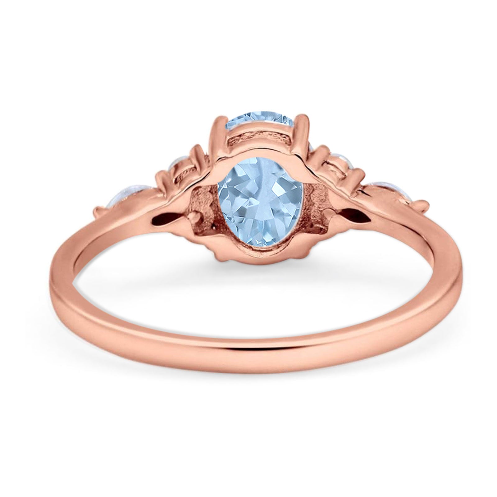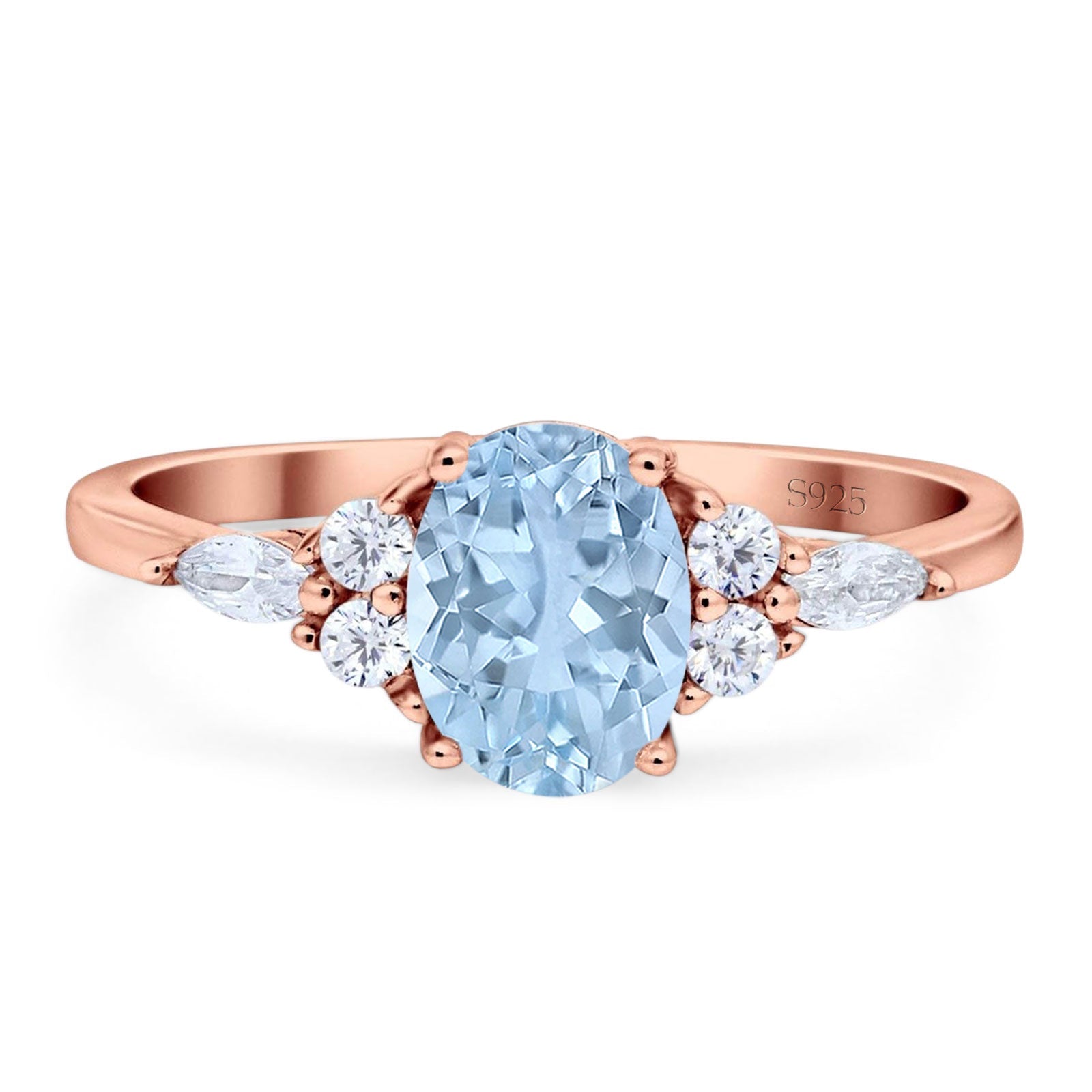 Art Deco Oval Natural Aquamarine Wedding Ring 925 Sterling Silver