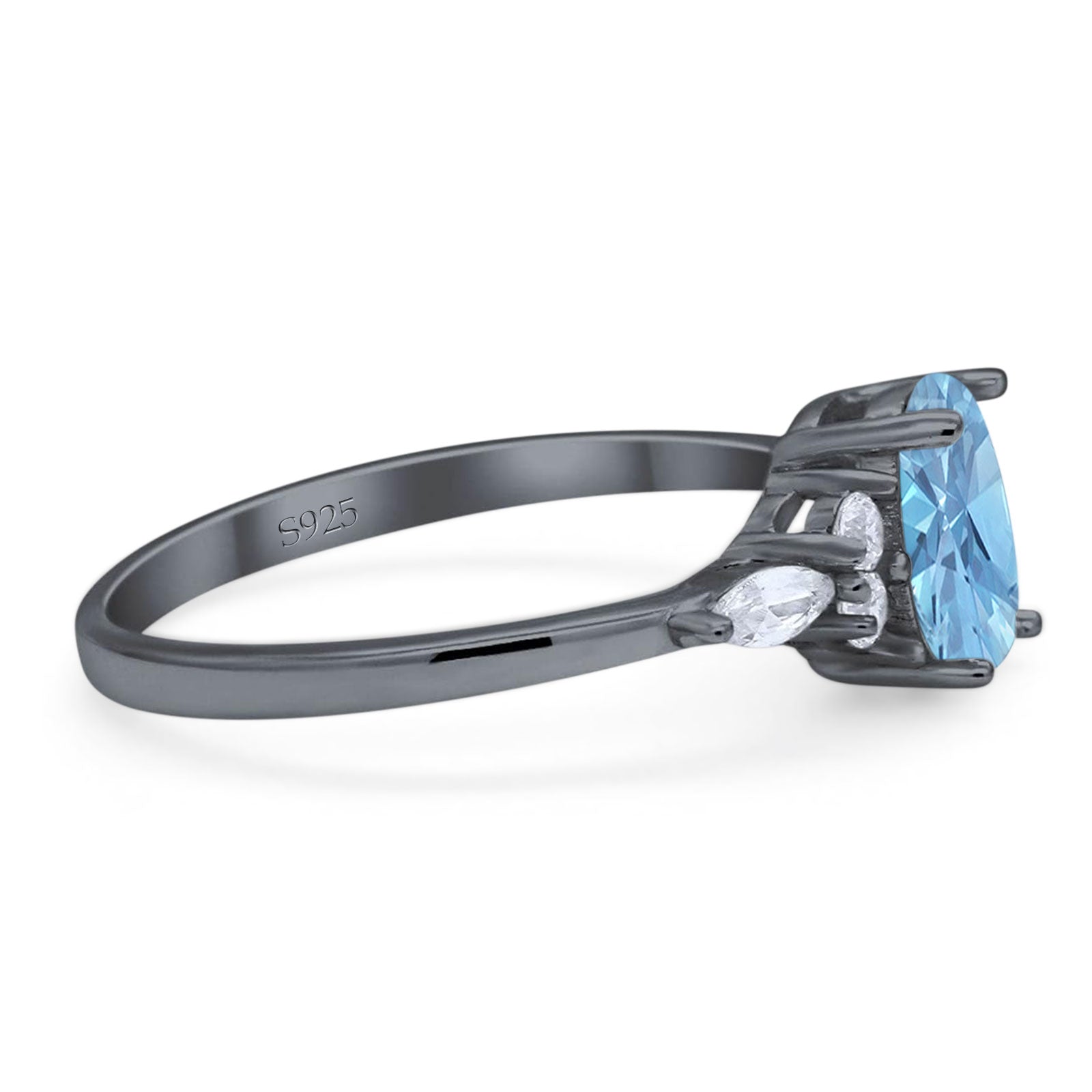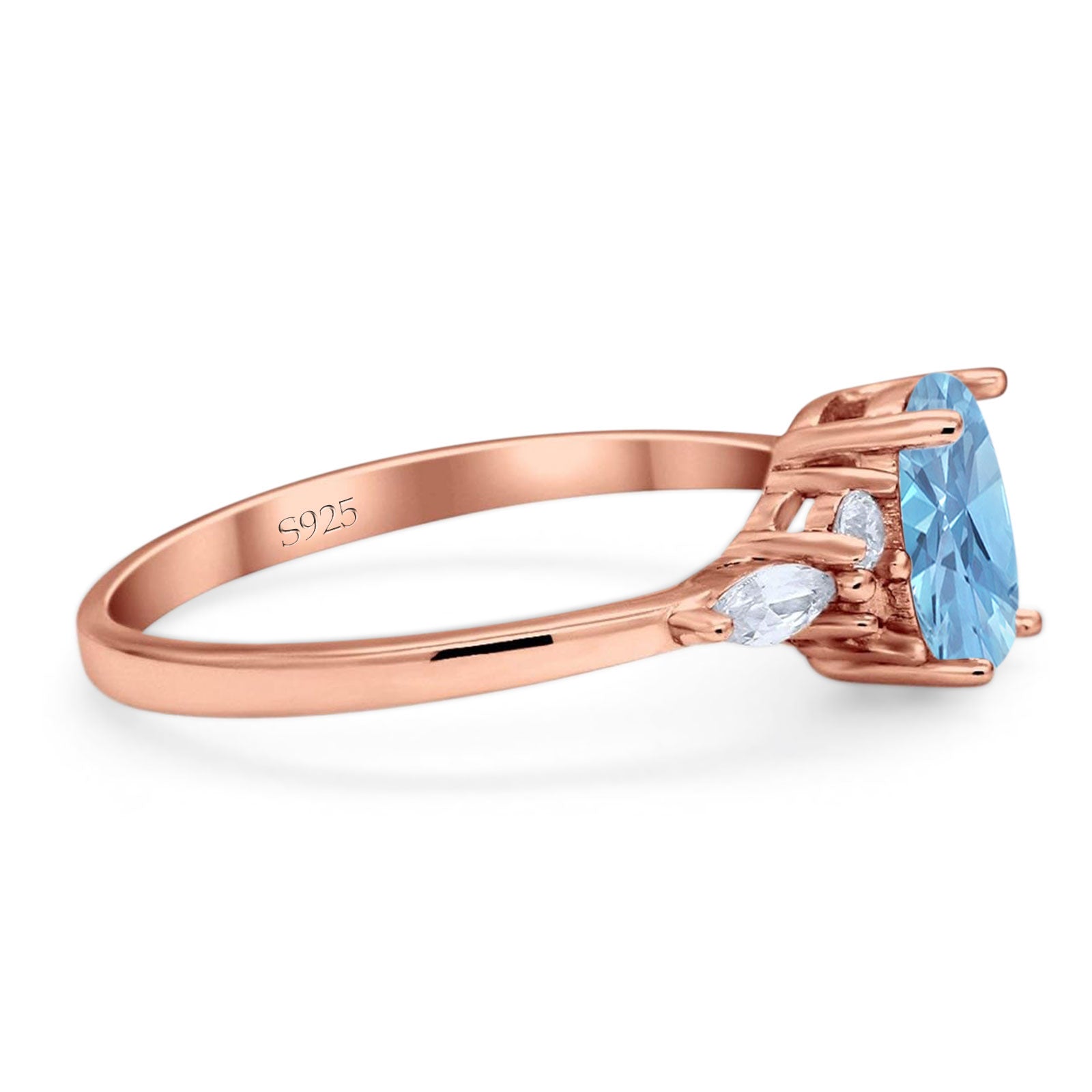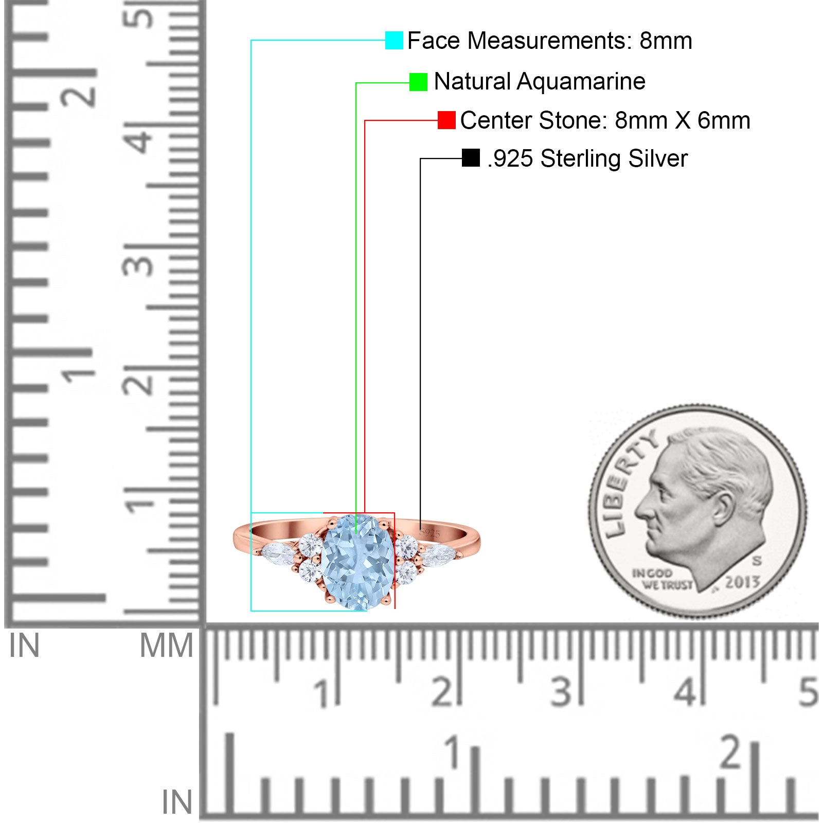 Art Deco Oval Natural Aquamarine Wedding Ring 925 Sterling Silver