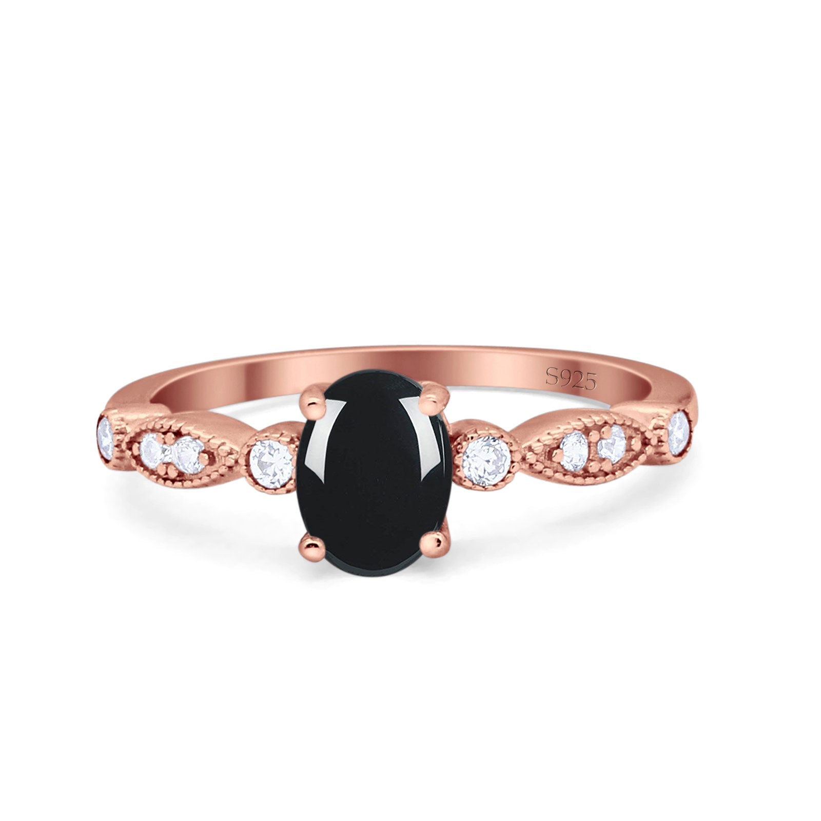 Natural Black Onyx Rose Tone Silver