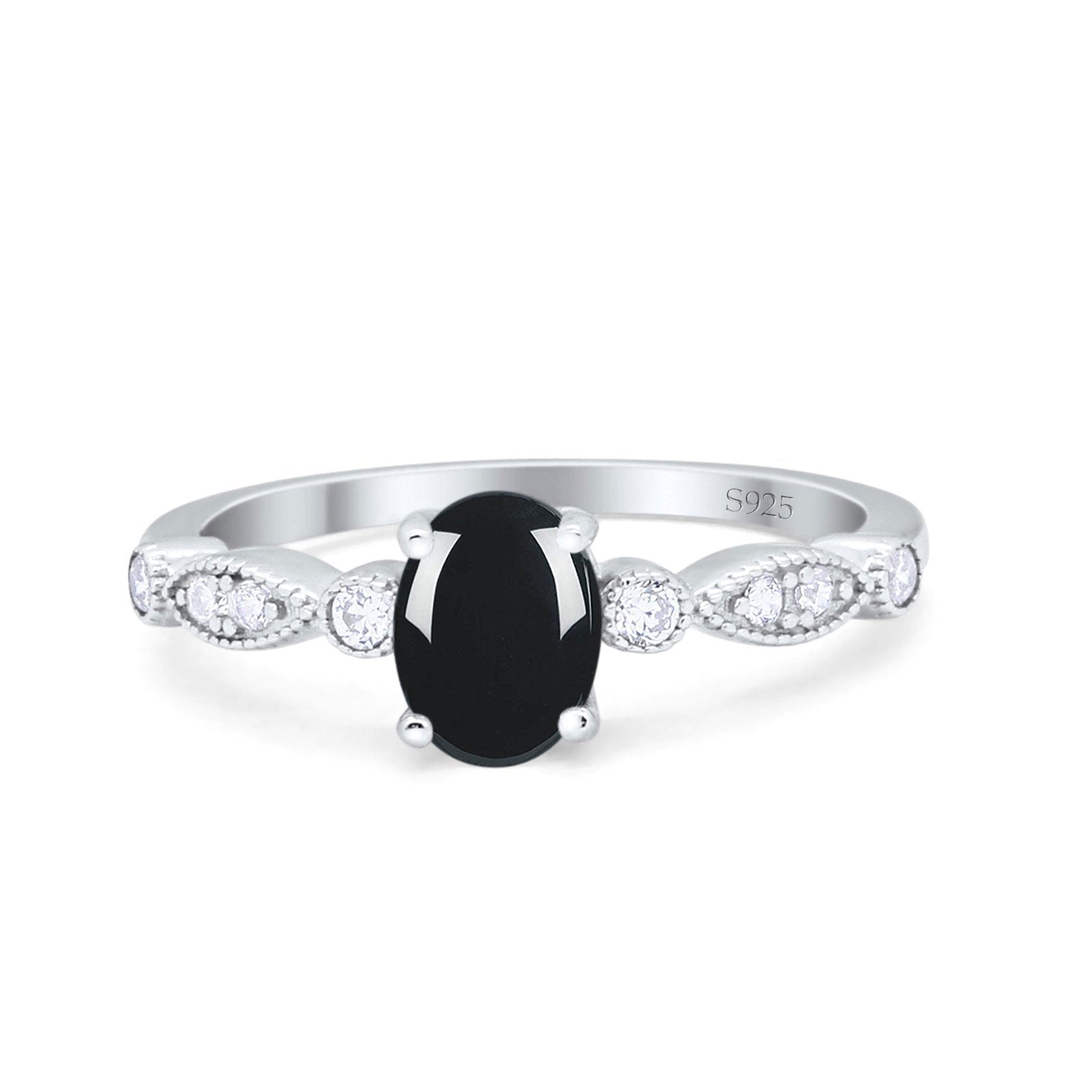 Art Deco Oval Natural Black Onyx Marquise Style Ring 925 Sterling Silver