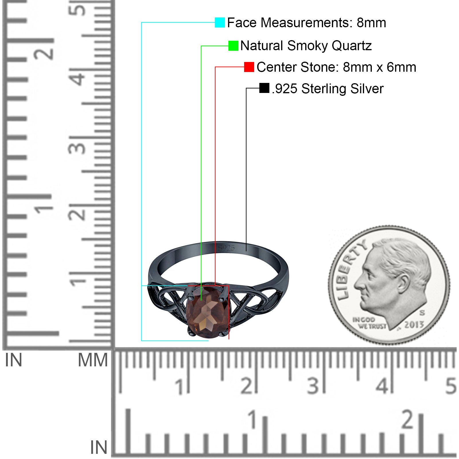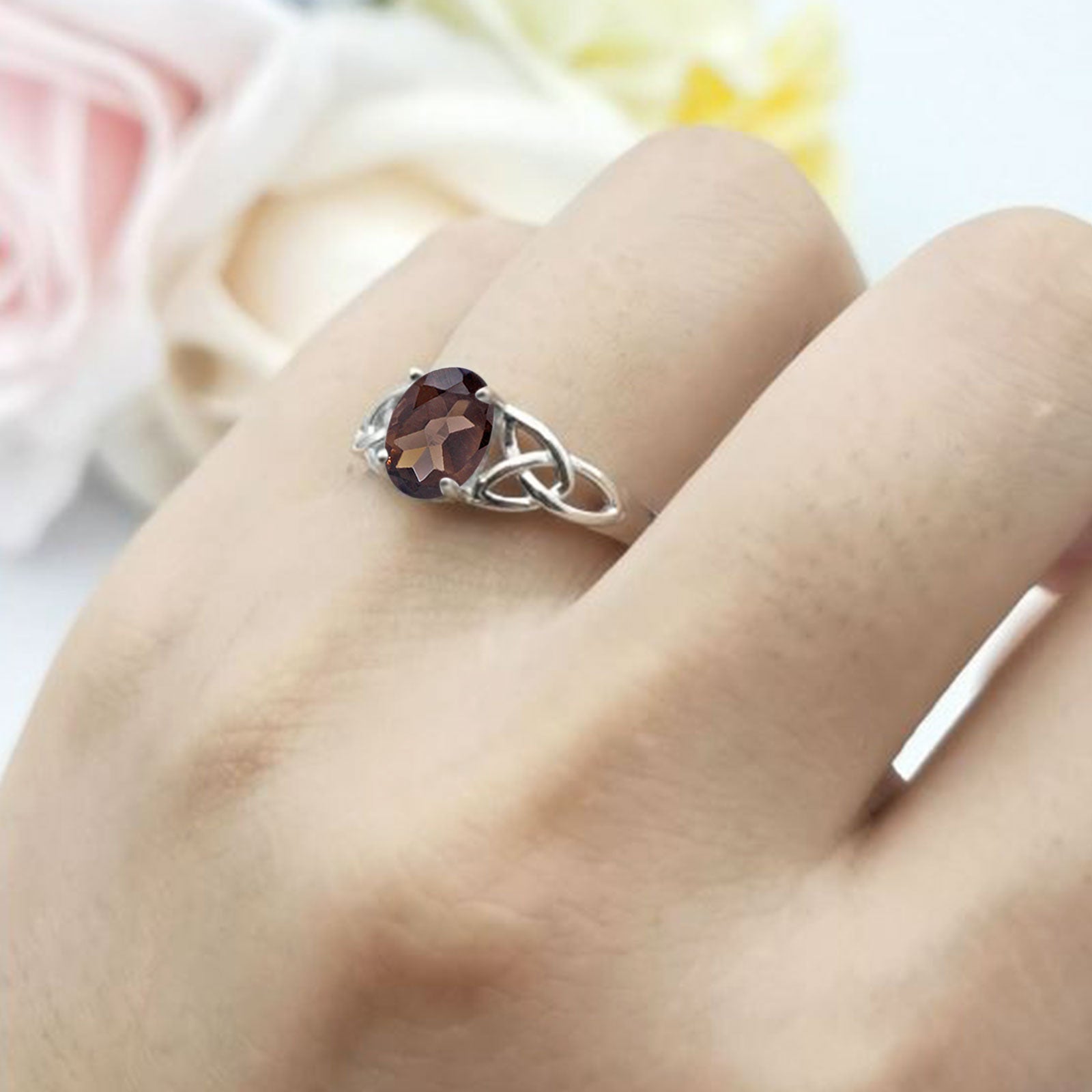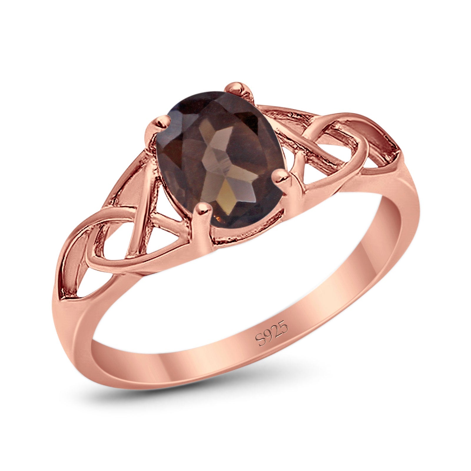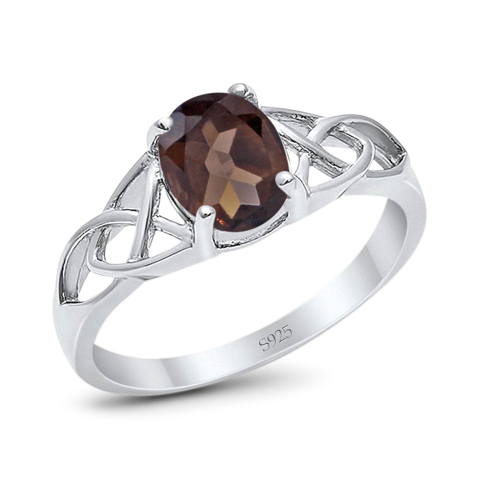 Art Deco Oval Natural Chocolate Smoky Quartz Celtic Trinity Knot Ring 925 Sterling Silver