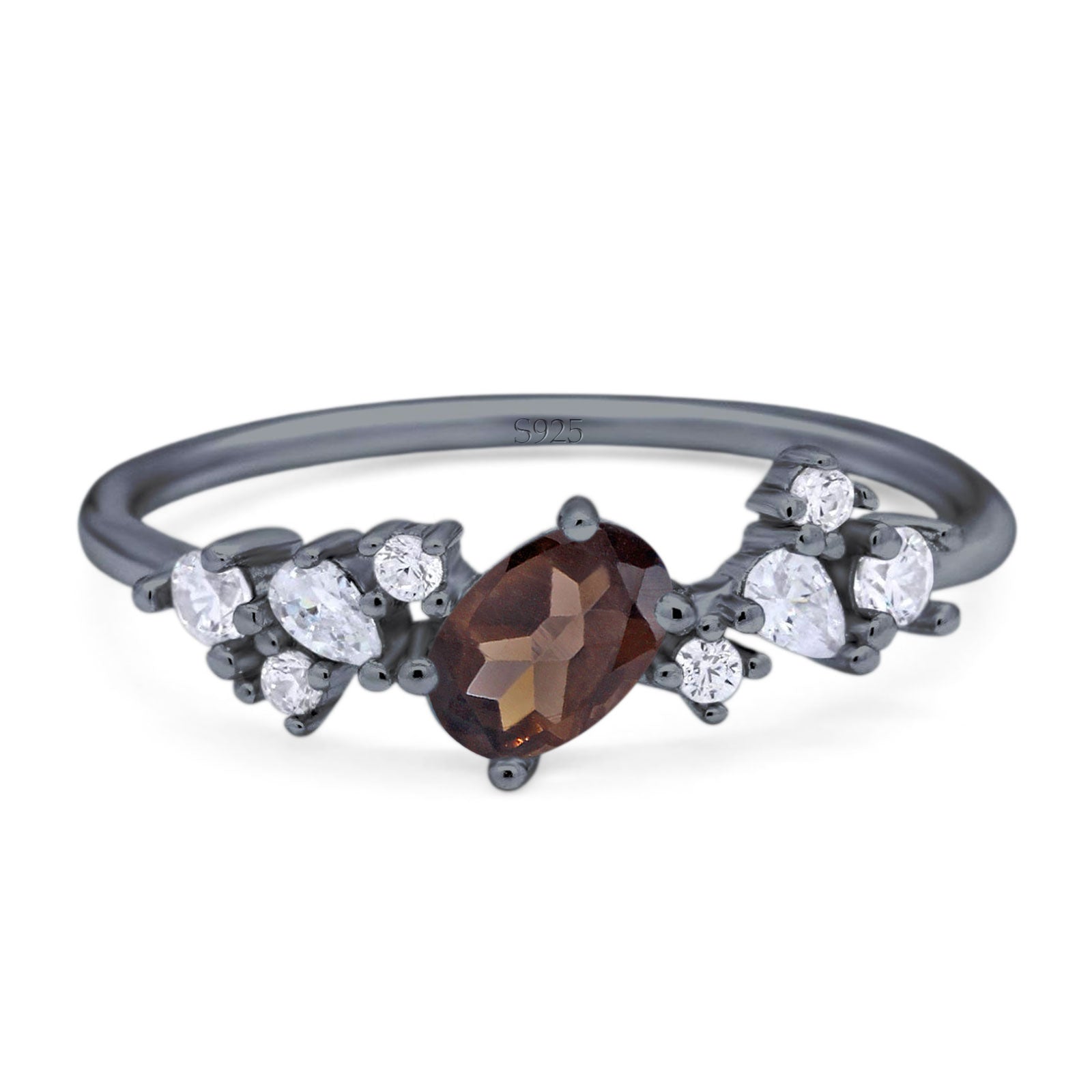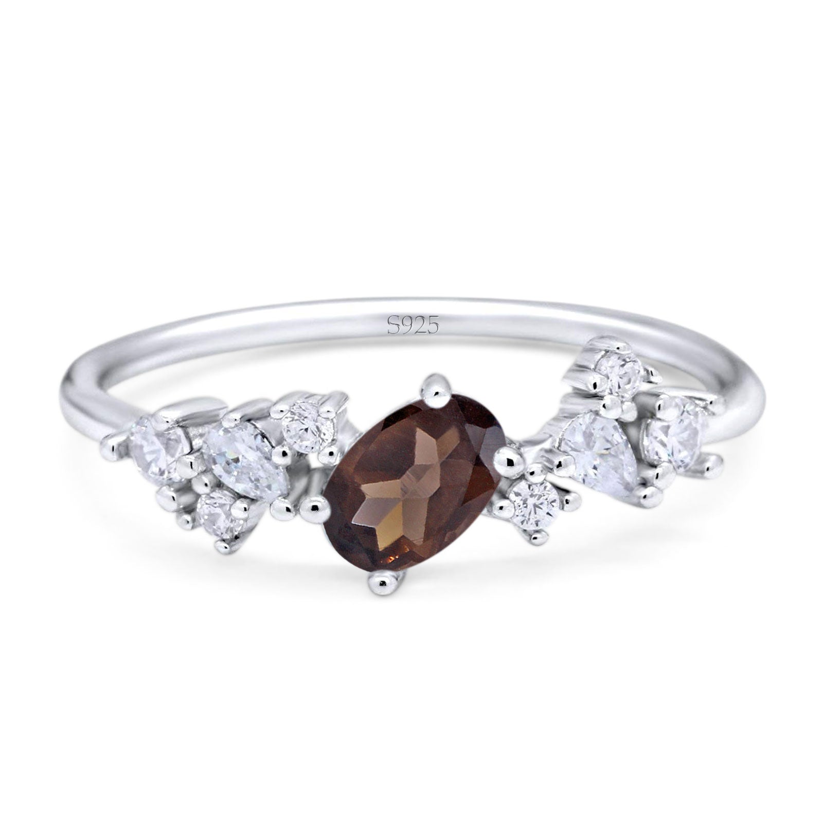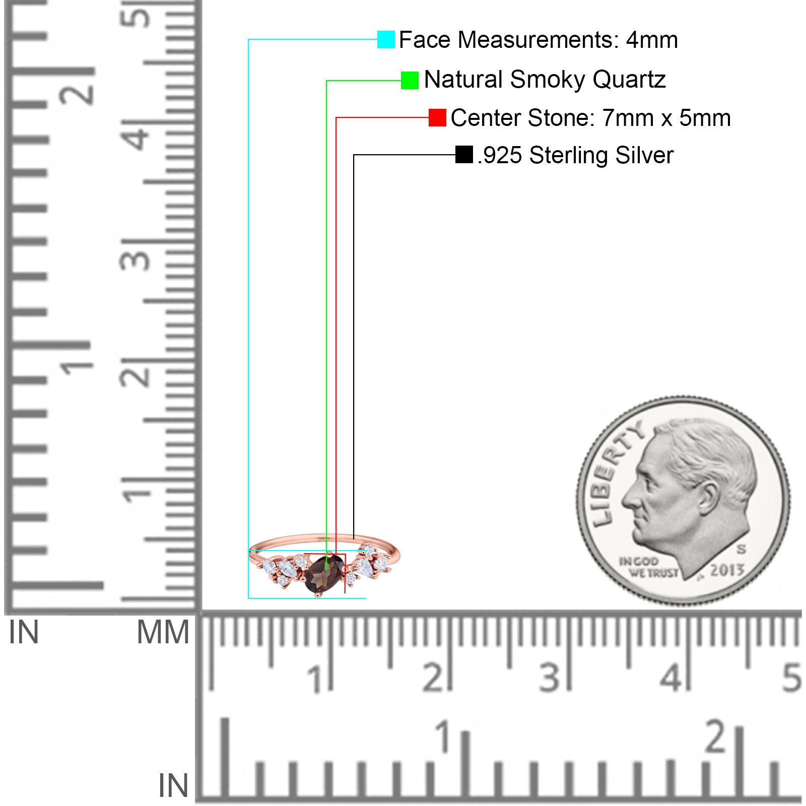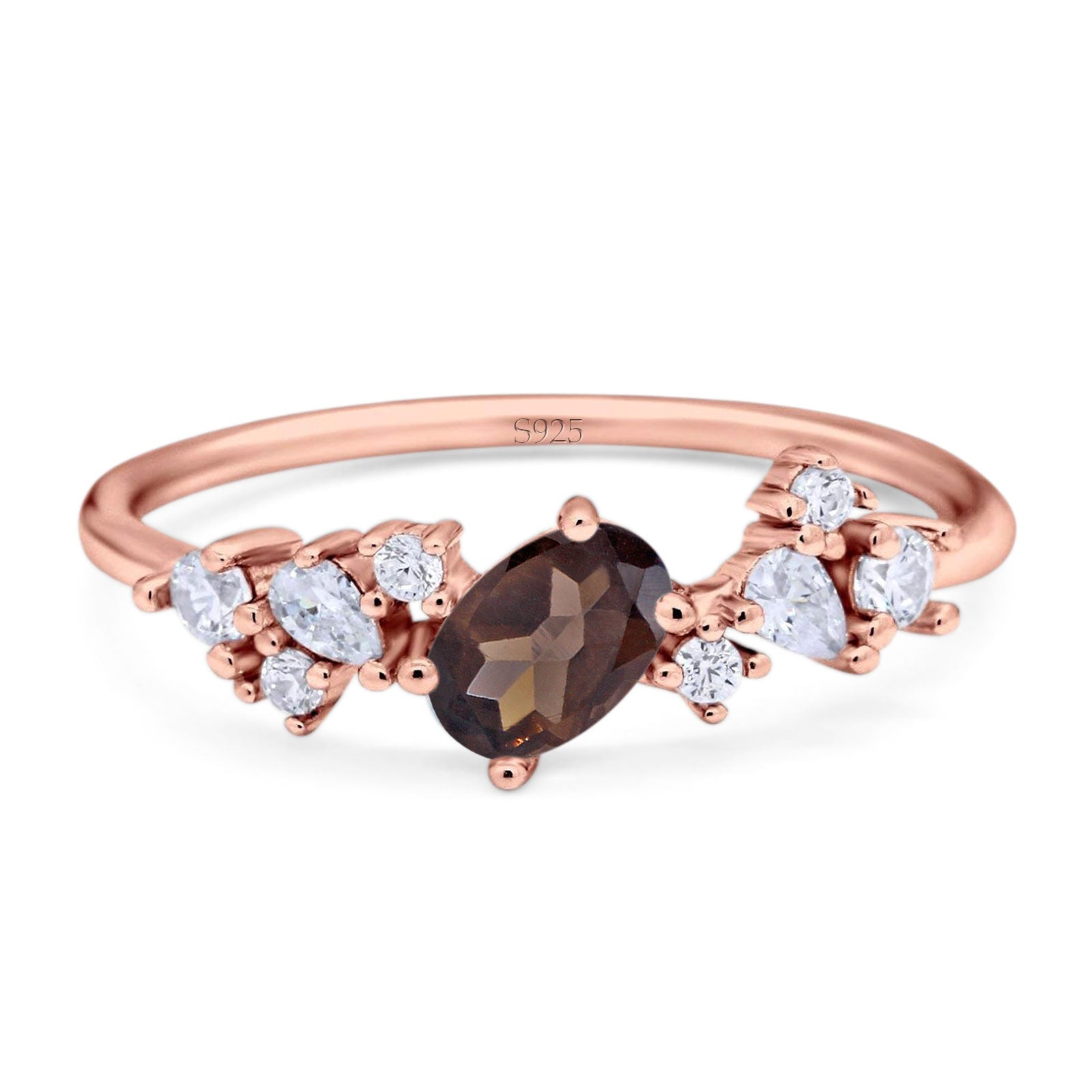 Art Deco Oval Natural Chocolate Smoky Quartz Cluster CZ Ring 925 Sterling Silver