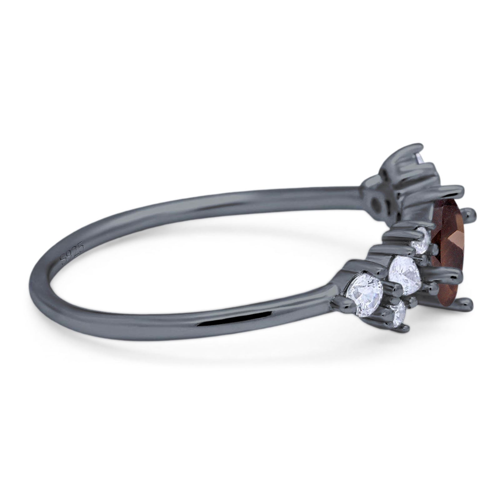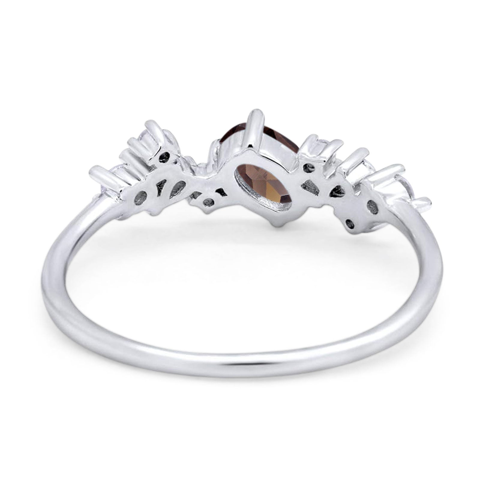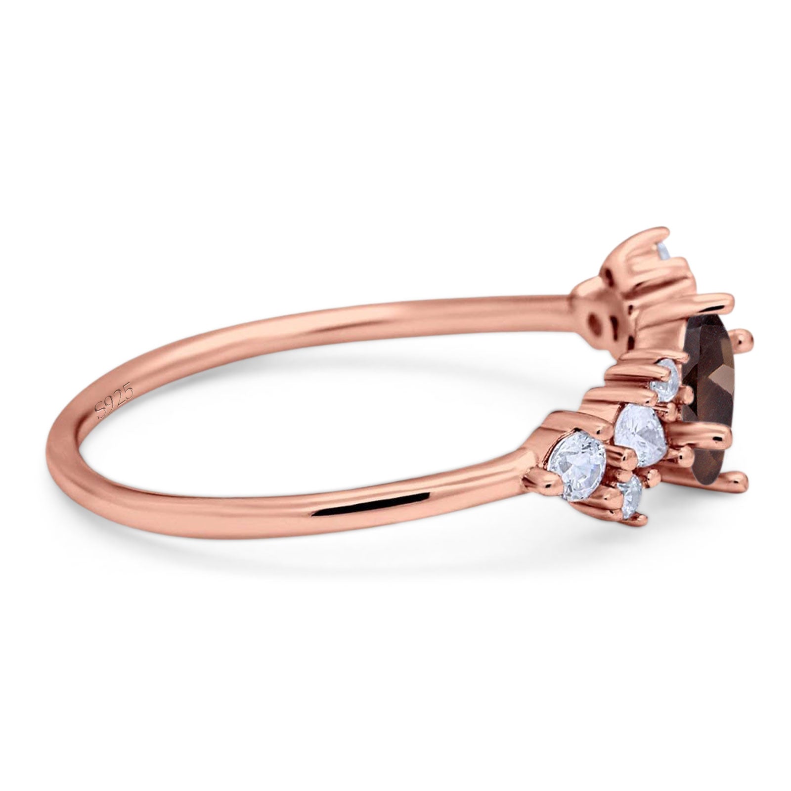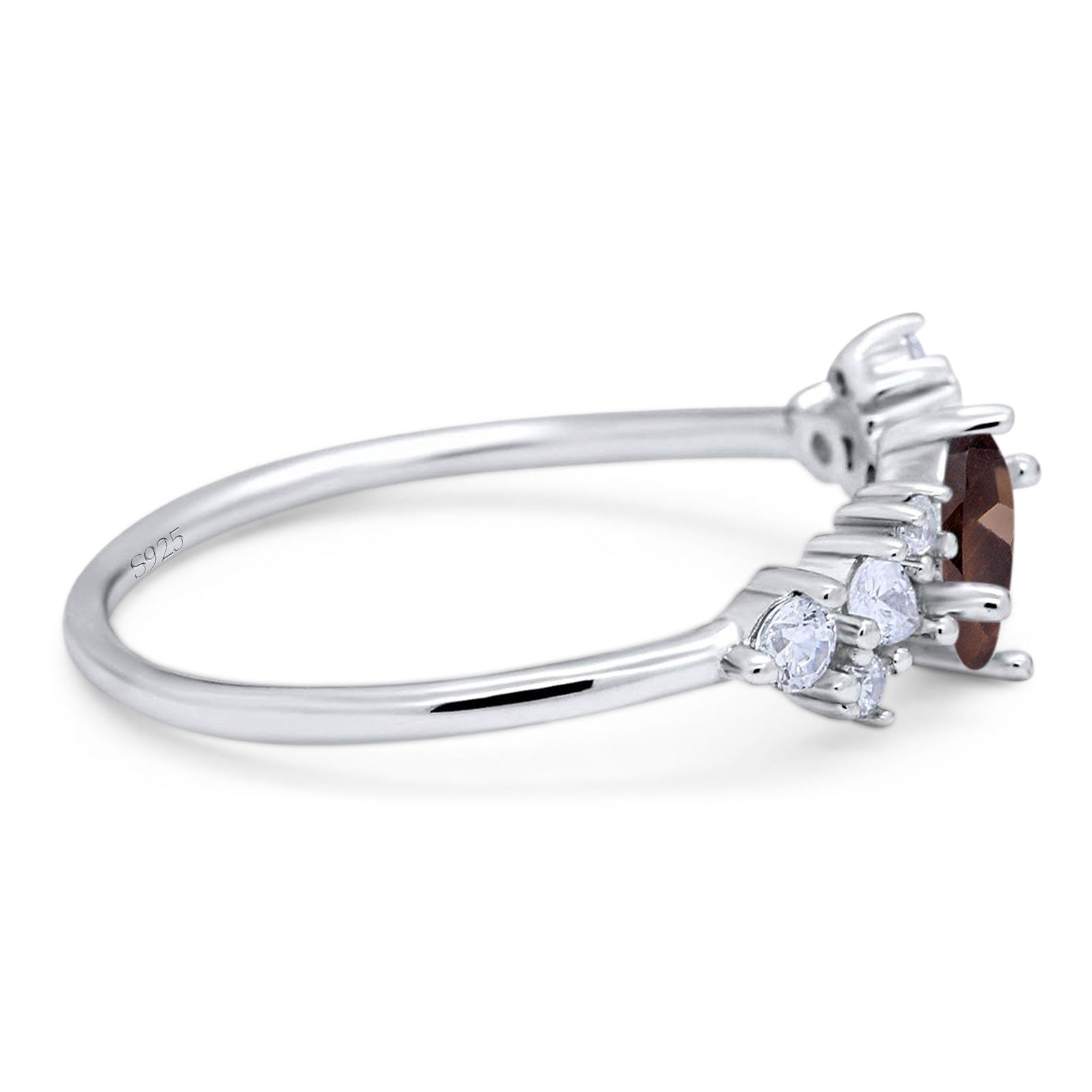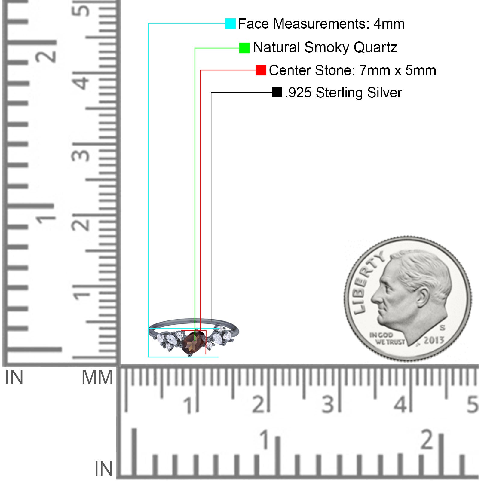 Art Deco Oval Natural Chocolate Smoky Quartz Cluster CZ Ring 925 Sterling Silver