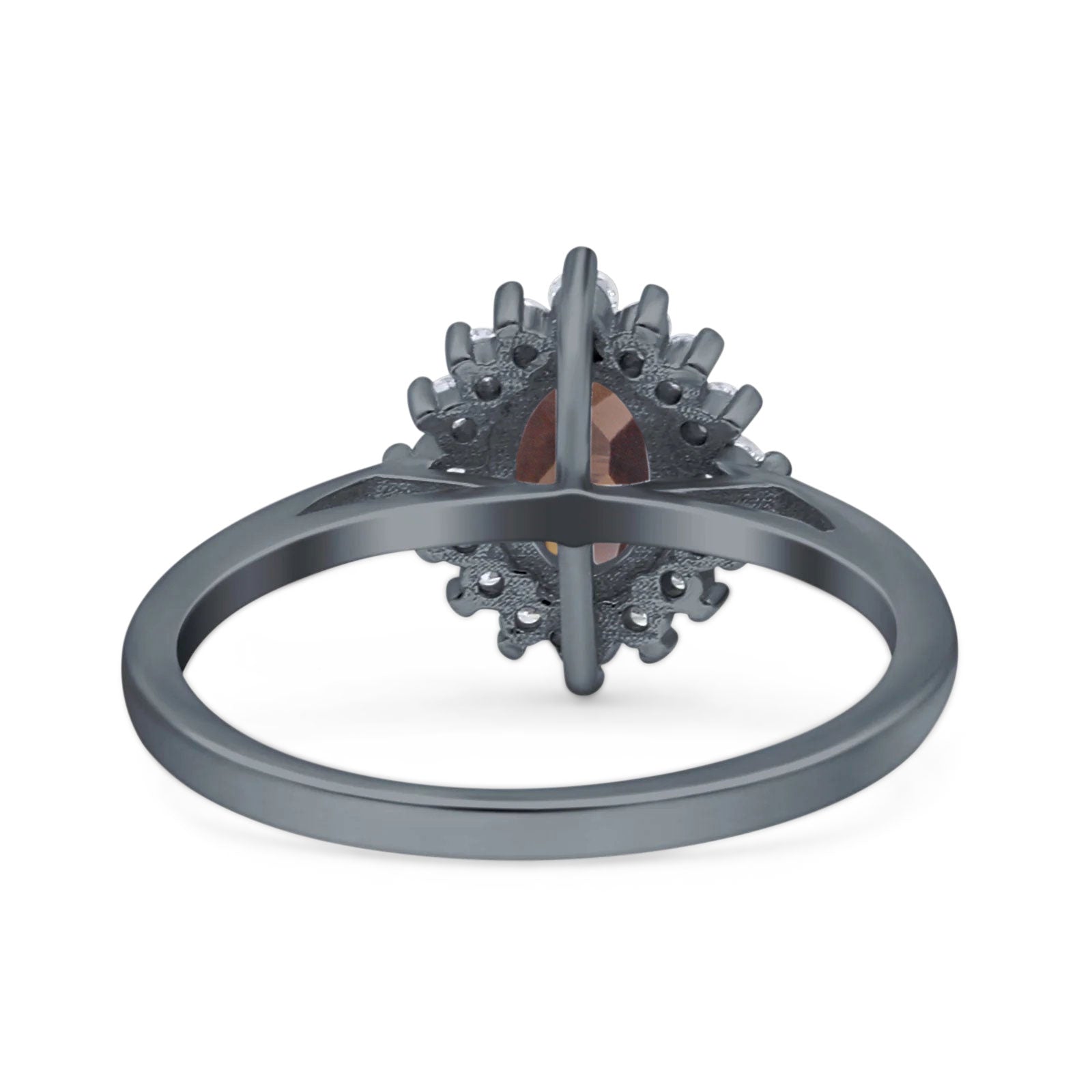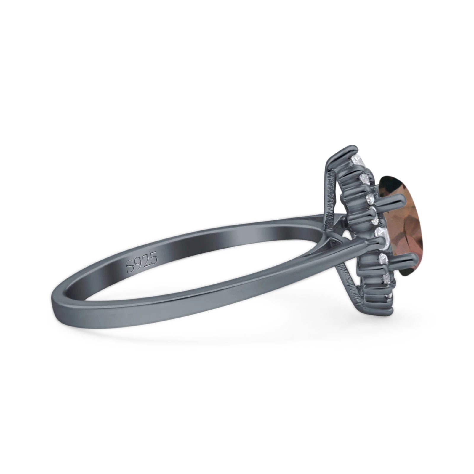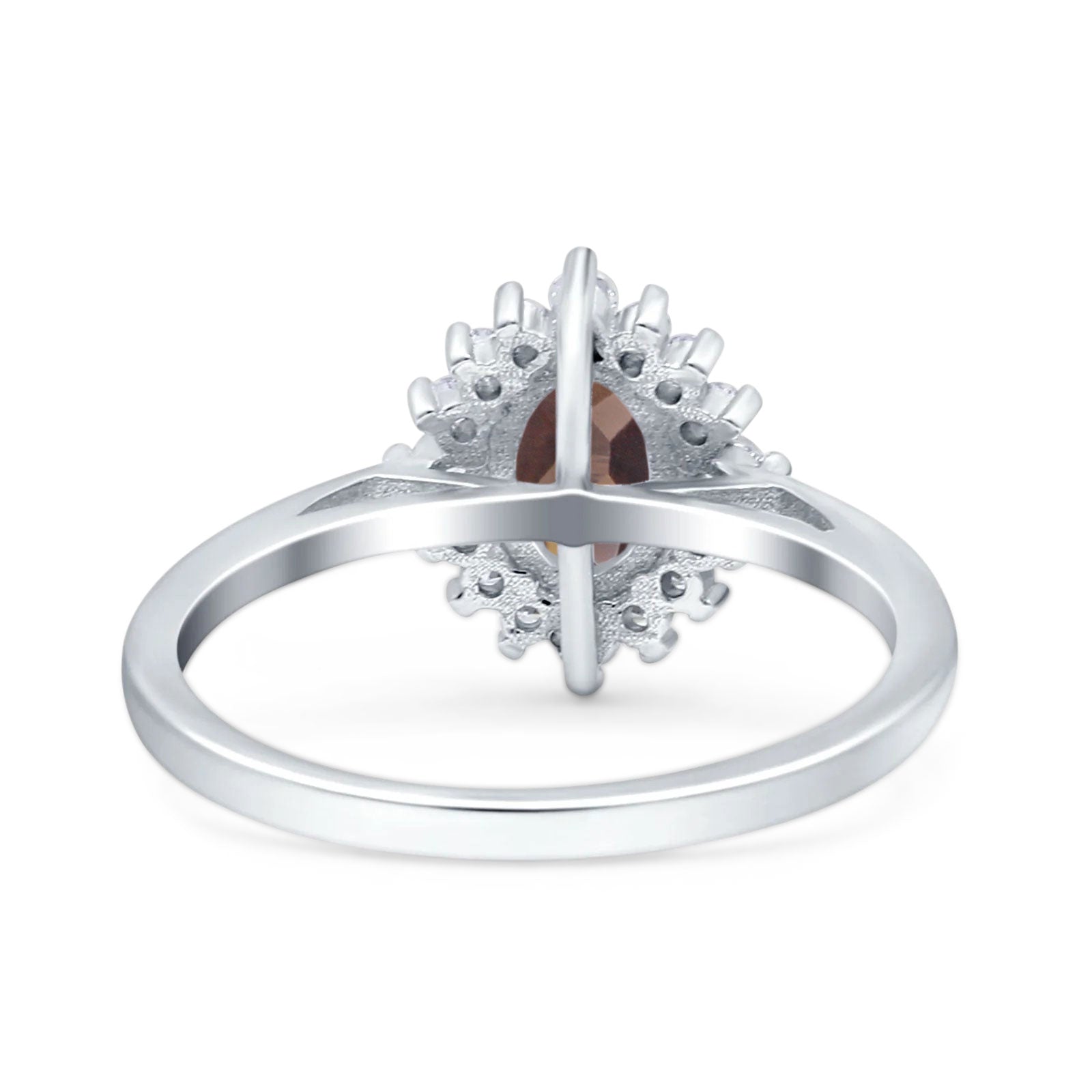 Art Deco Oval Natural Chocolate Smoky Quartz Halo Floral Cubic Zirconia Ring 925 Sterling Silver