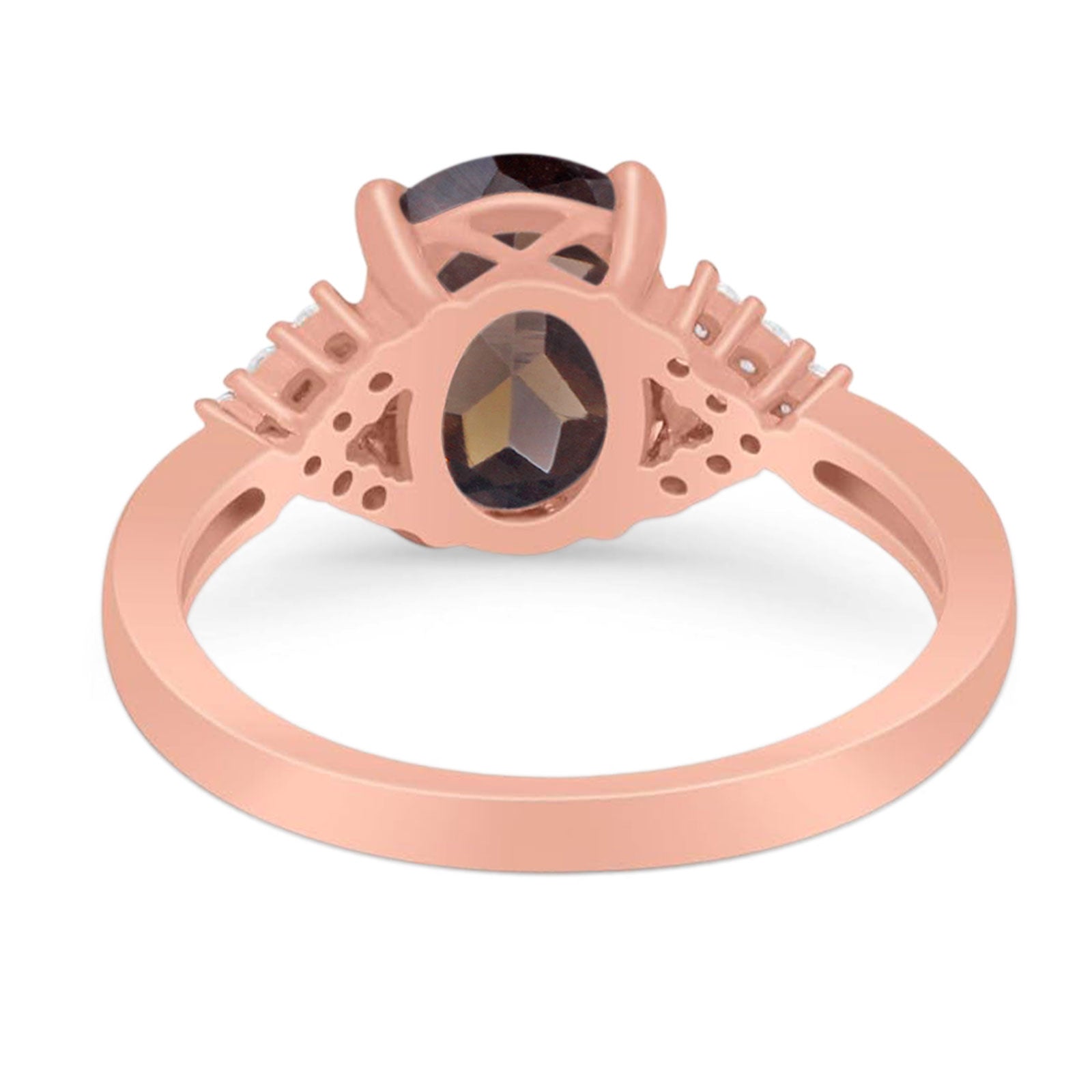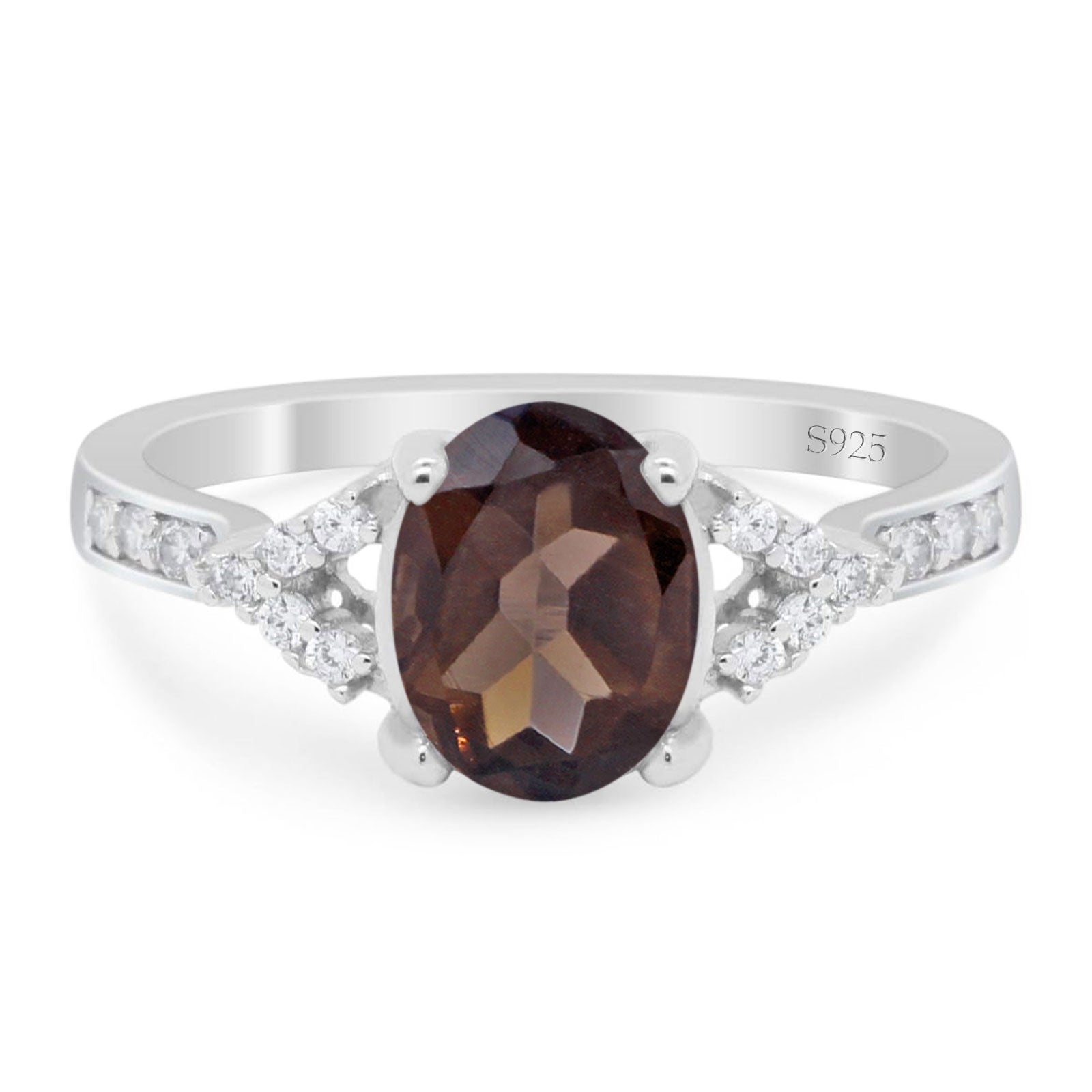 Art Deco Oval Natural Chocolate Smoky Quartz Wedding Ring 925 Sterling Silver