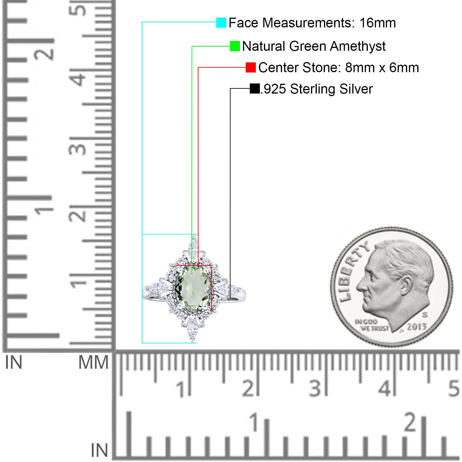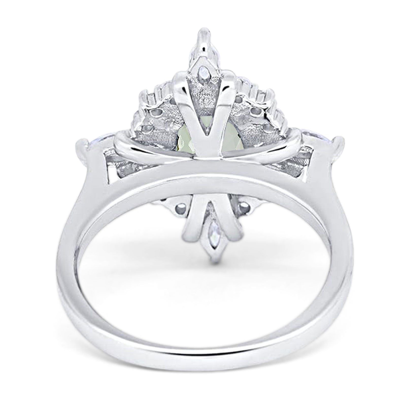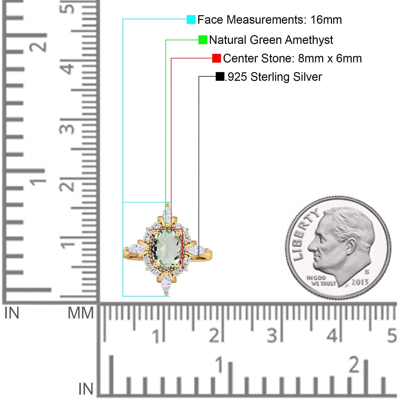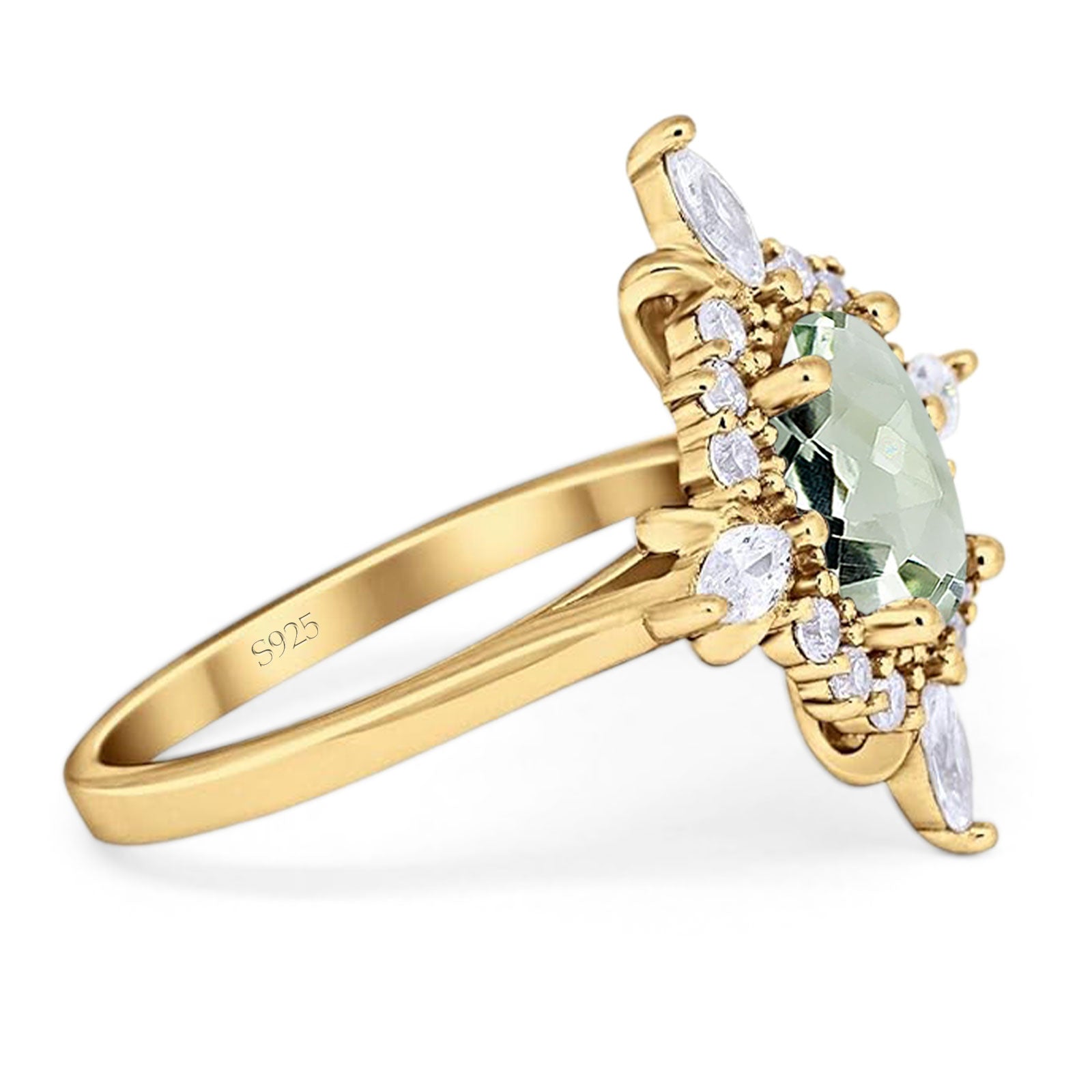 Art Deco Oval Natural Green Amethyst Prasiolite Marquise Style Beaded Ring 925 Sterling Silver