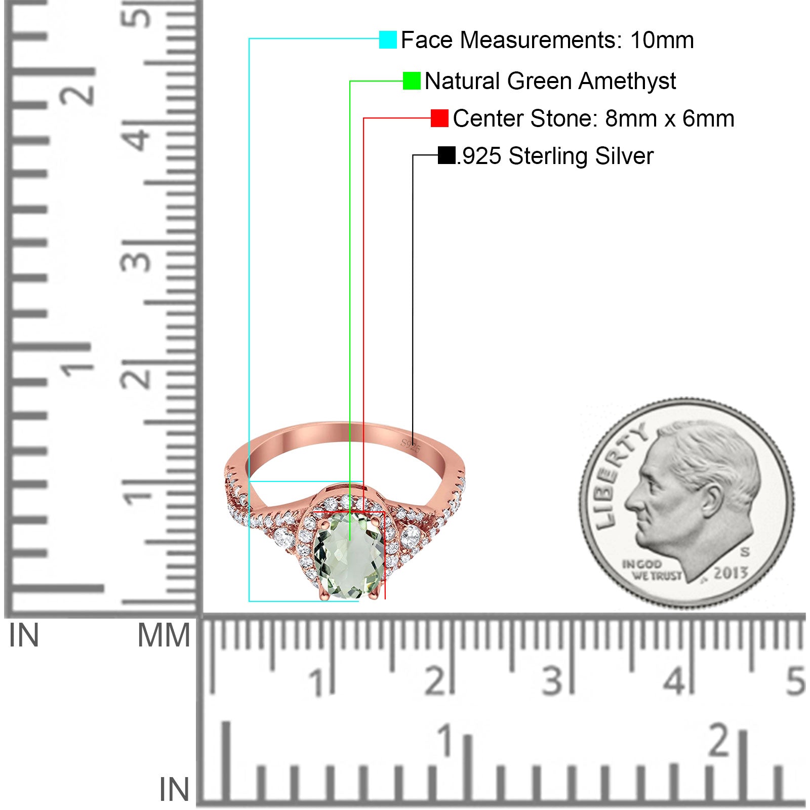 Center Stone Measurements:8mmx6mm.