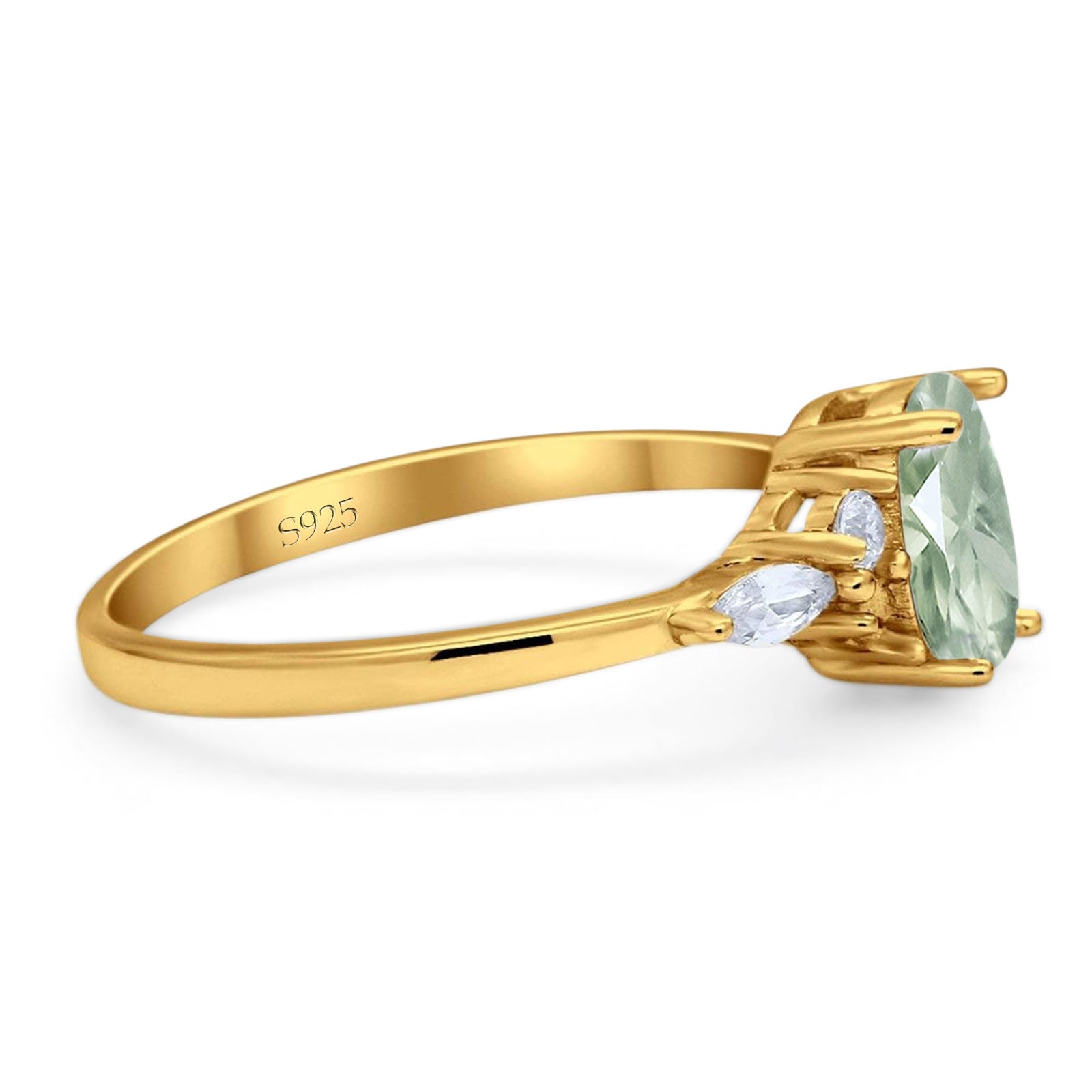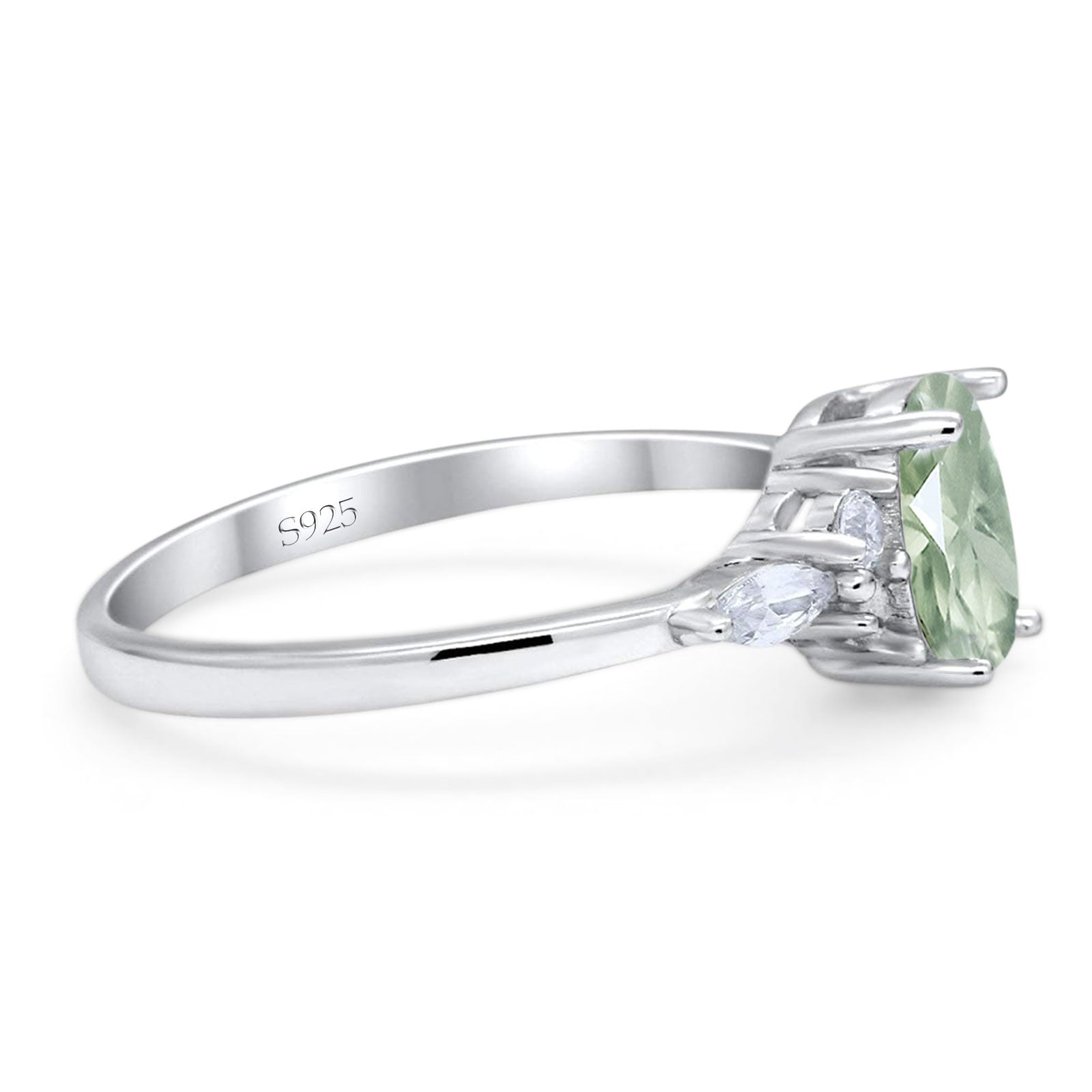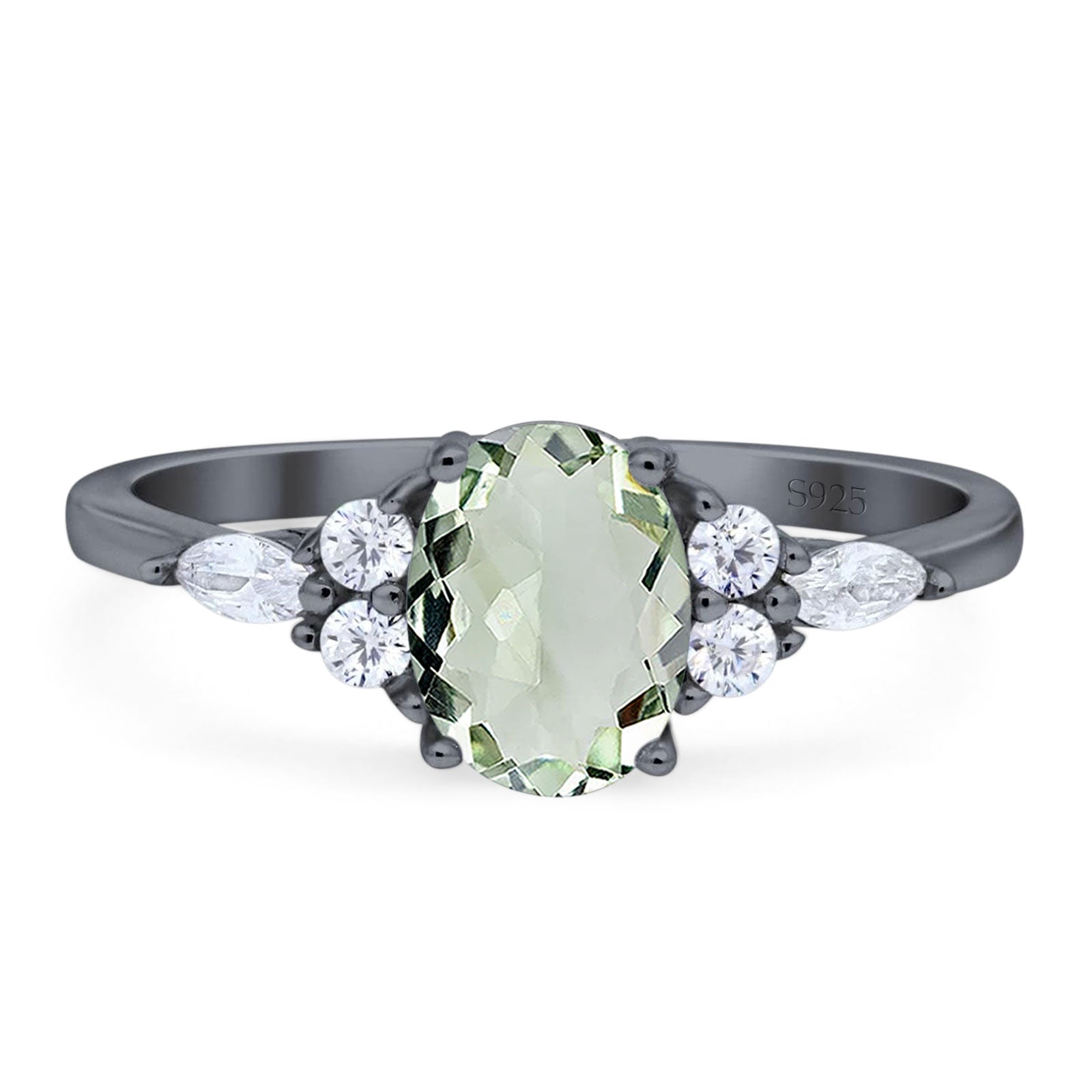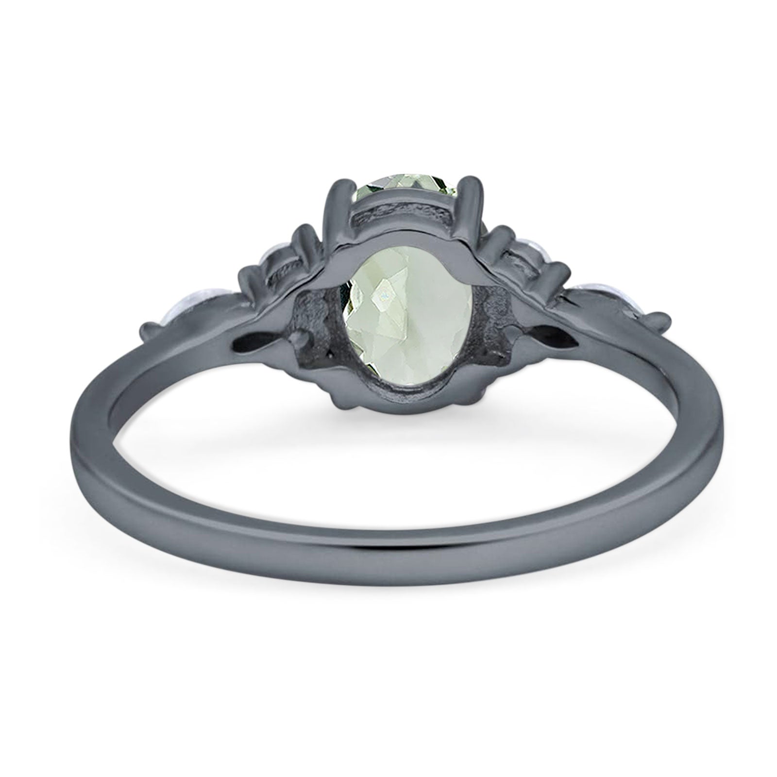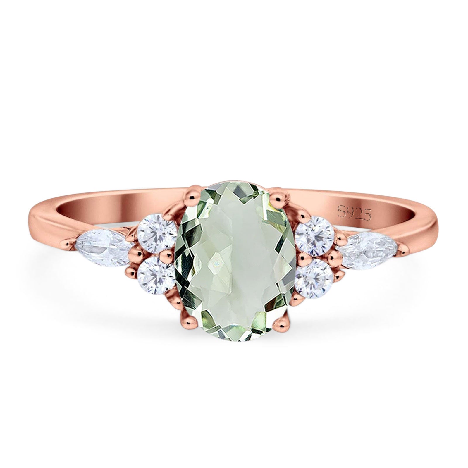 Art Deco Oval Natural Green Amethyst Prasiolite Wedding Ring 925 Sterling Silver