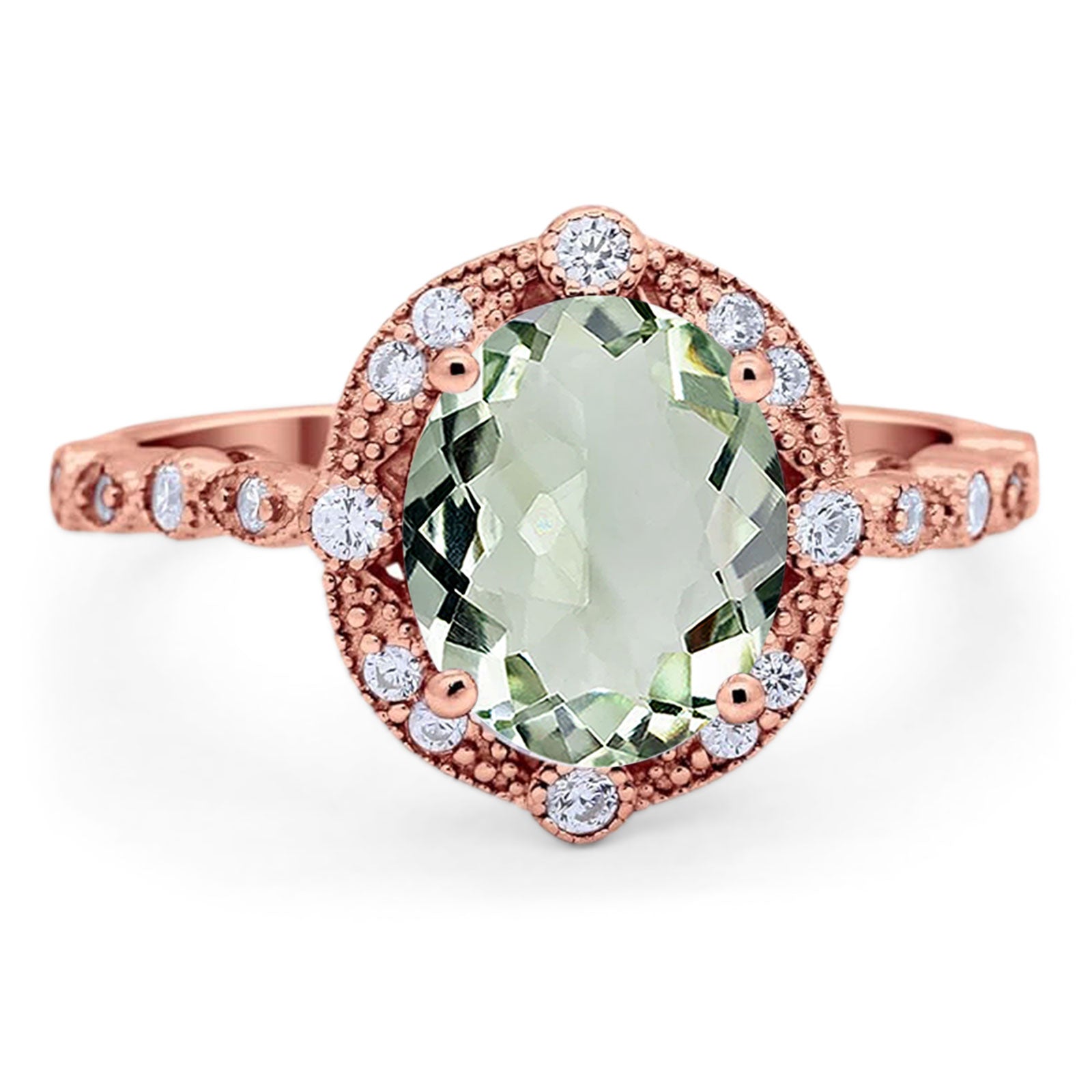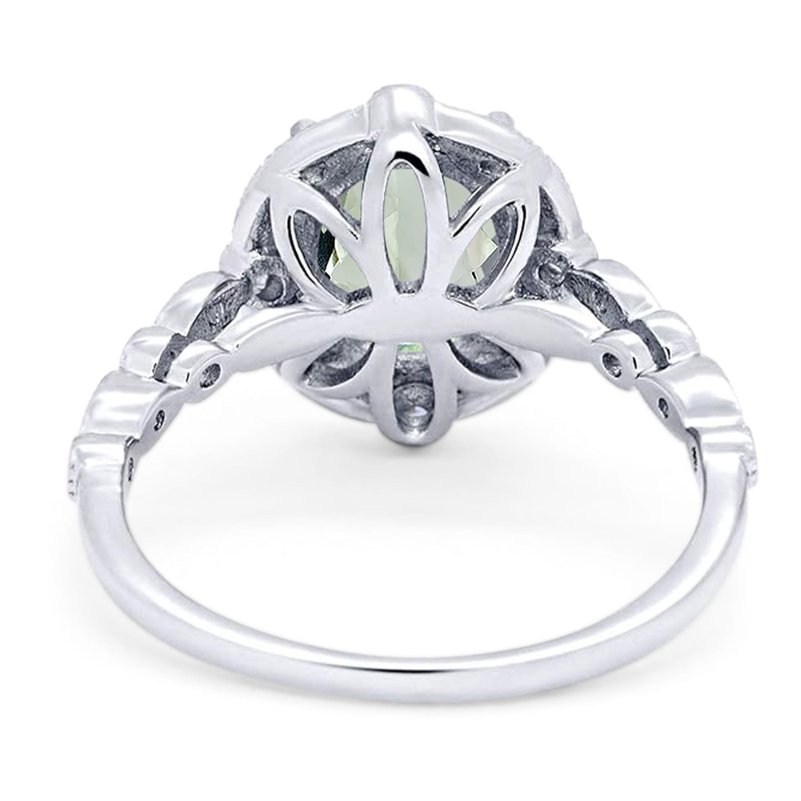 Art Deco Oval Natural Green Amethyst Prasiolite Wedding Ring 925 Sterling Silver