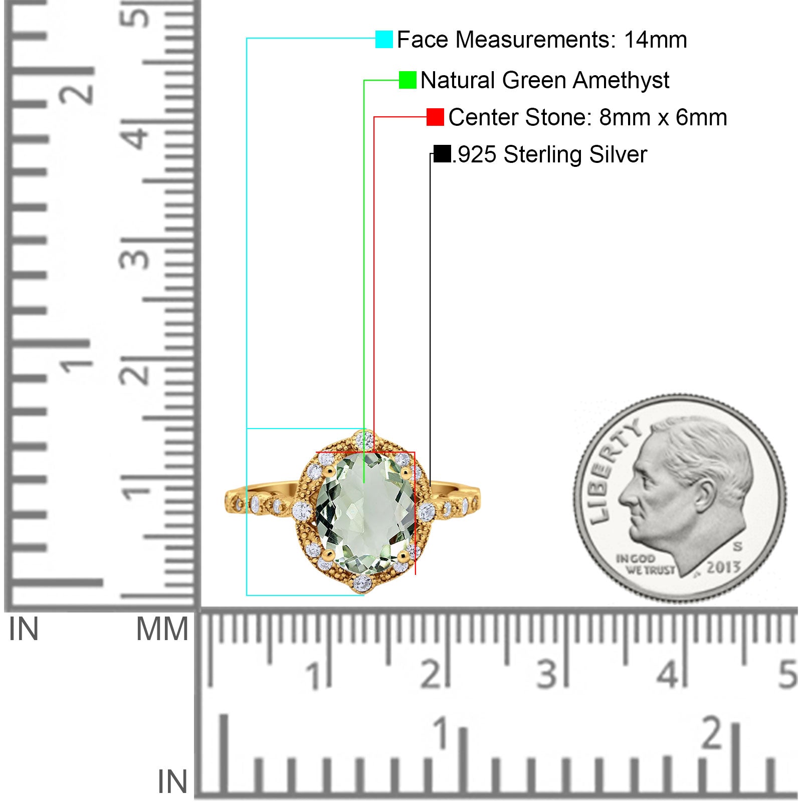 Center Stone Measurements: 8mmx6mm.