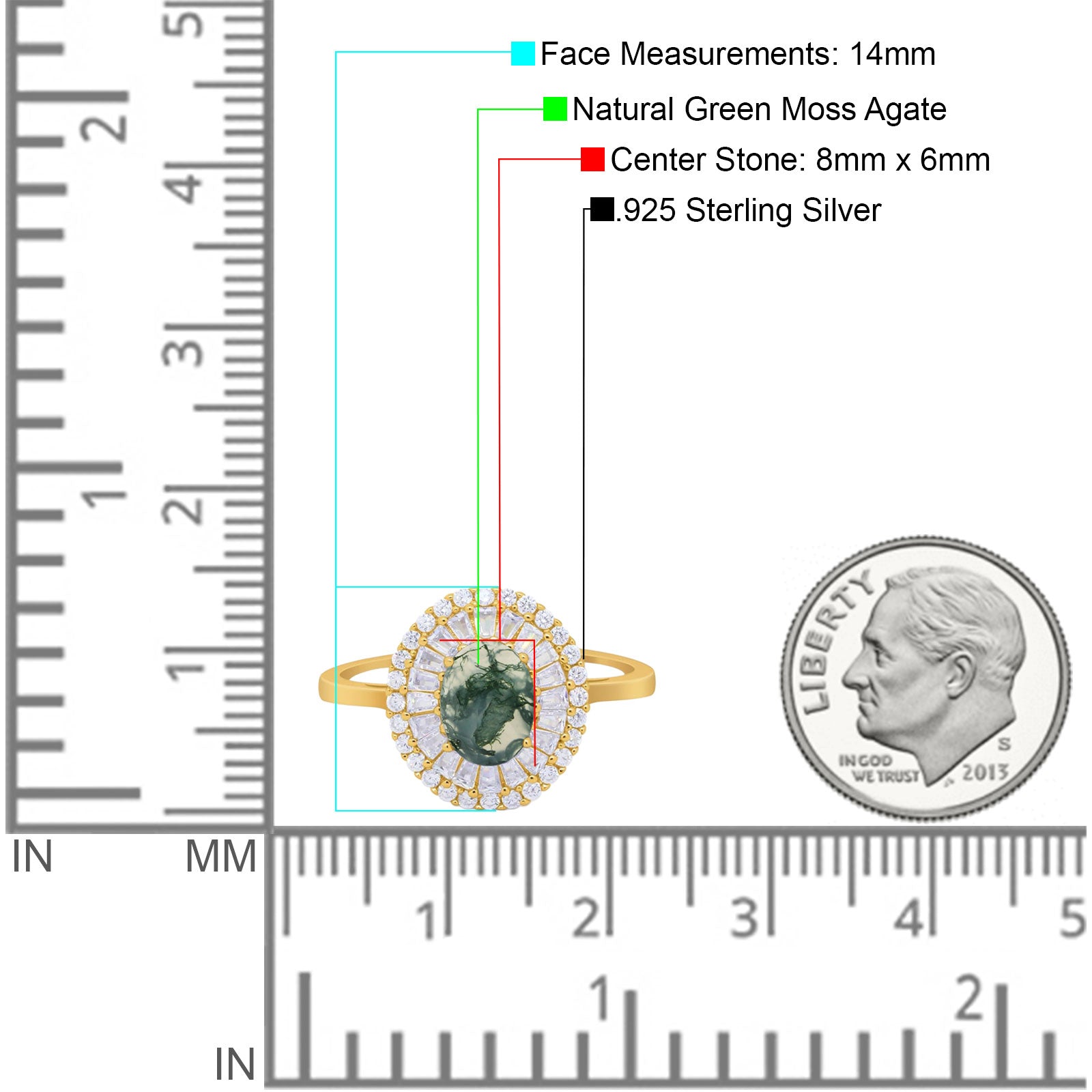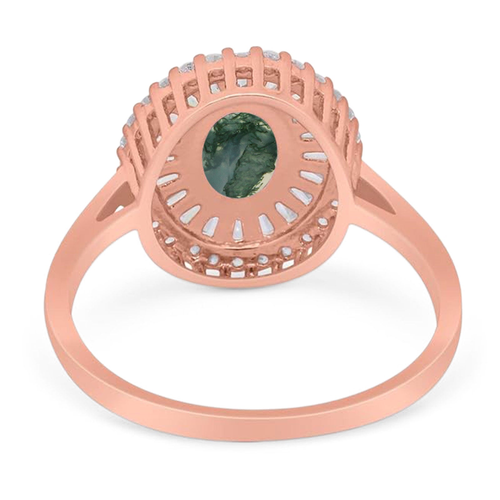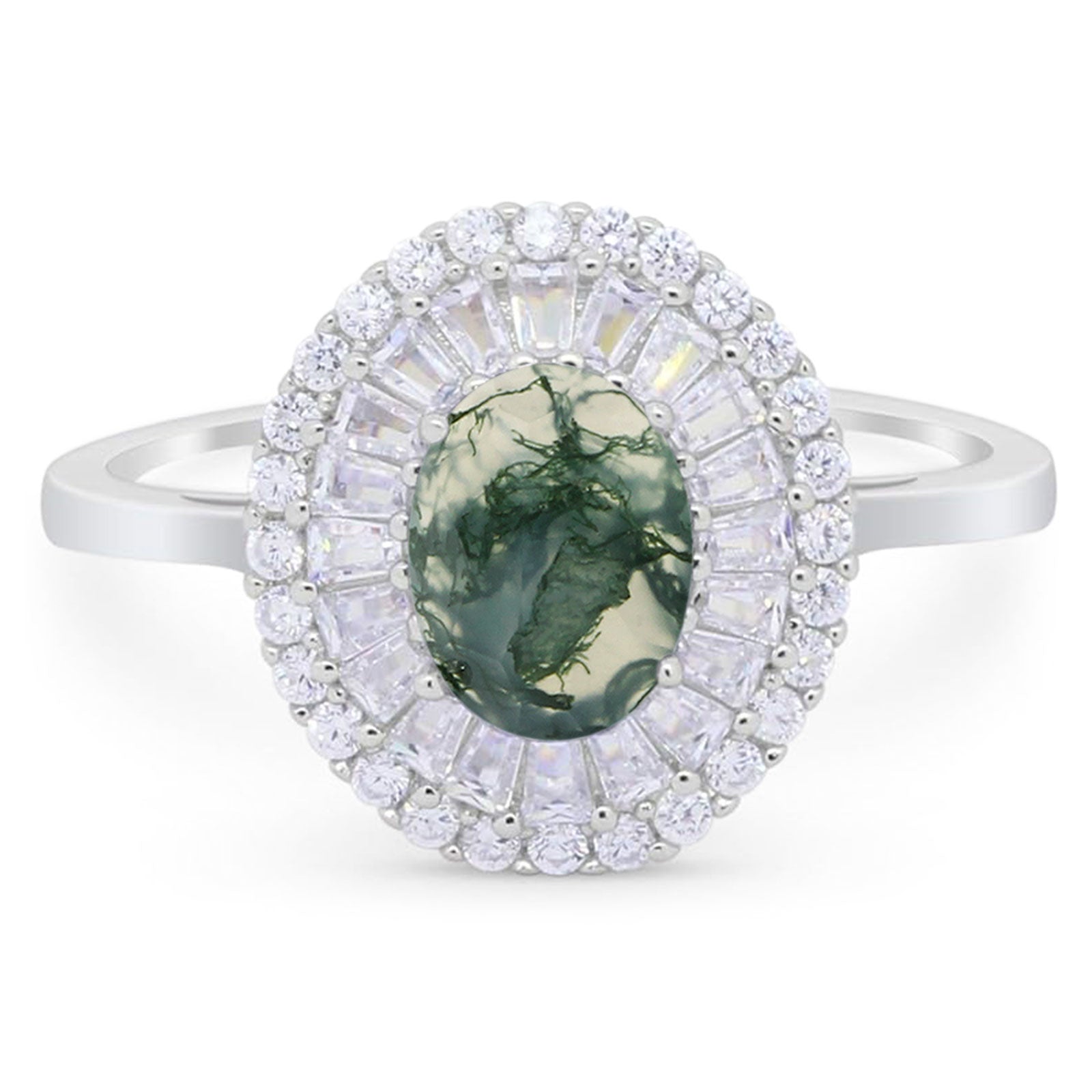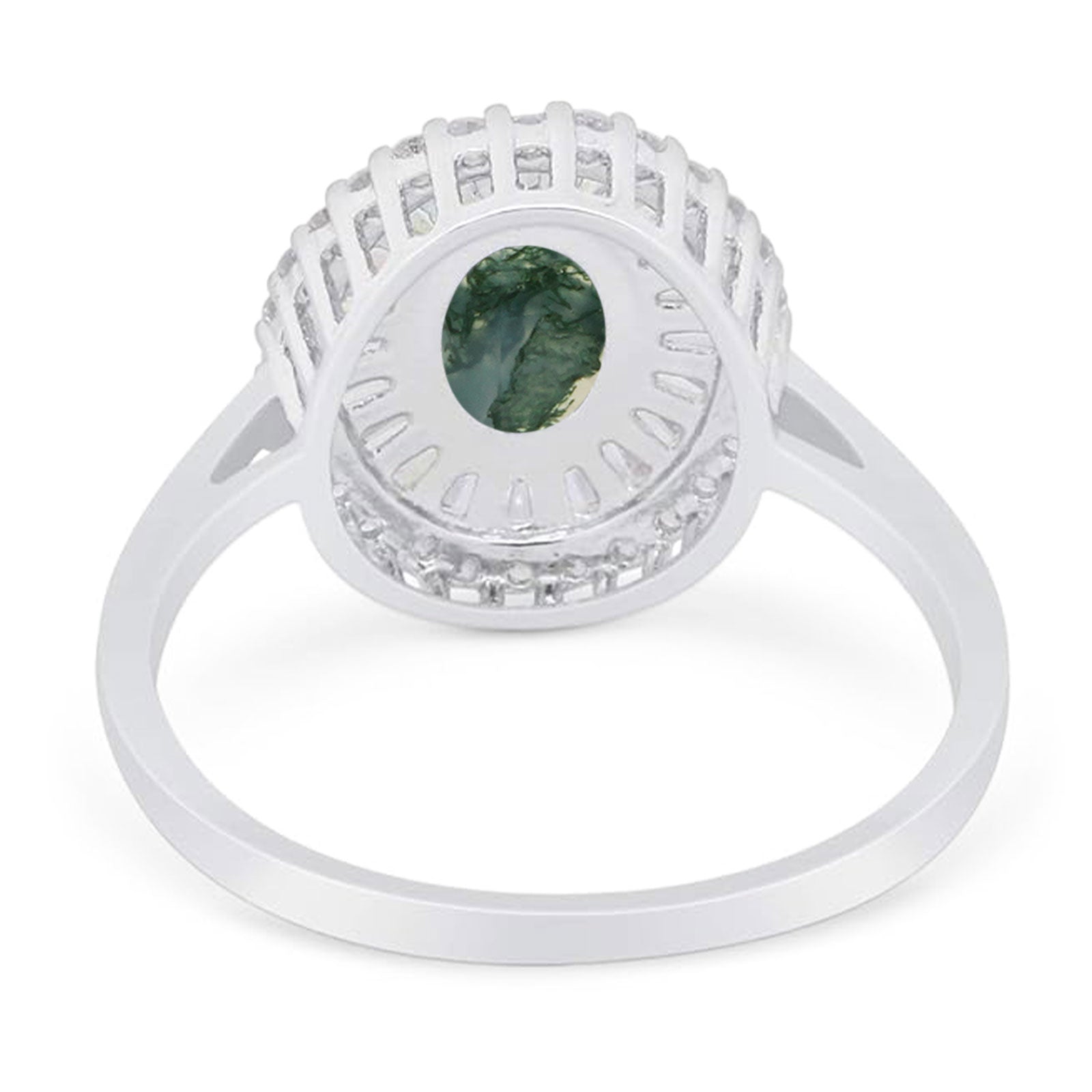 Art Deco Oval Natural Green Moss Agate Cocktail Ring 925 Sterling Silver
