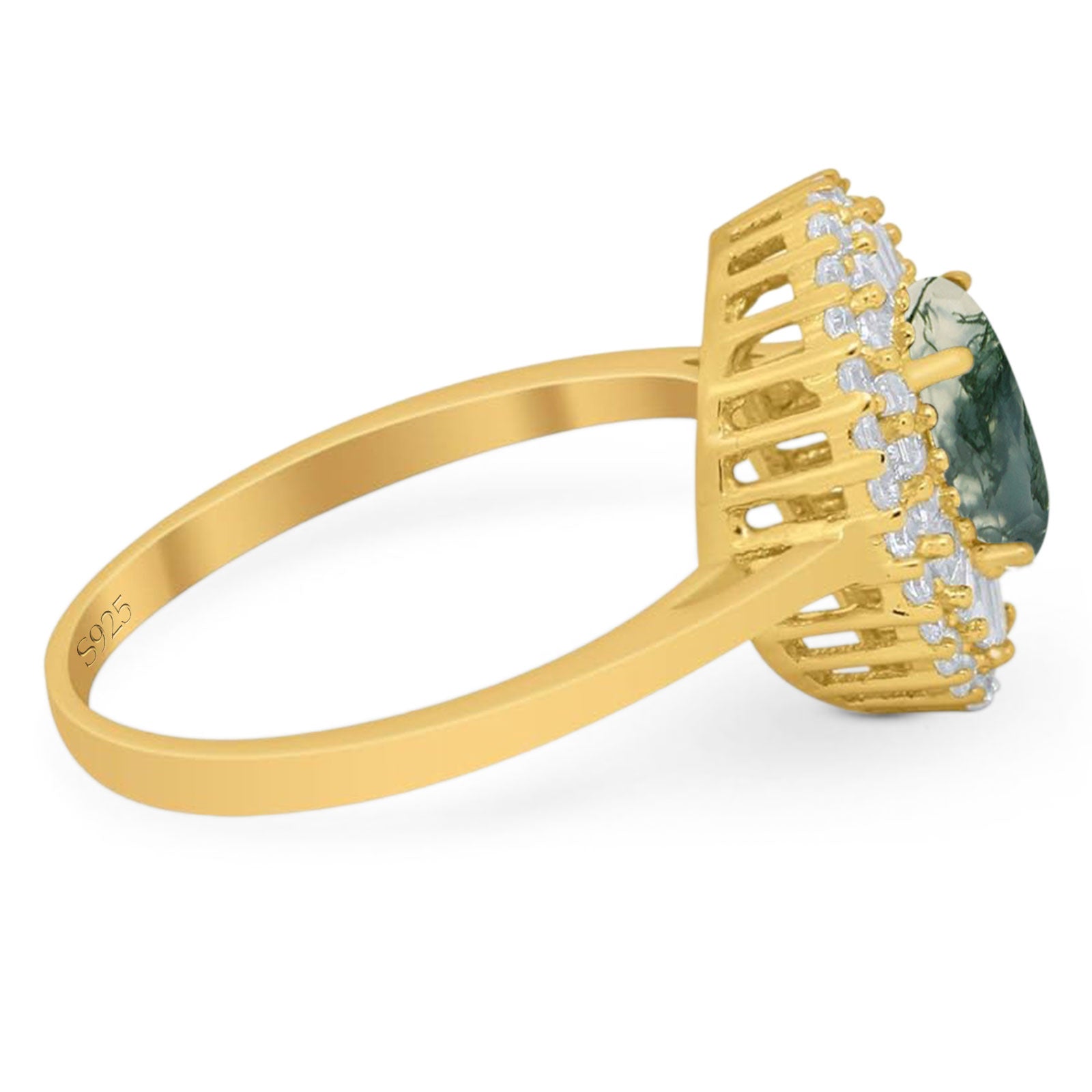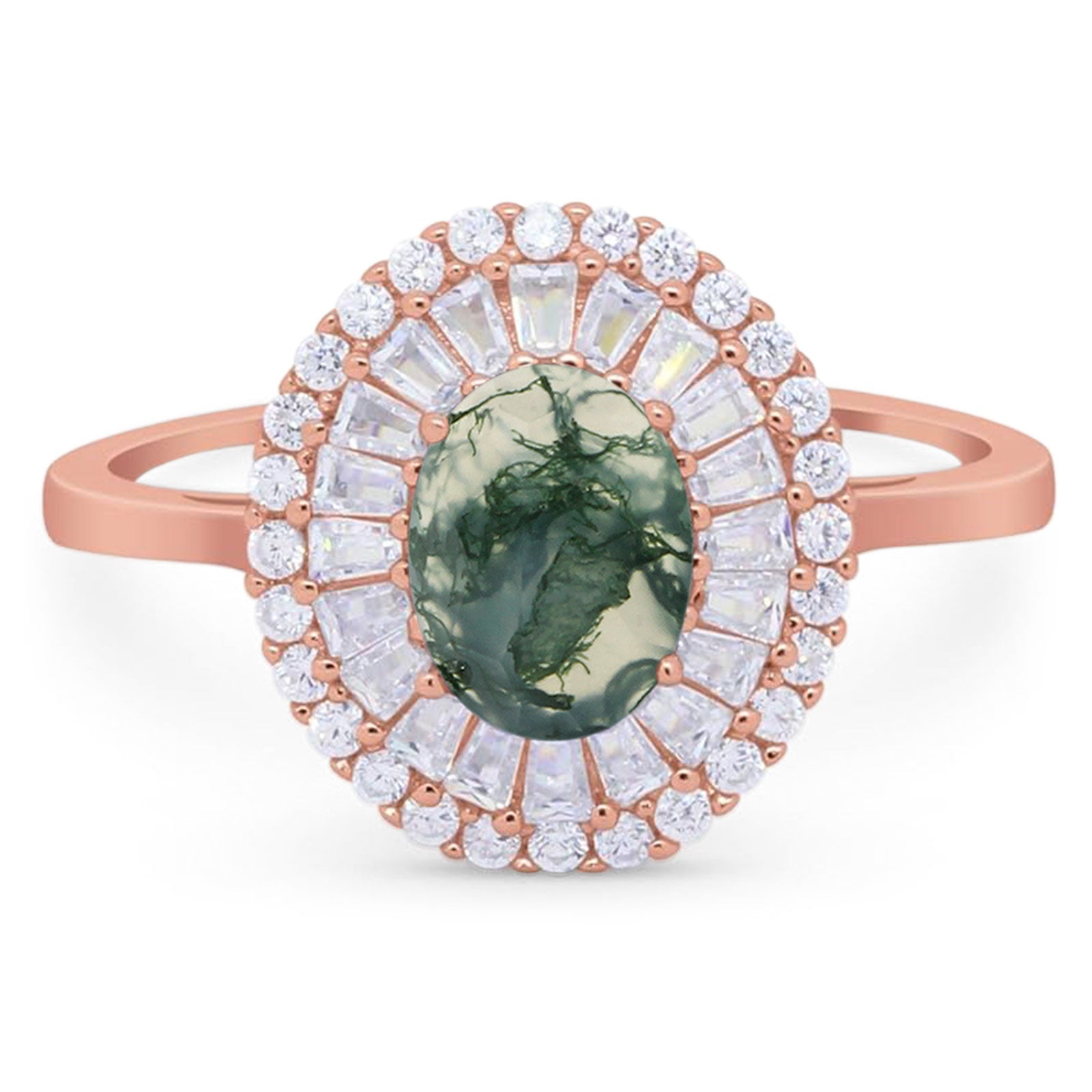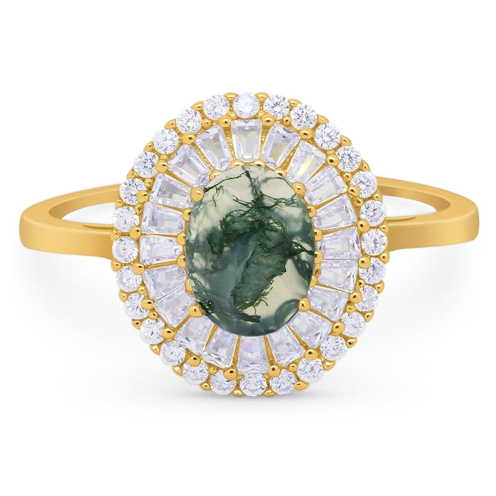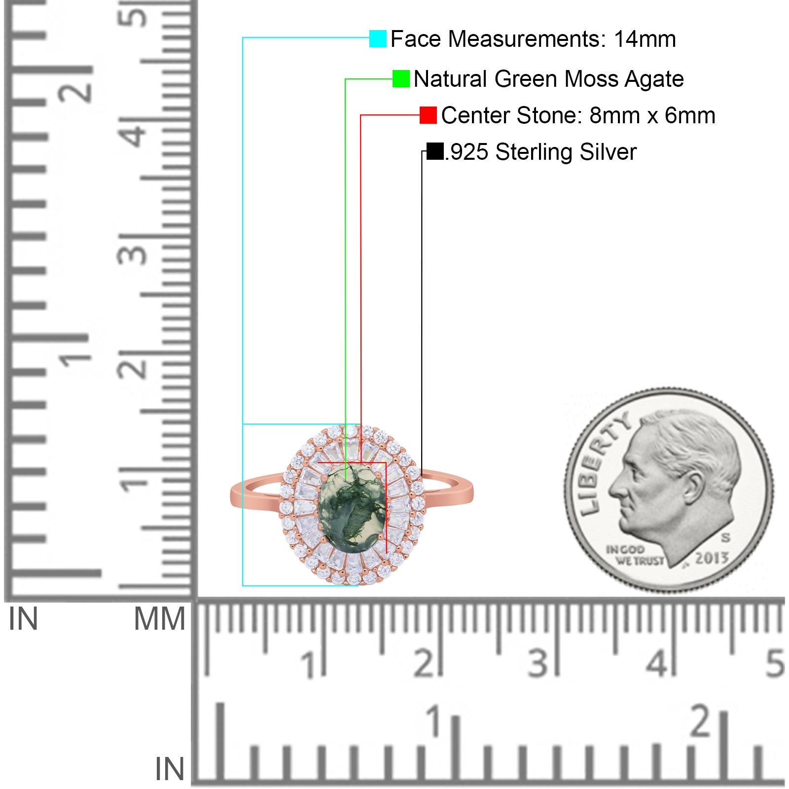 Art Deco Oval Natural Green Moss Agate Cocktail Ring 925 Sterling Silver
