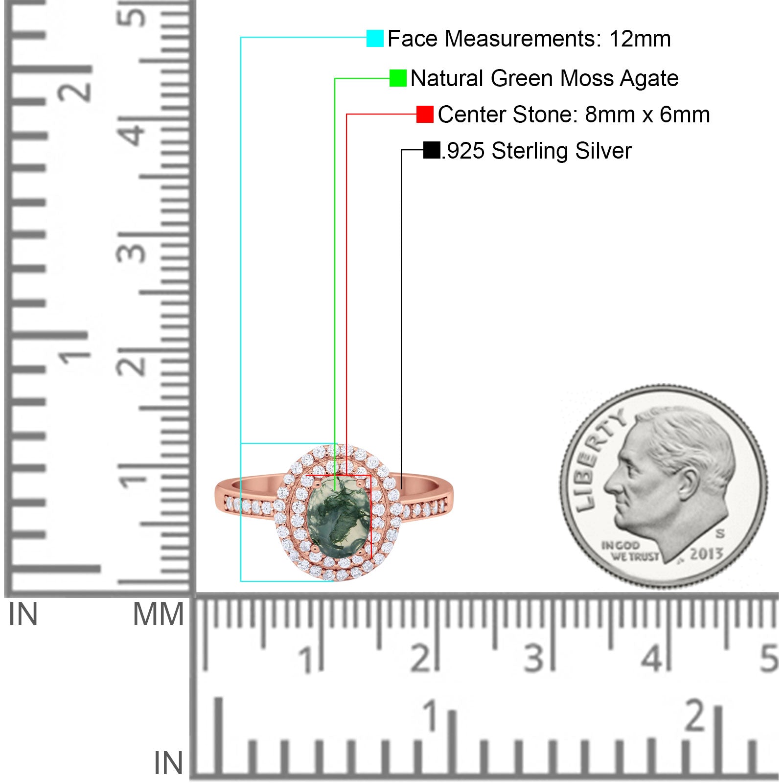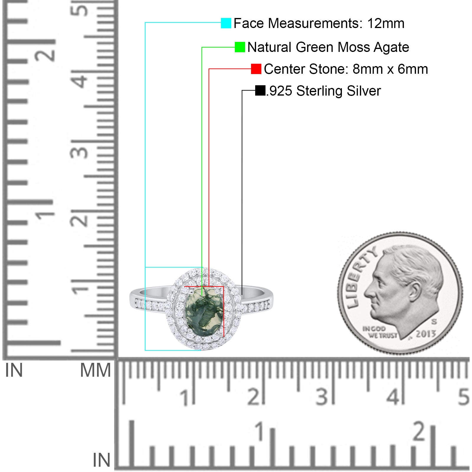 Center Stone Measurements:8mmx6mm.