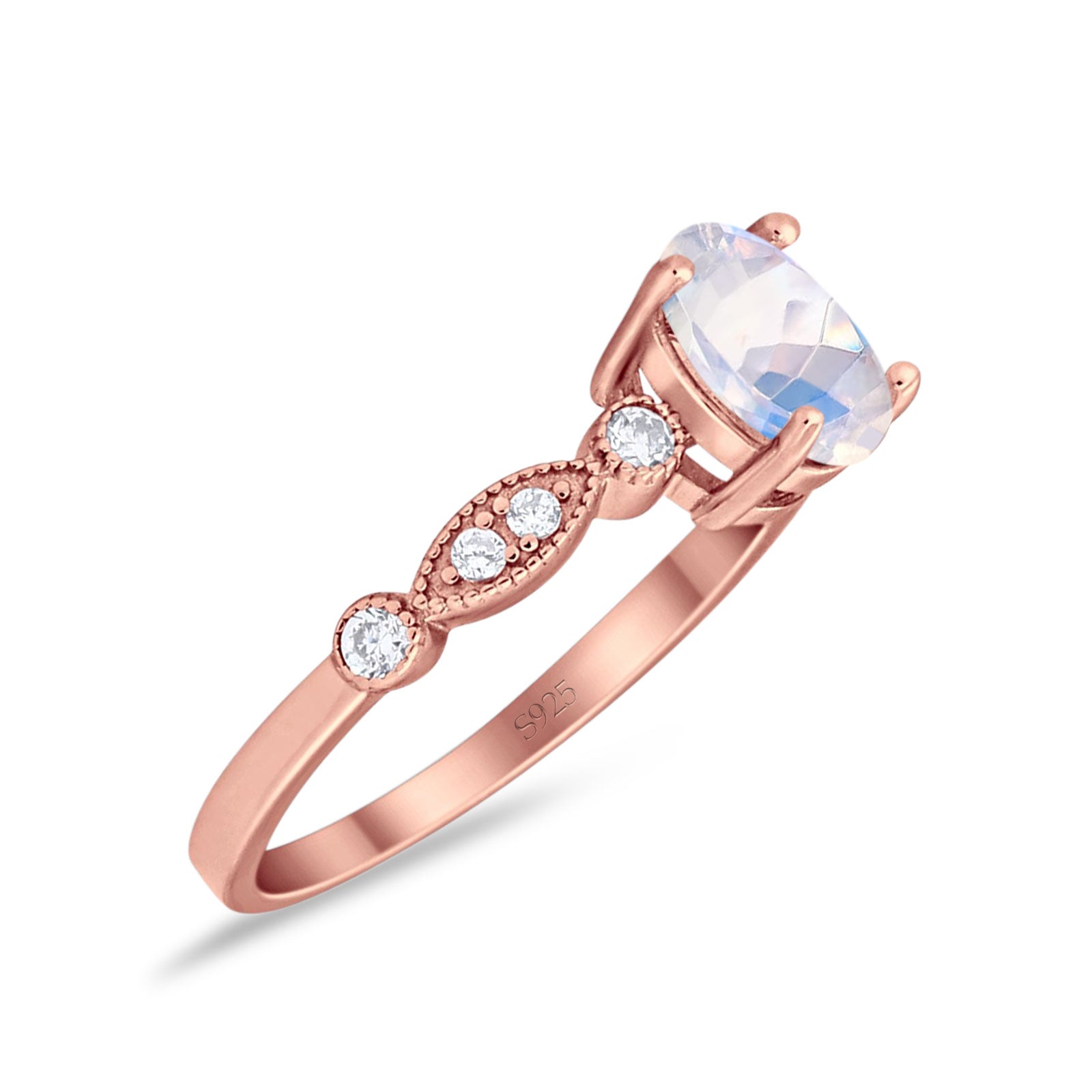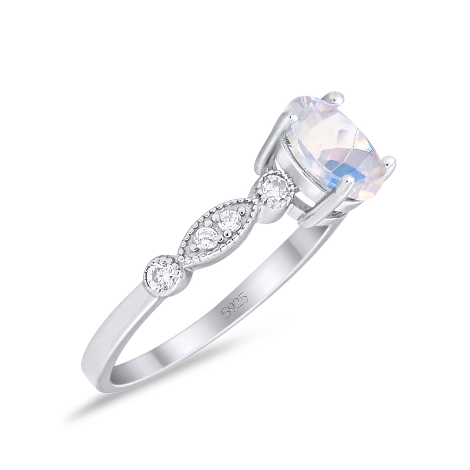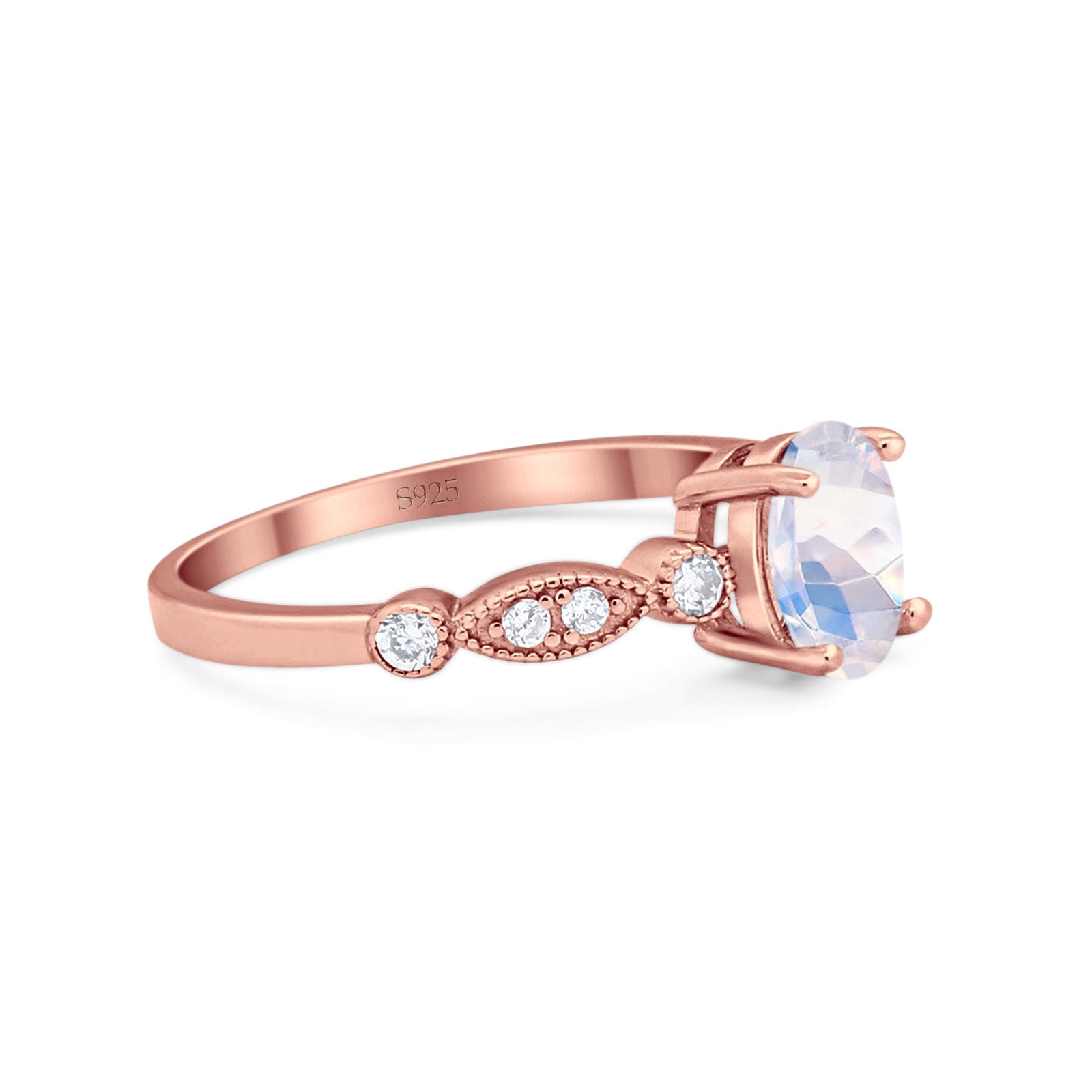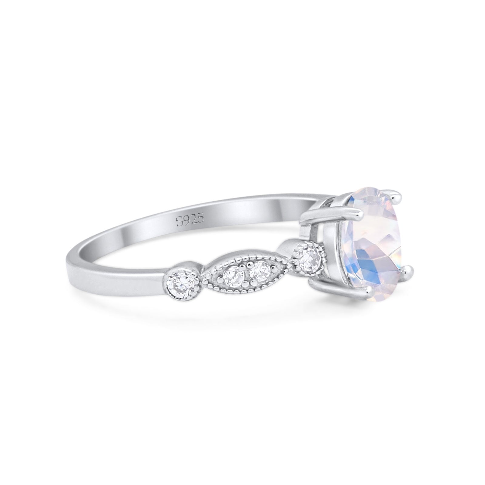 Art Deco Oval Natural Moonstone Marquise Style Ring 925 Sterling Silver