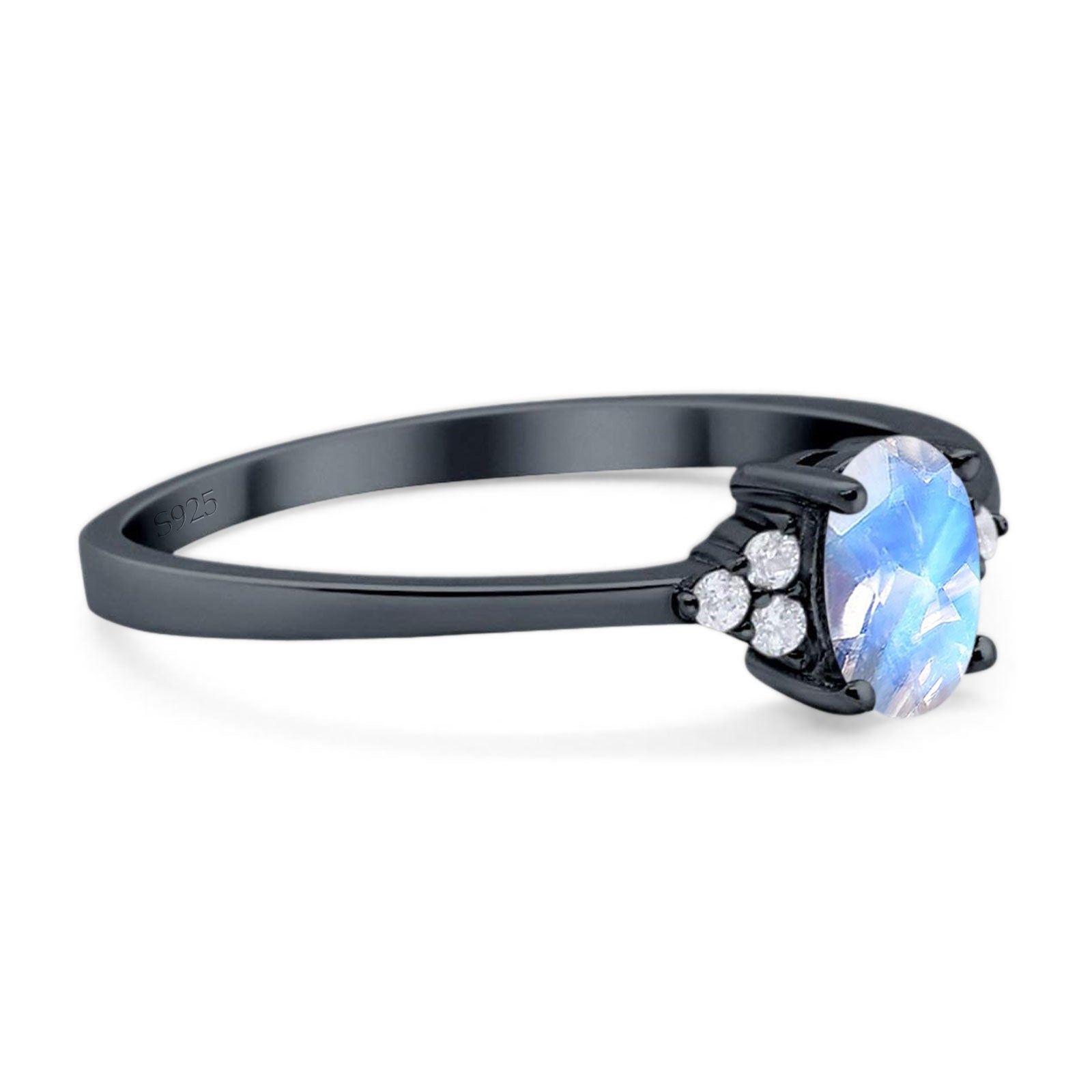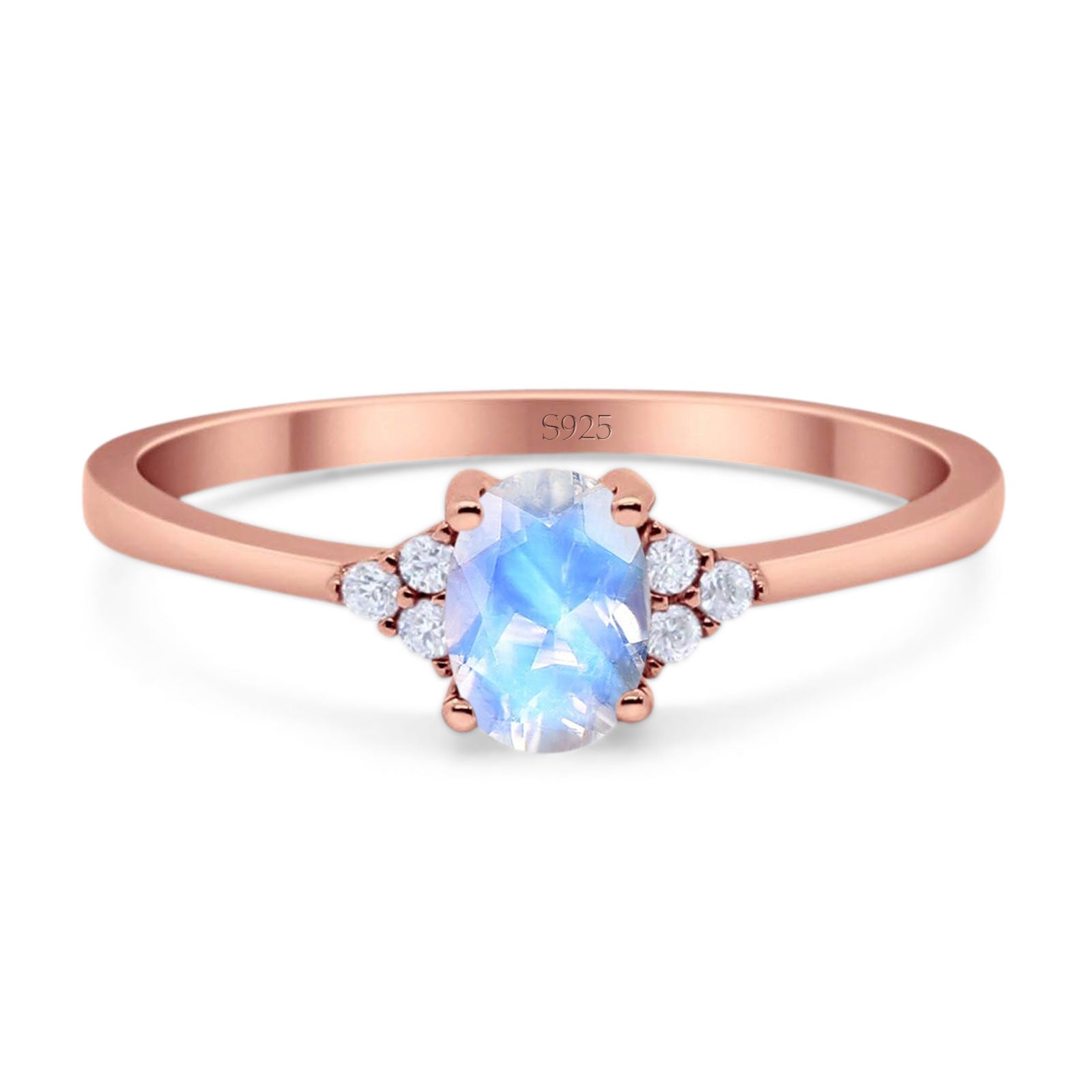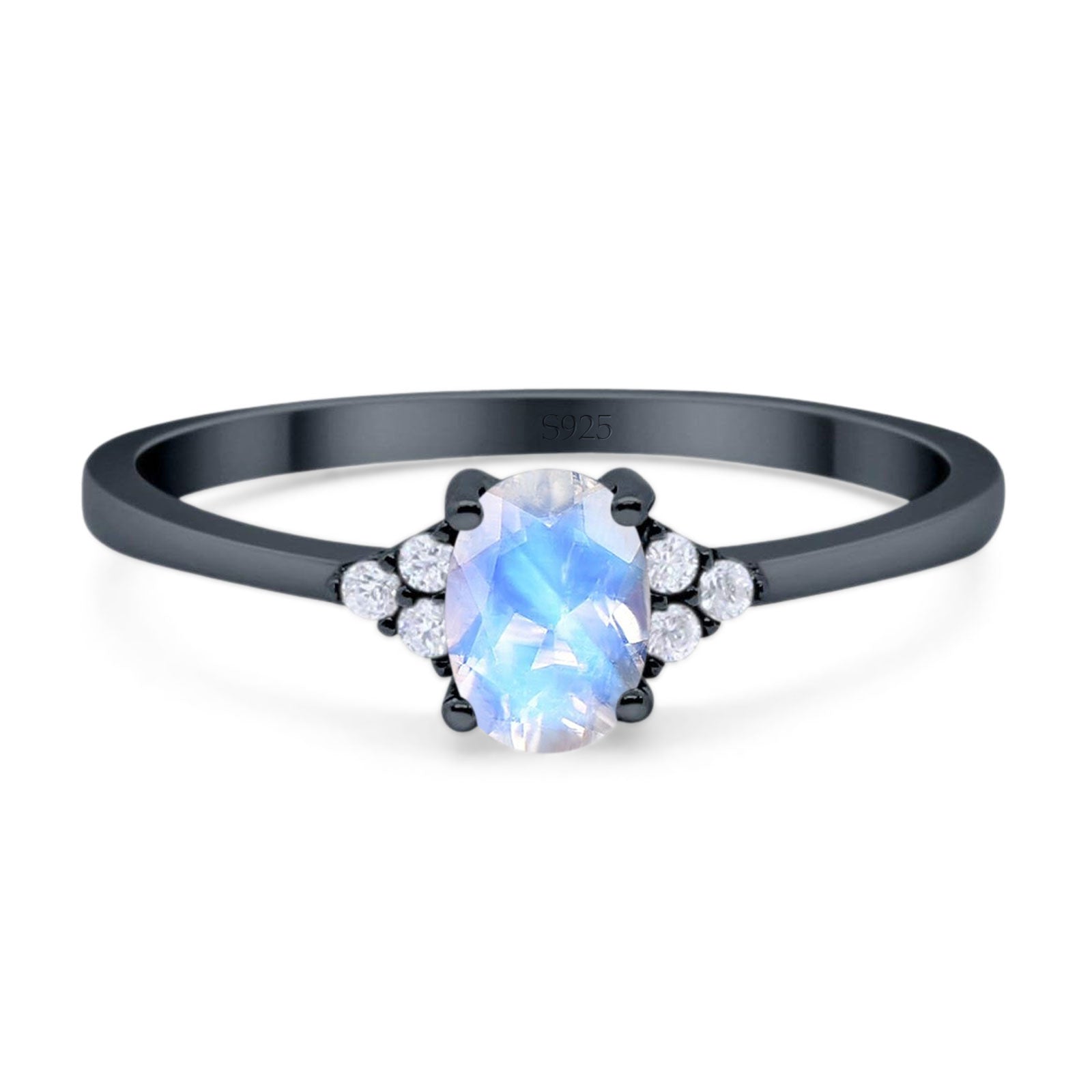 Art Deco Oval Natural Moonstone Wedding Ring 925 Sterling Silver