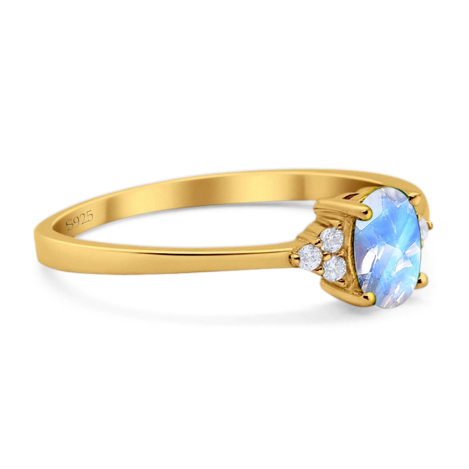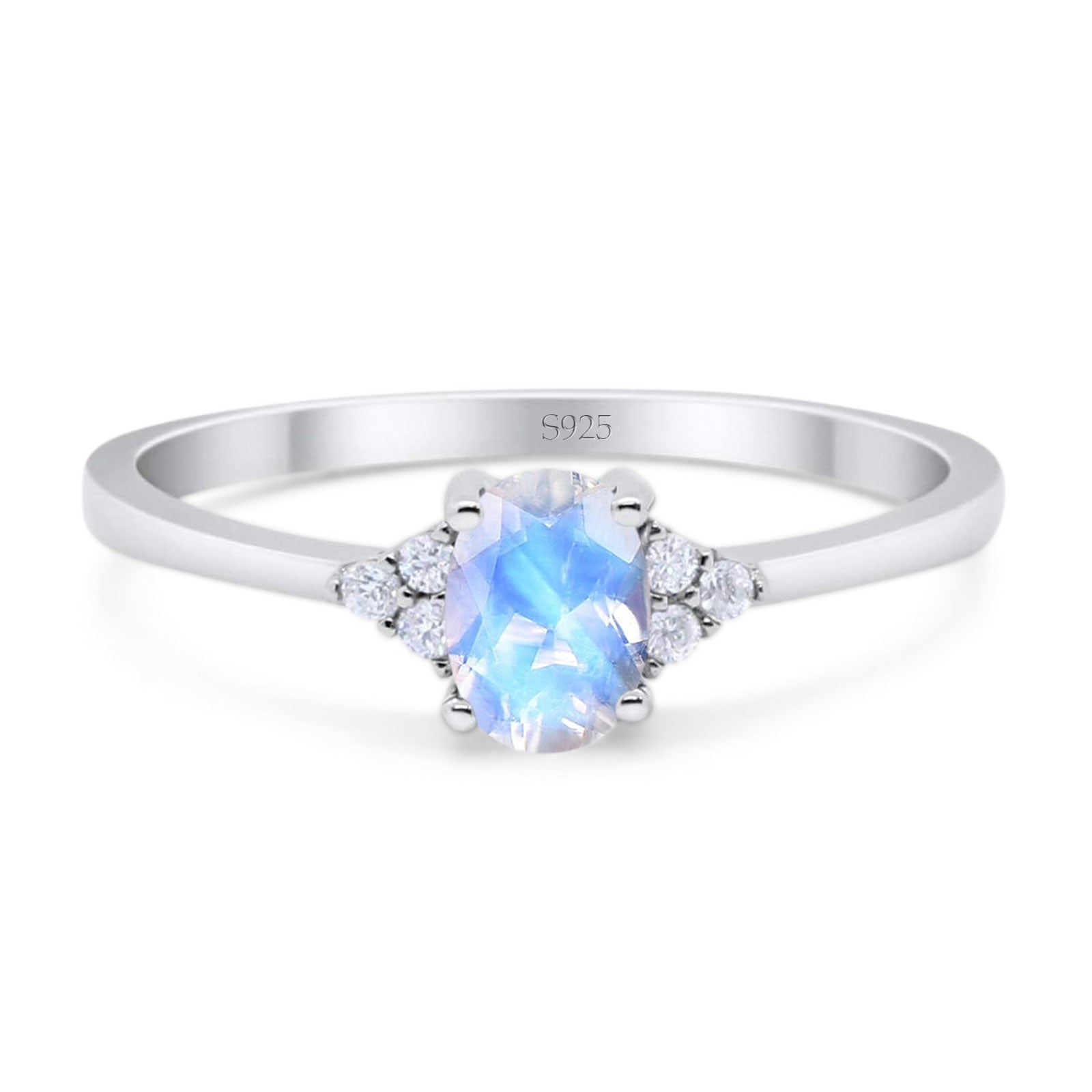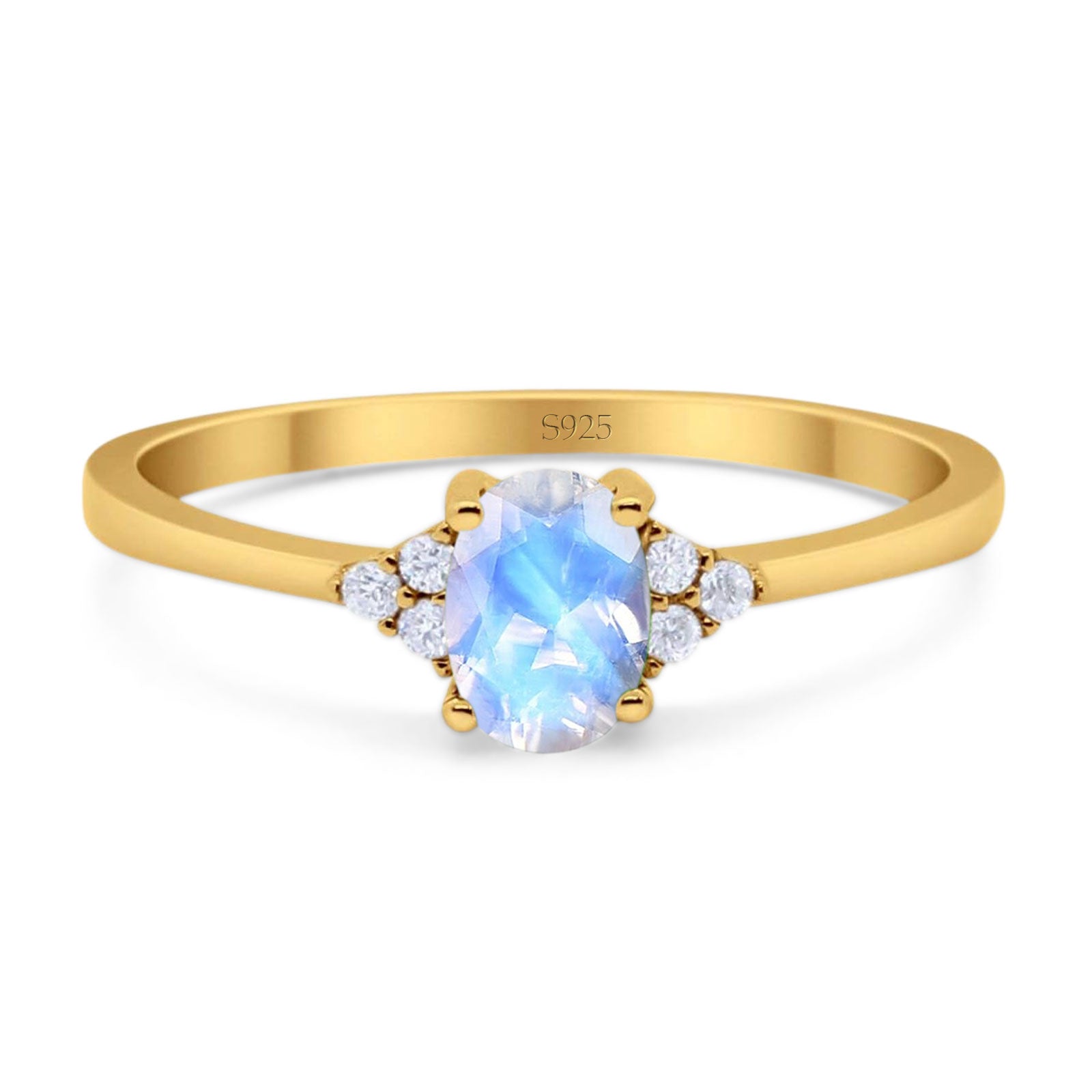 Art Deco Oval Natural Moonstone Wedding Ring 925 Sterling Silver