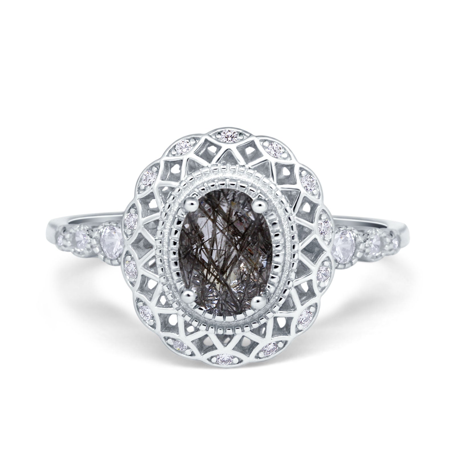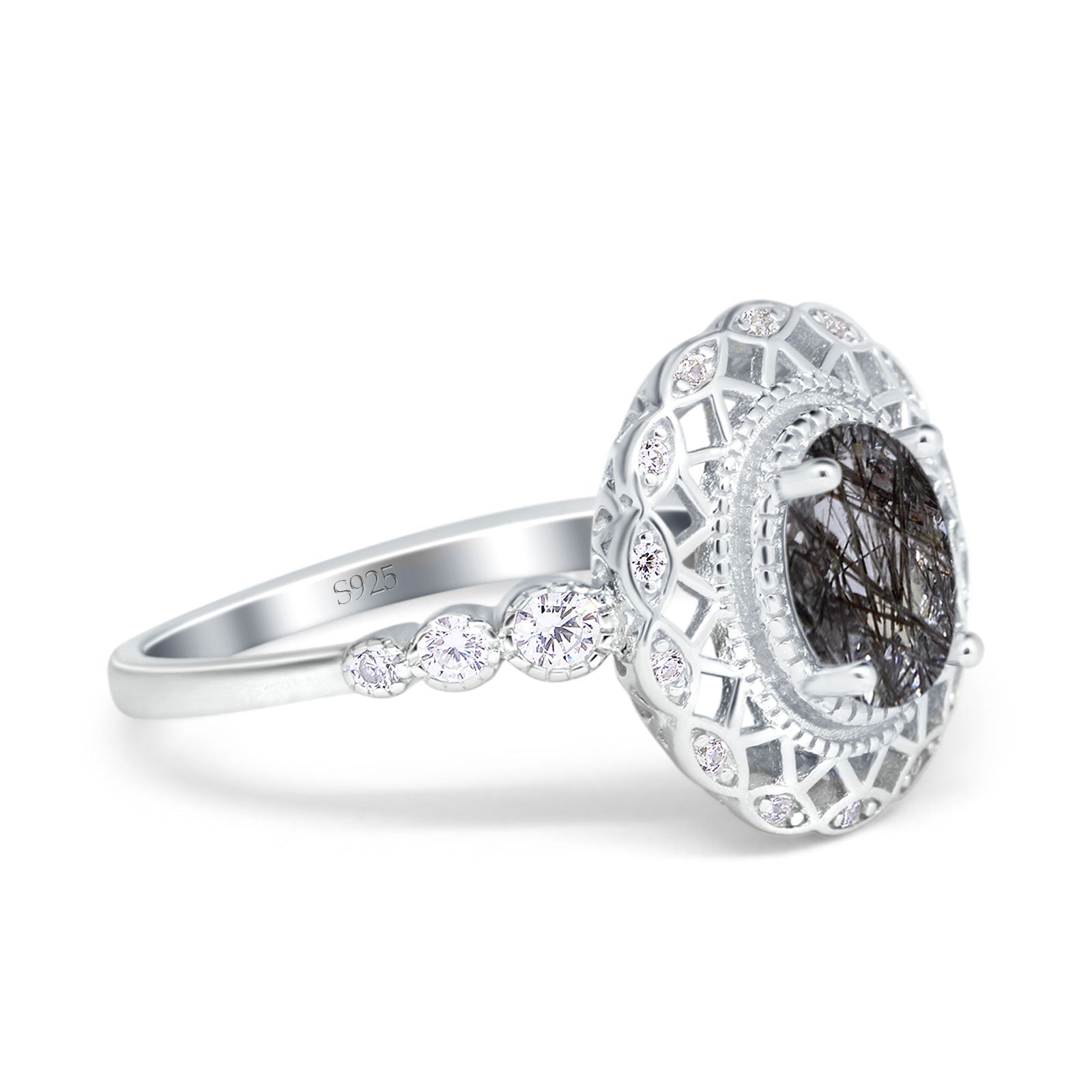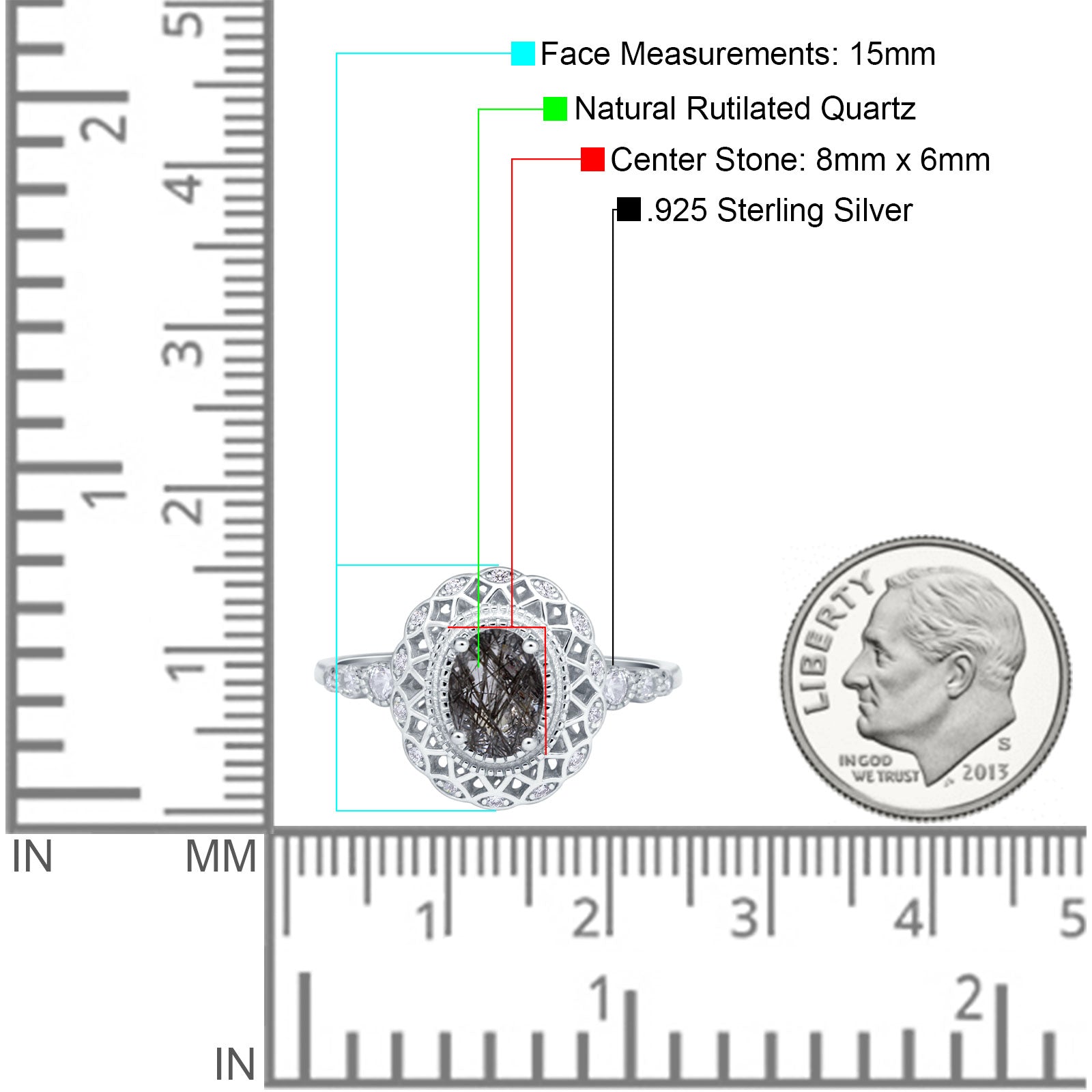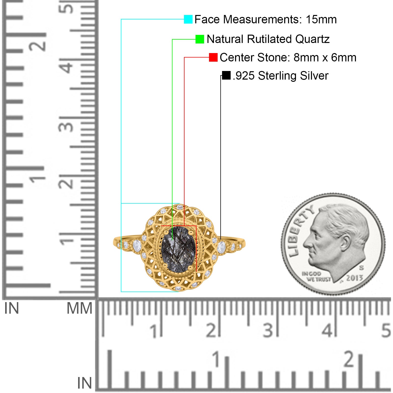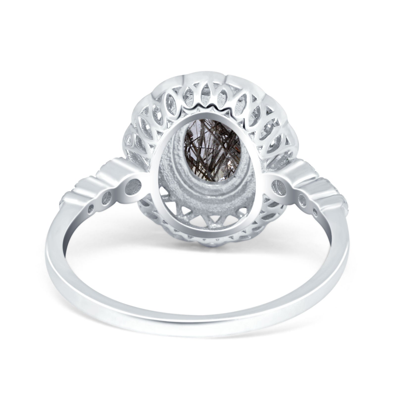 Art Deco Oval Natural Rutilated Quartz Cocktail Ring 925 Sterling Silver