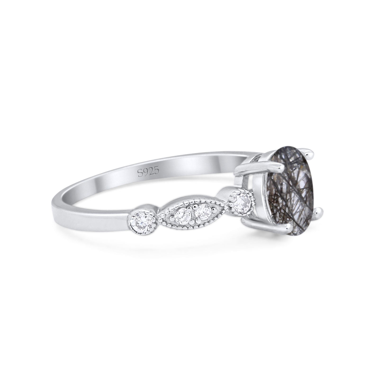 Art Deco Oval Natural Rutilated Quartz Marquise Style Ring 925 Sterling Silver