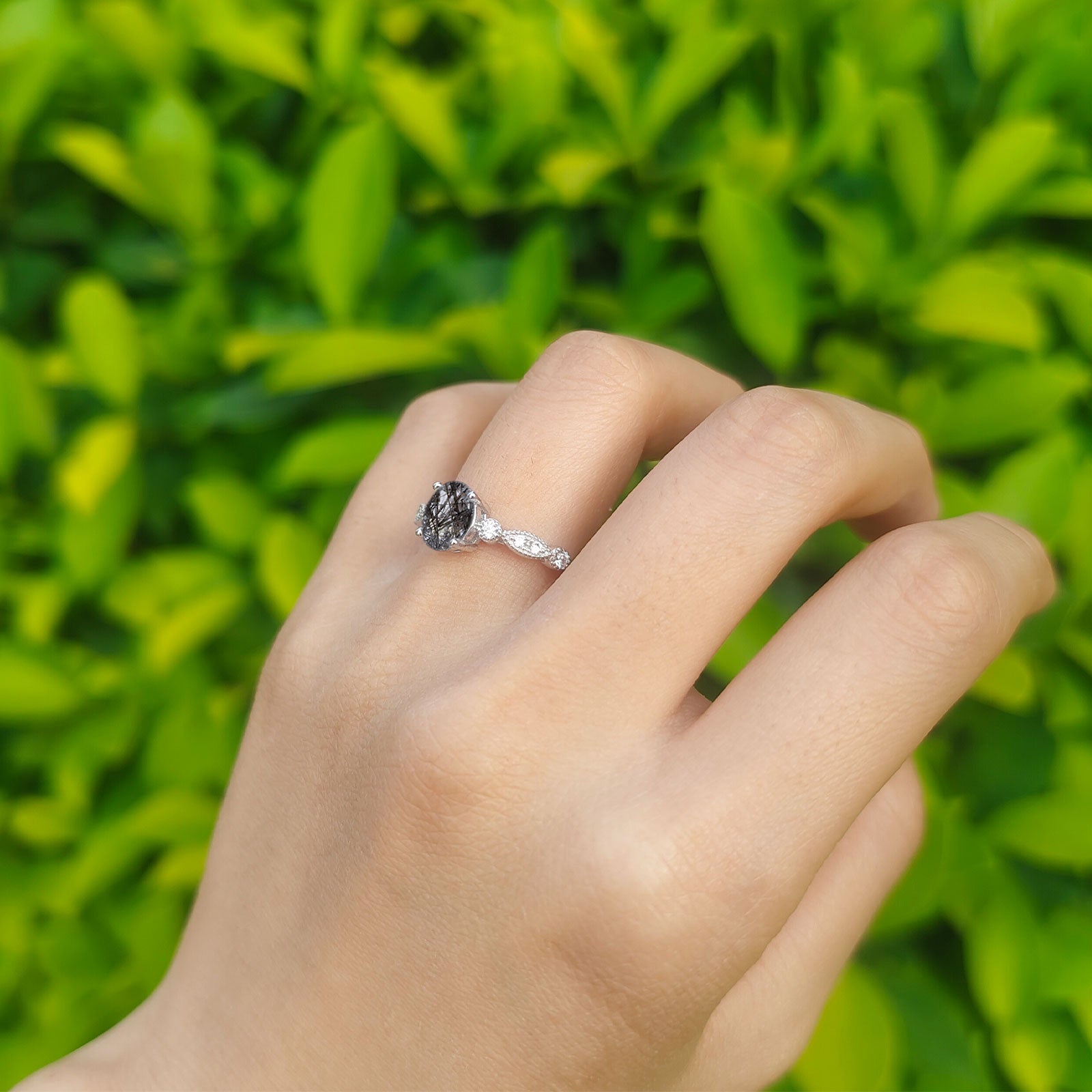 Natural Rutilated Quartz Engagement Ring