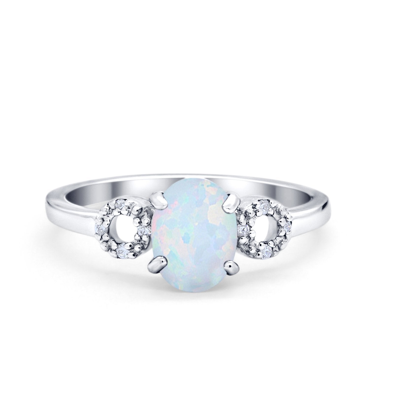 Art Deco Oval Solitaire Wedding Ring Simulated Cubic Zirconia 925 Sterling Silver