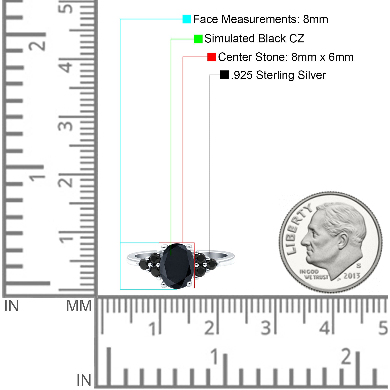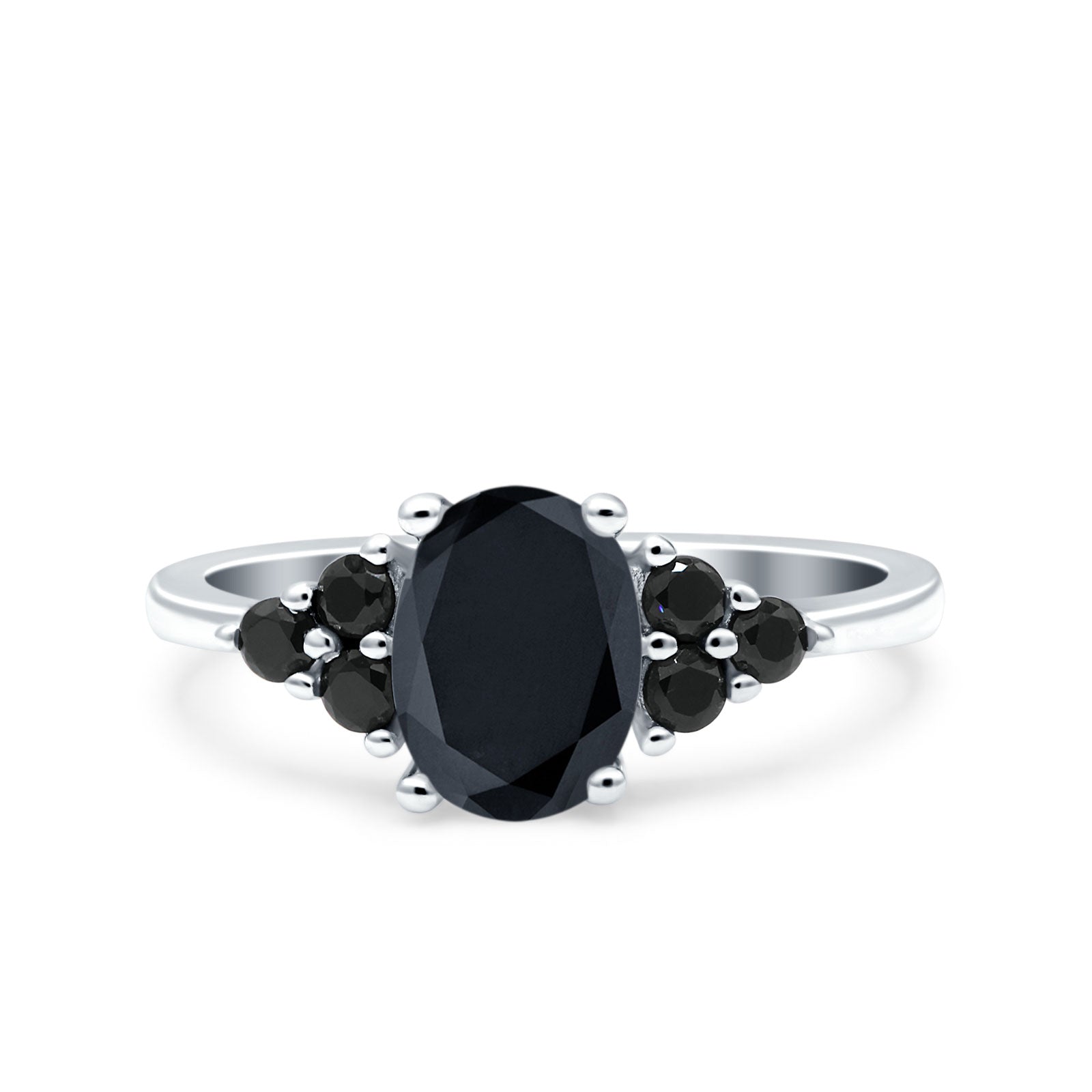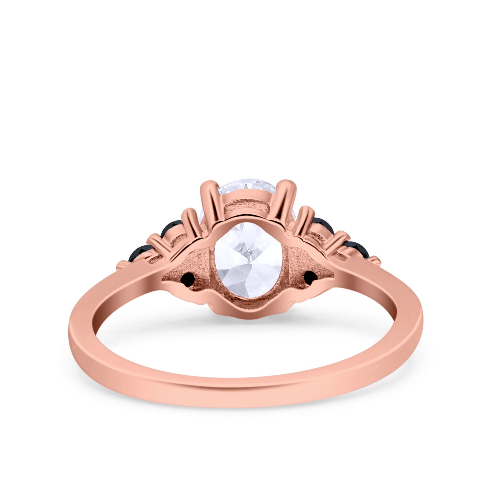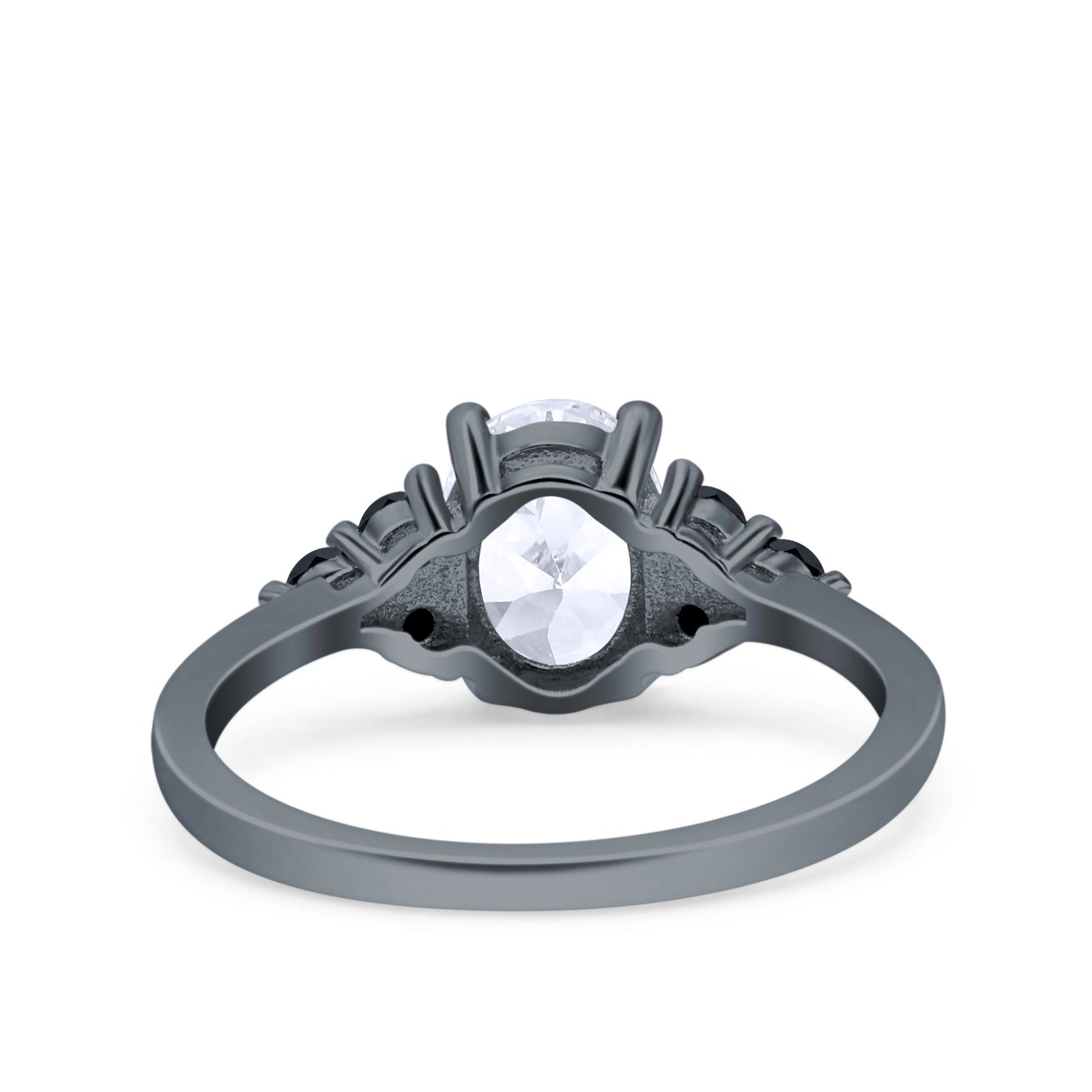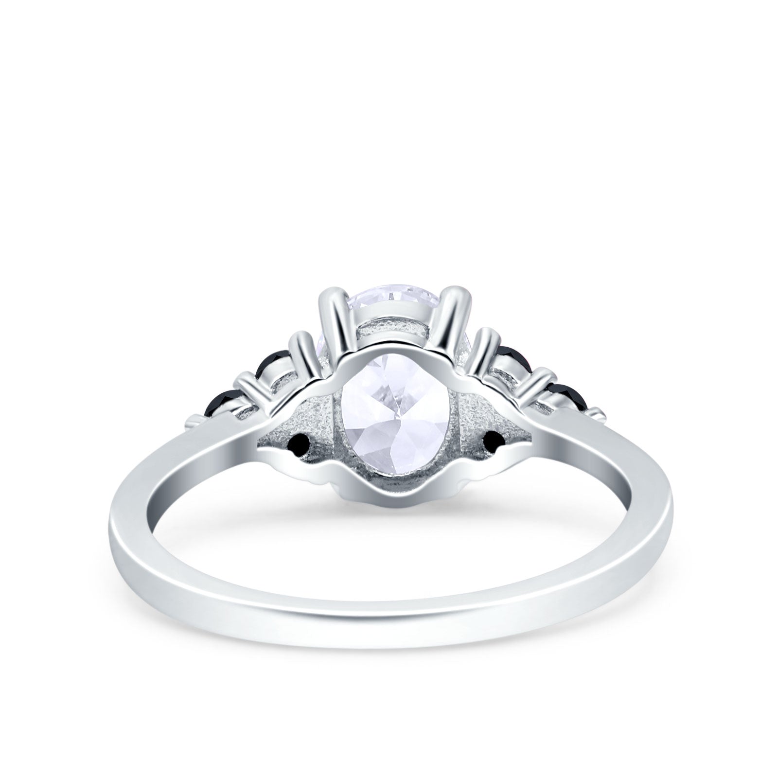 Art Deco Oval Wedding Engagement Bridal Ring Black Simulated Cubic Zirconia 925 Sterling Silver