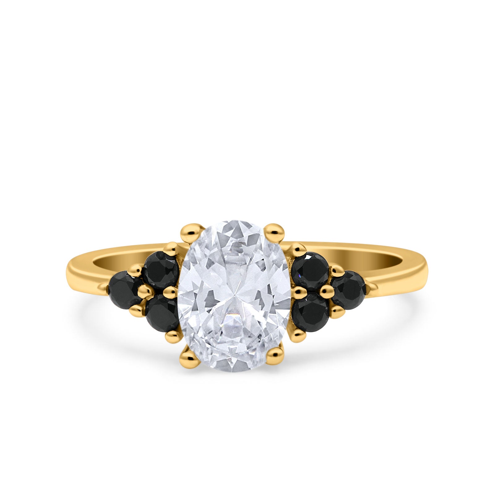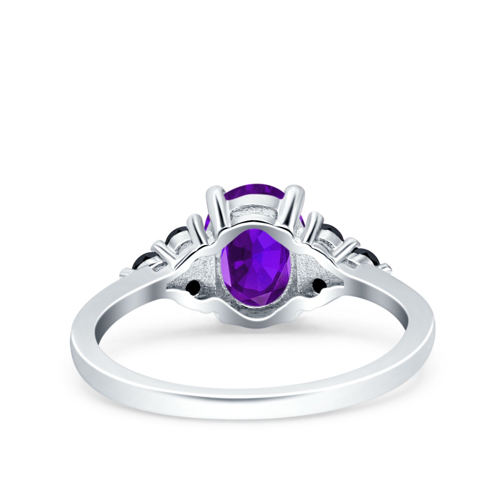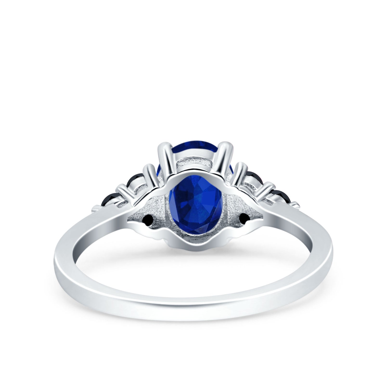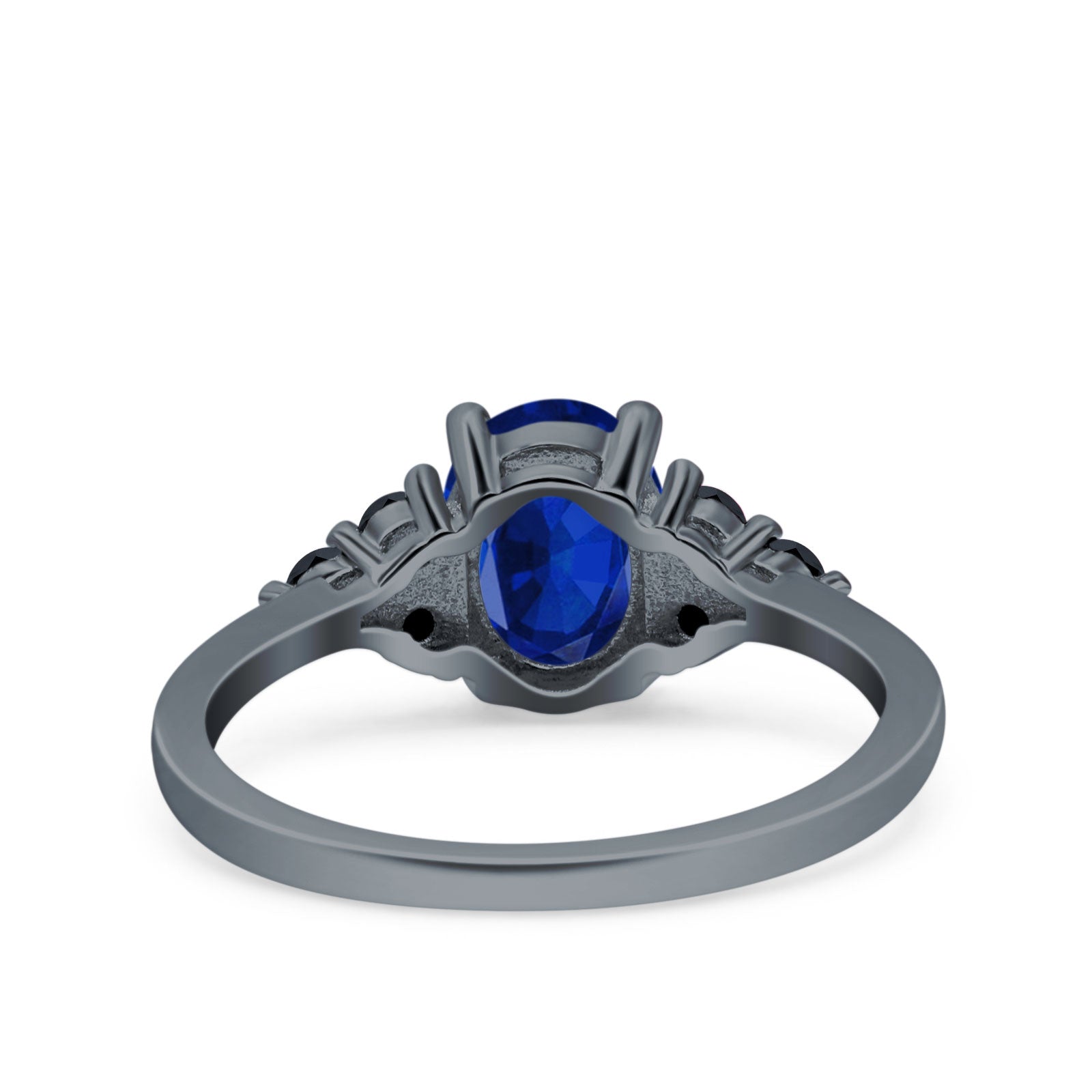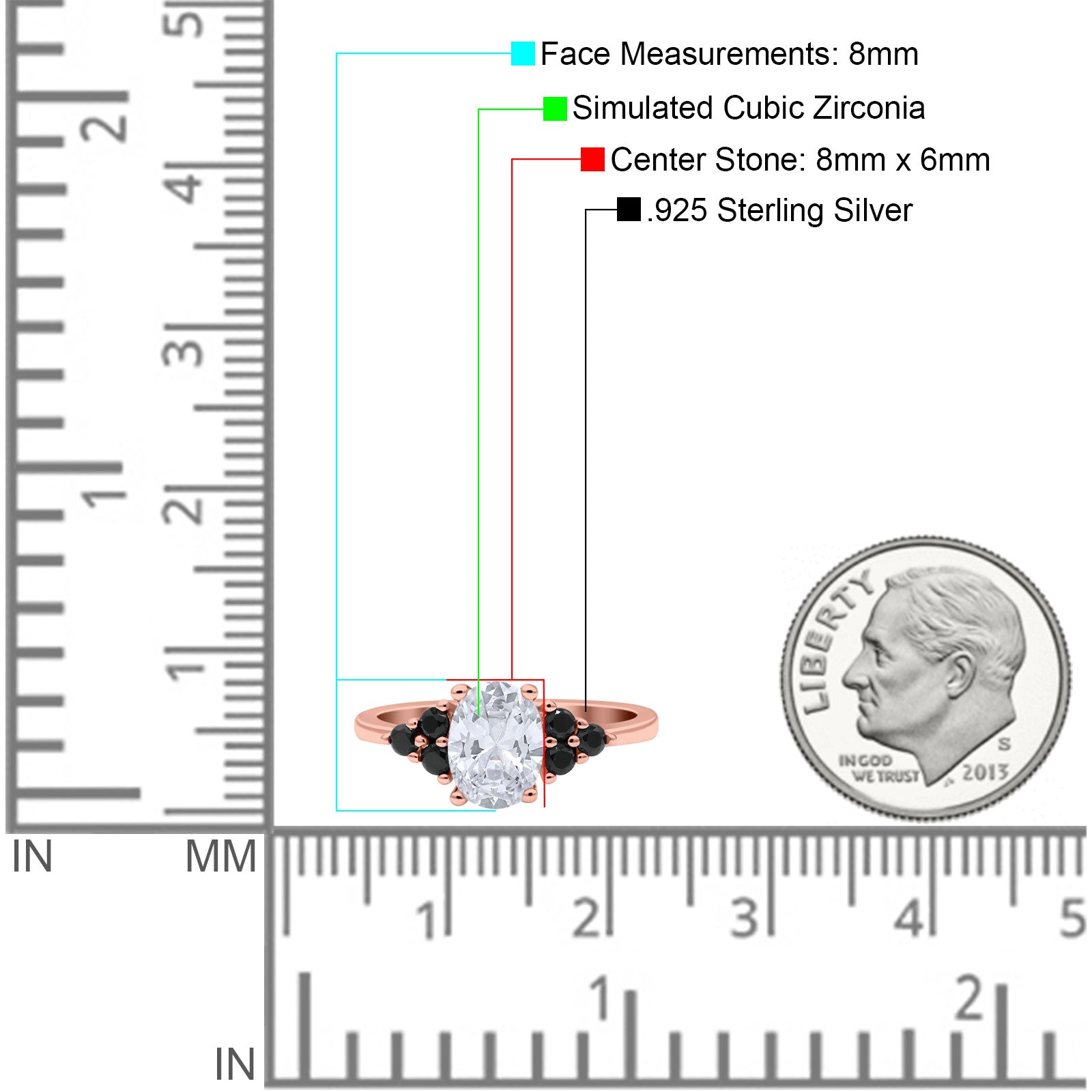 Art Deco Oval Wedding Engagement Bridal Ring Black Simulated Cubic Zirconia 925 Sterling Silver