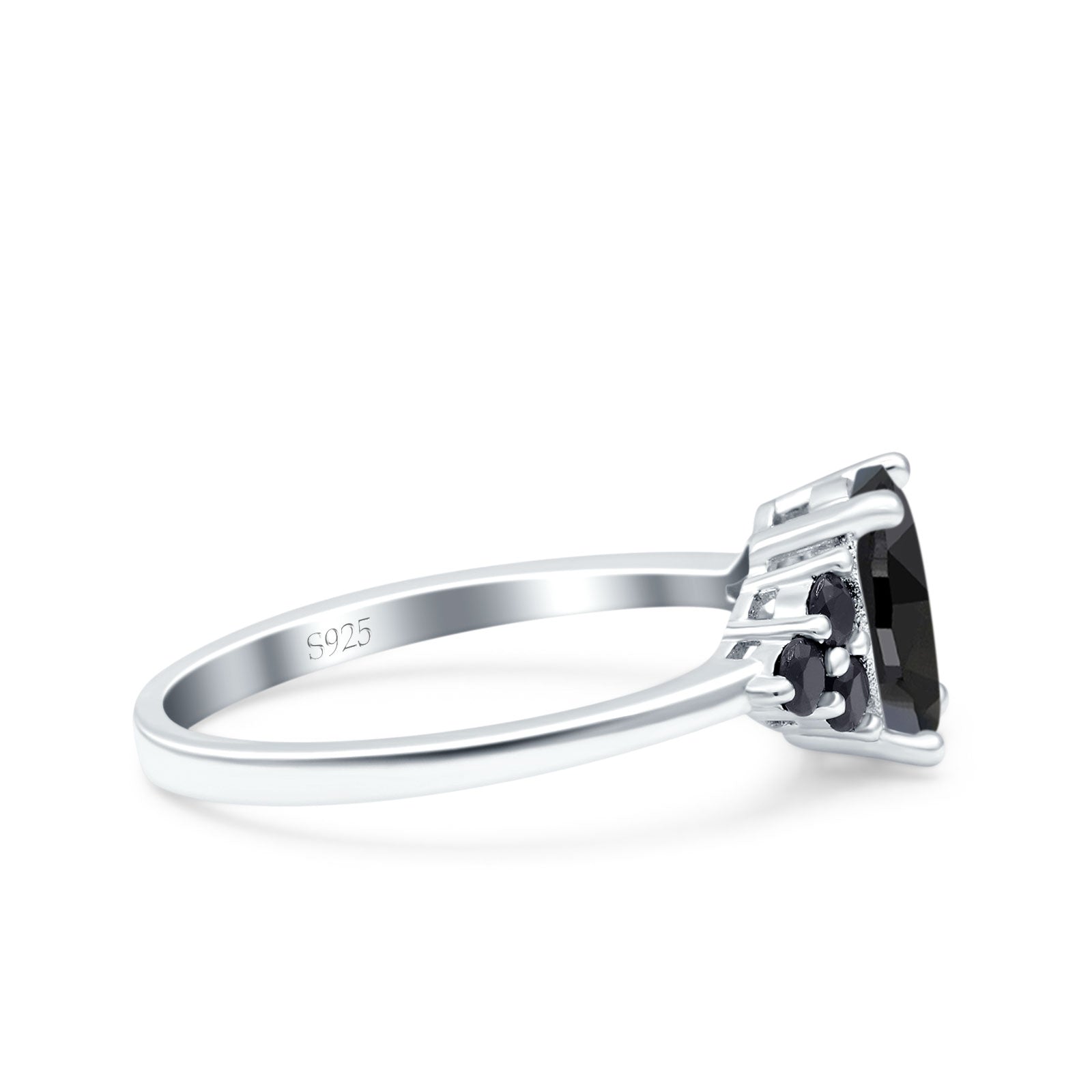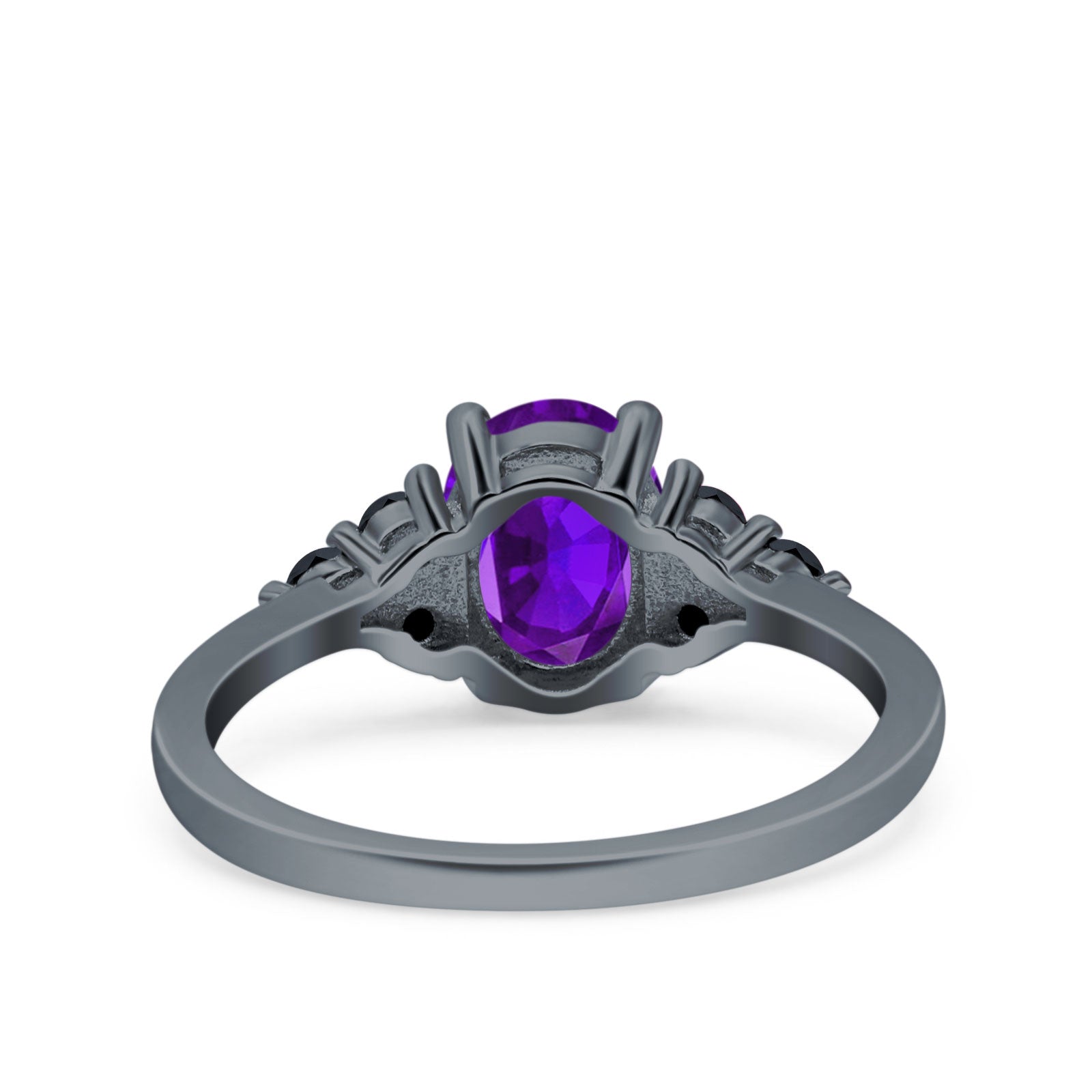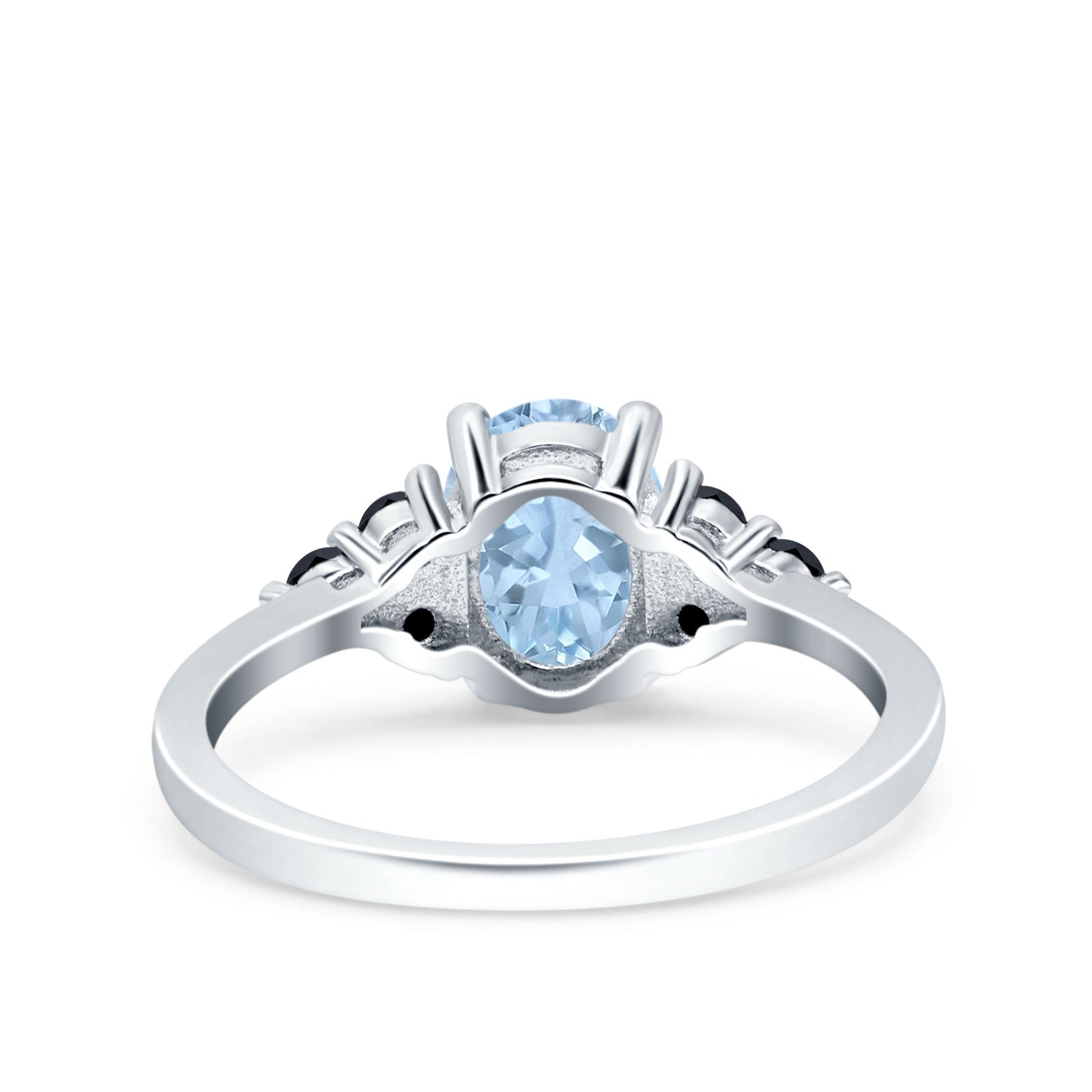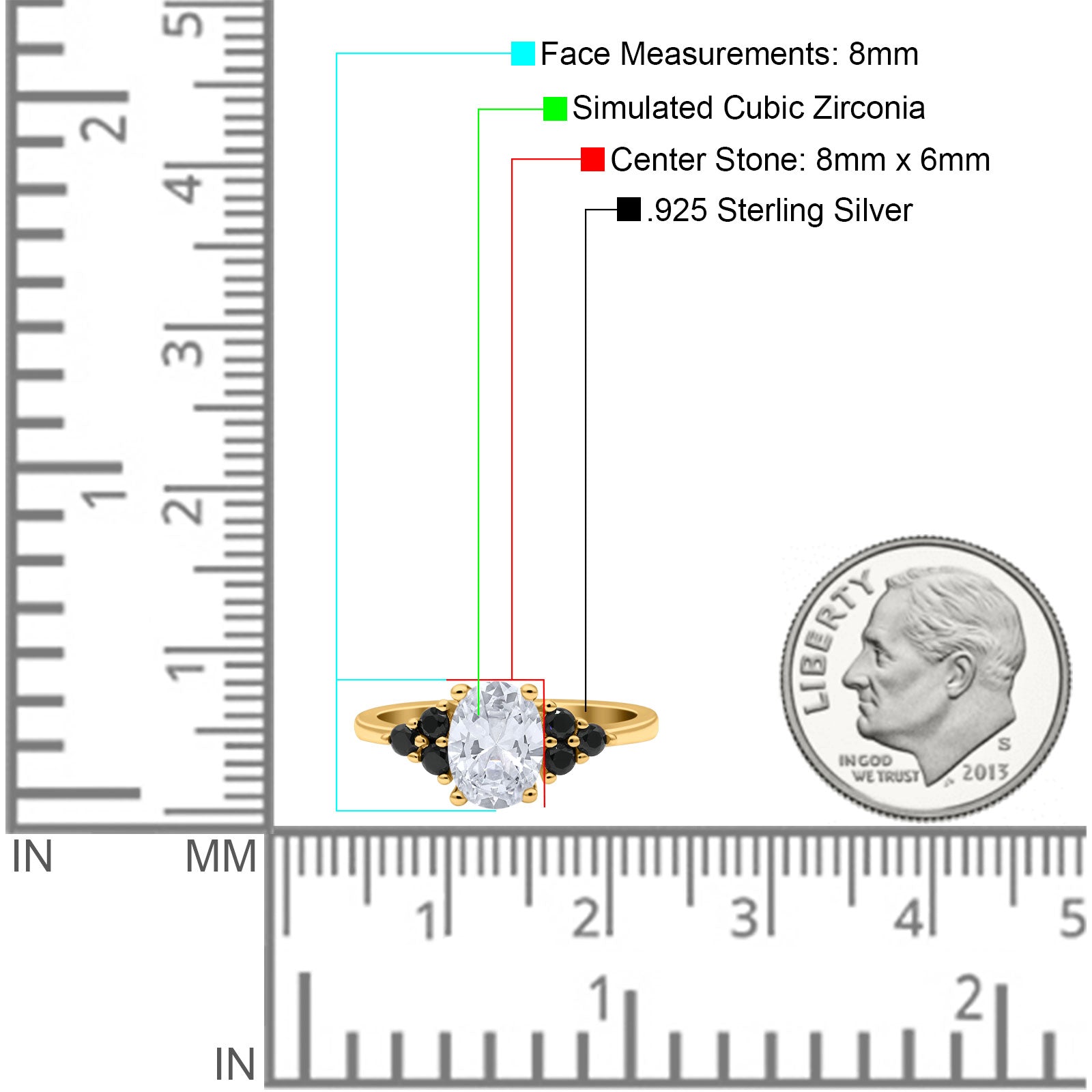 Art Deco Oval Wedding Engagement Bridal Ring Black Simulated Cubic Zirconia 925 Sterling Silver