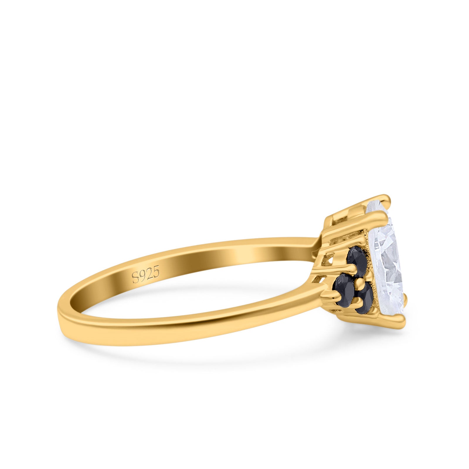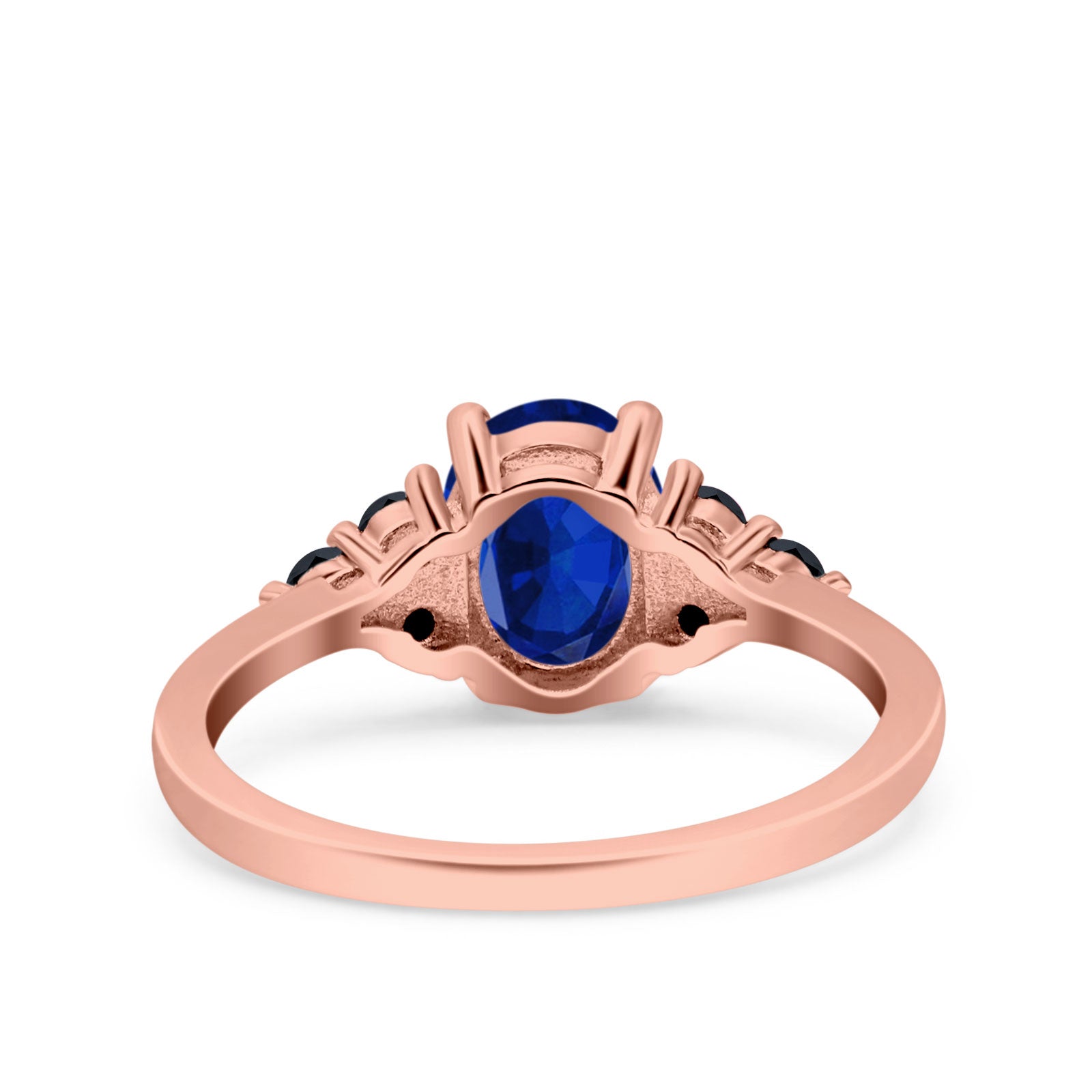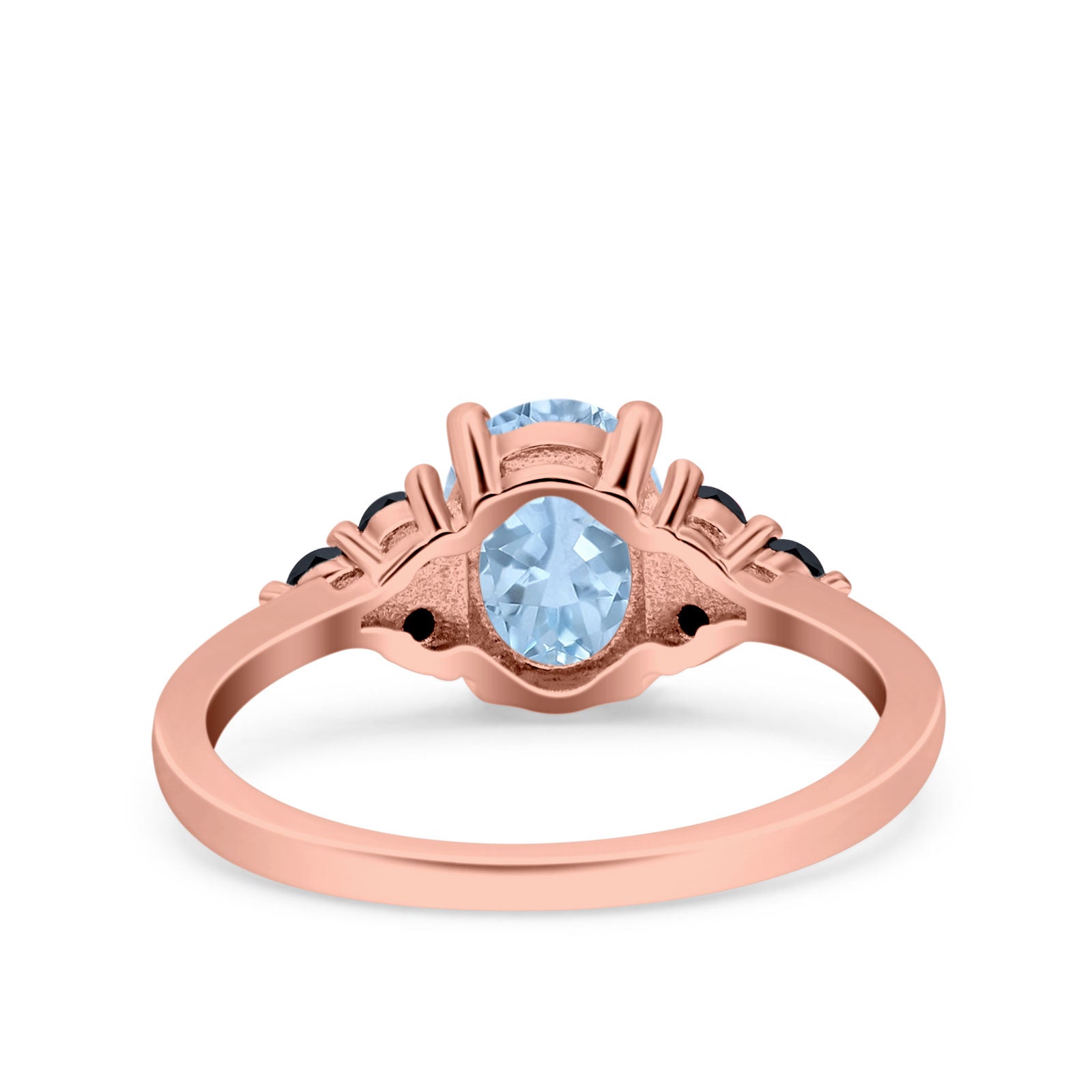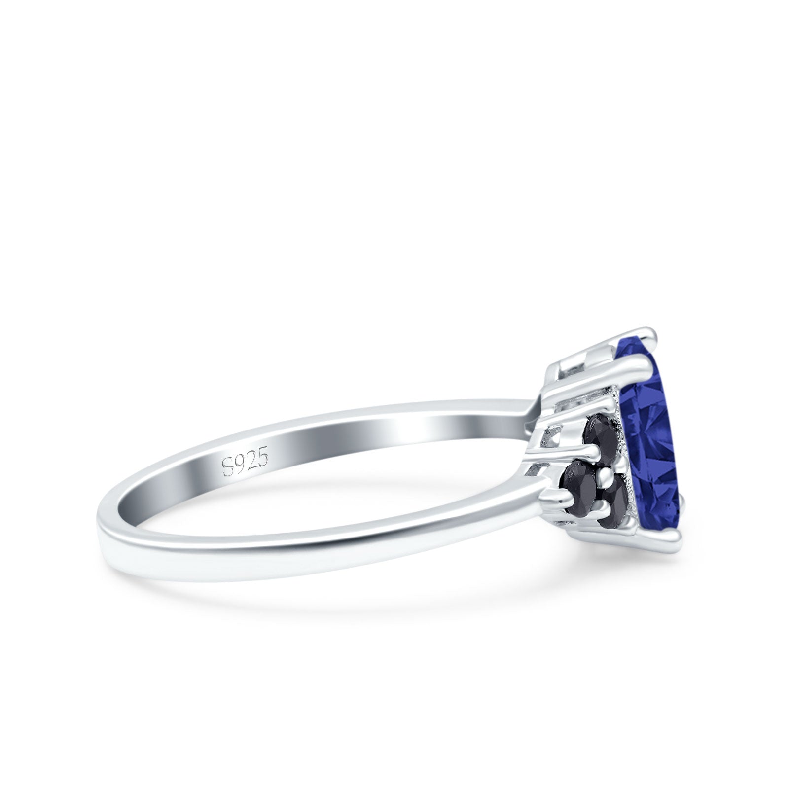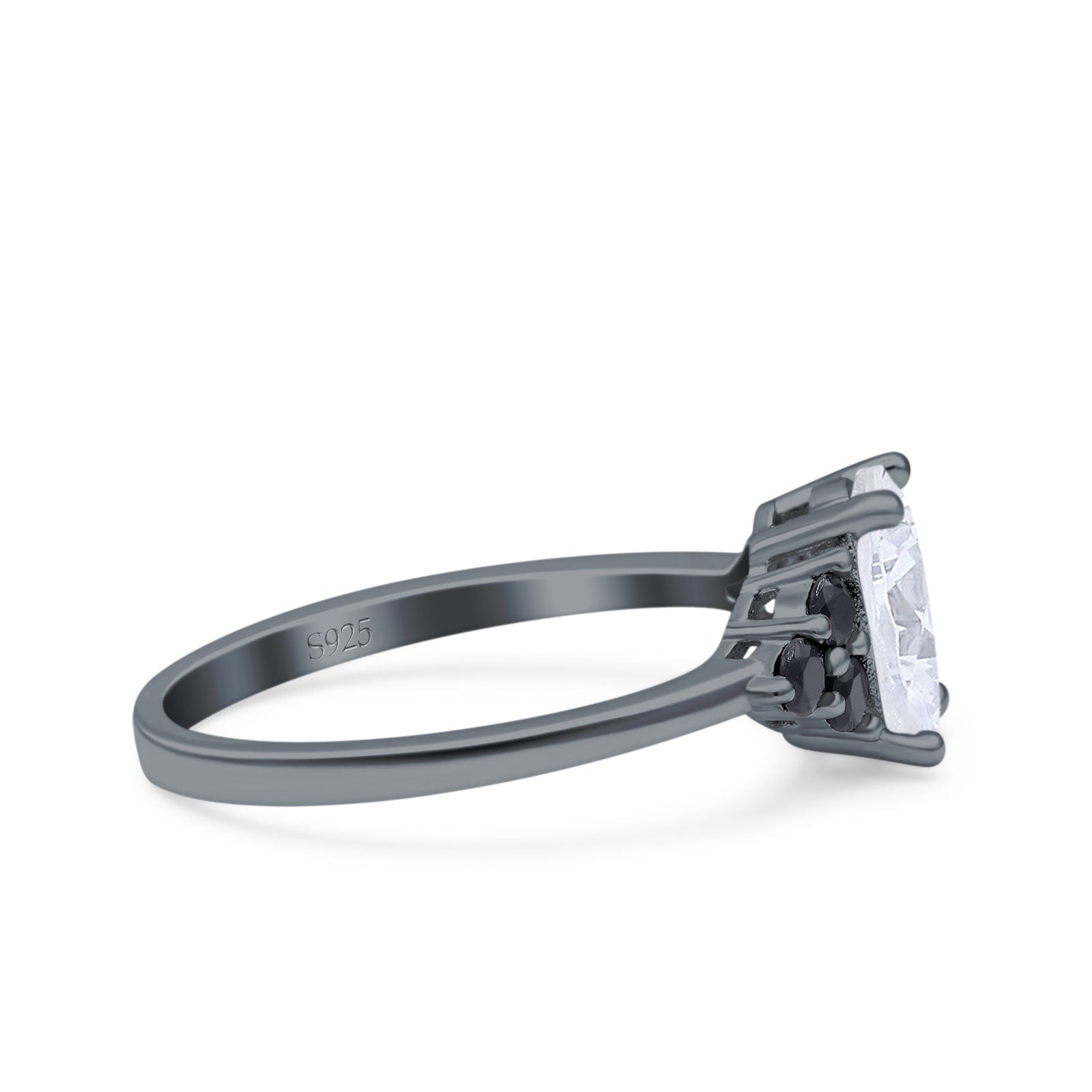 Art Deco Oval Wedding Engagement Bridal Ring Black Simulated Cubic Zirconia 925 Sterling Silver