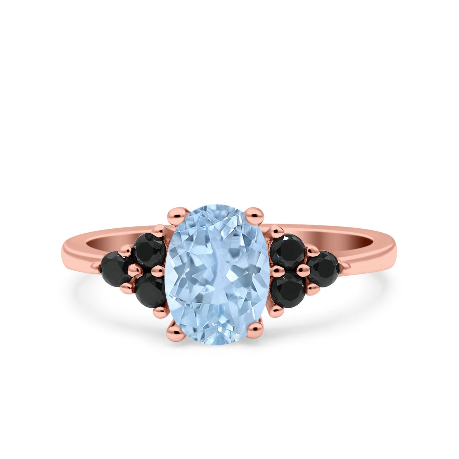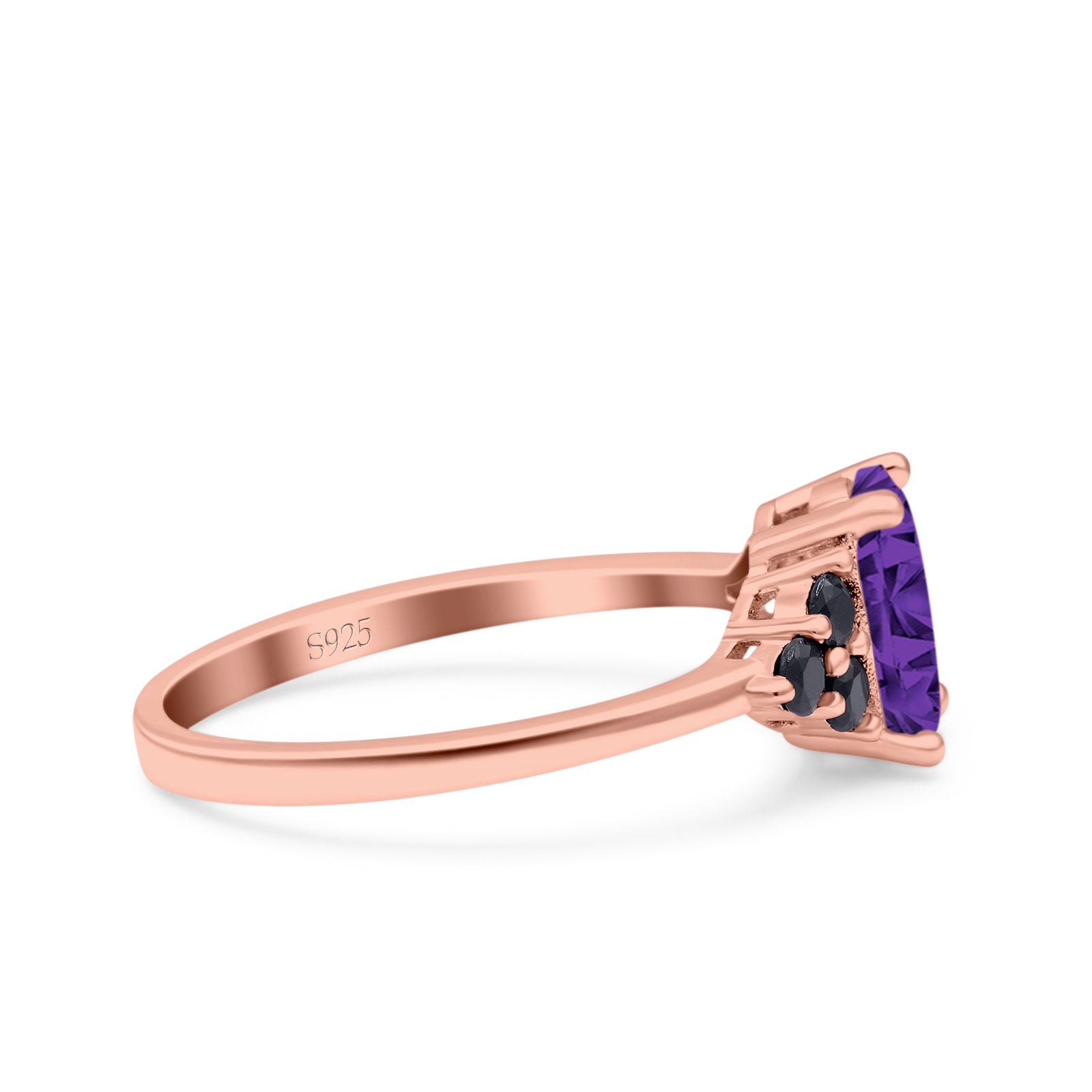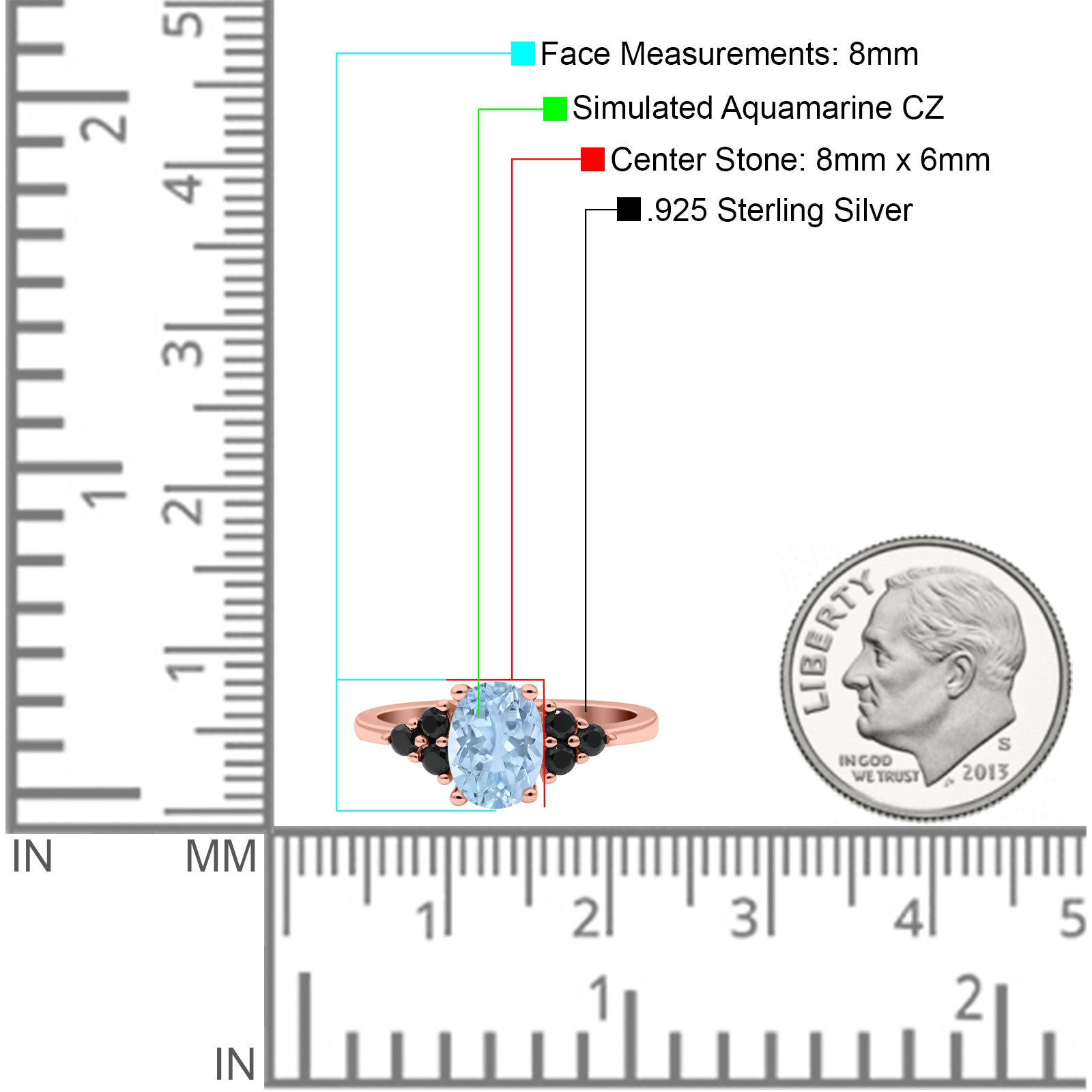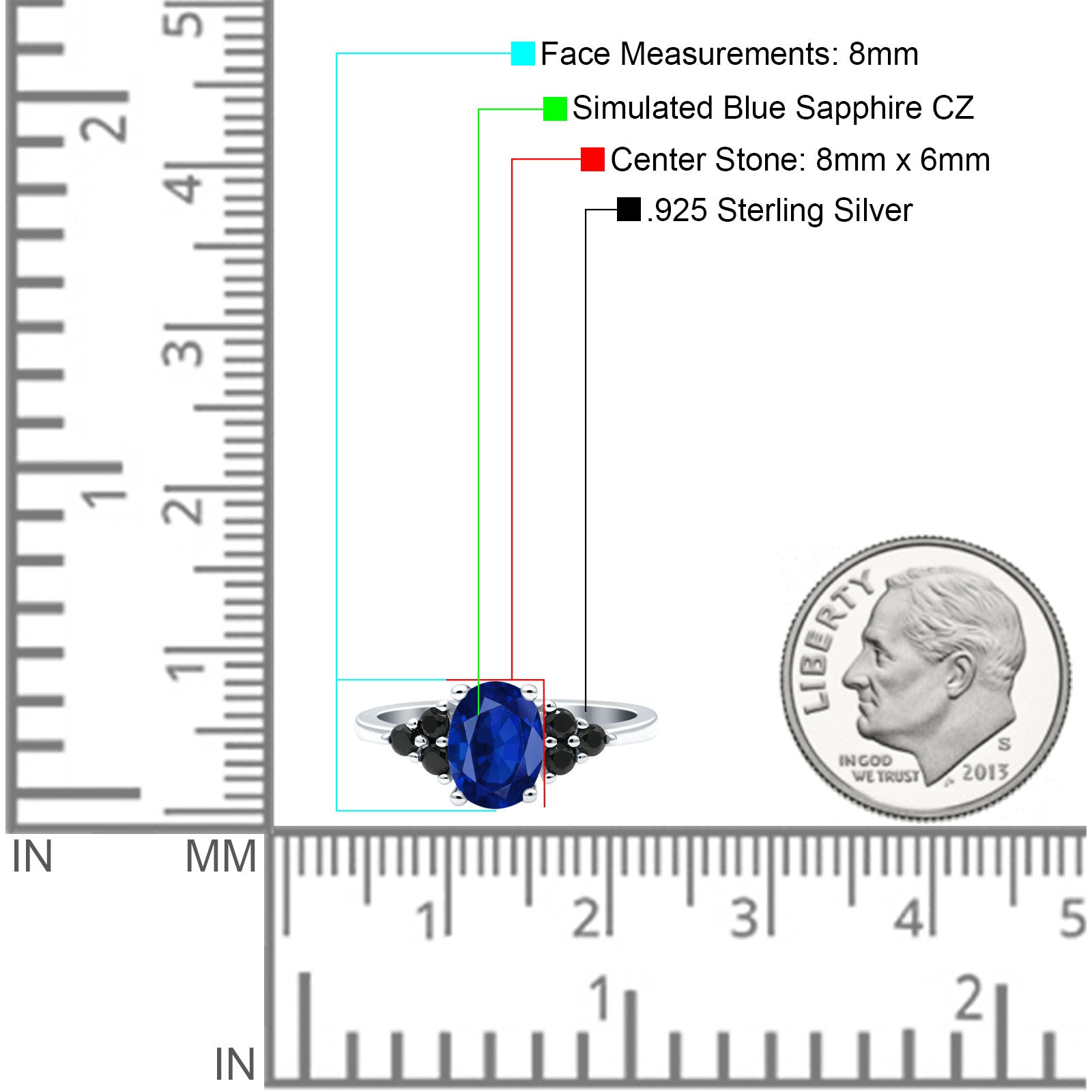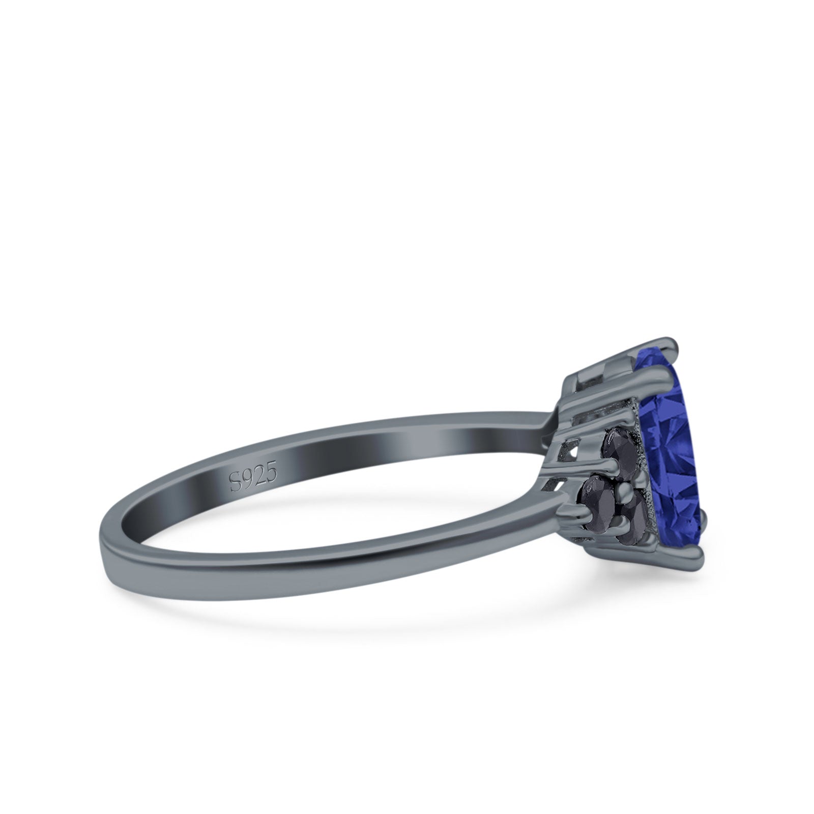 Art Deco Oval Wedding Engagement Bridal Ring Black Simulated Cubic Zirconia 925 Sterling Silver