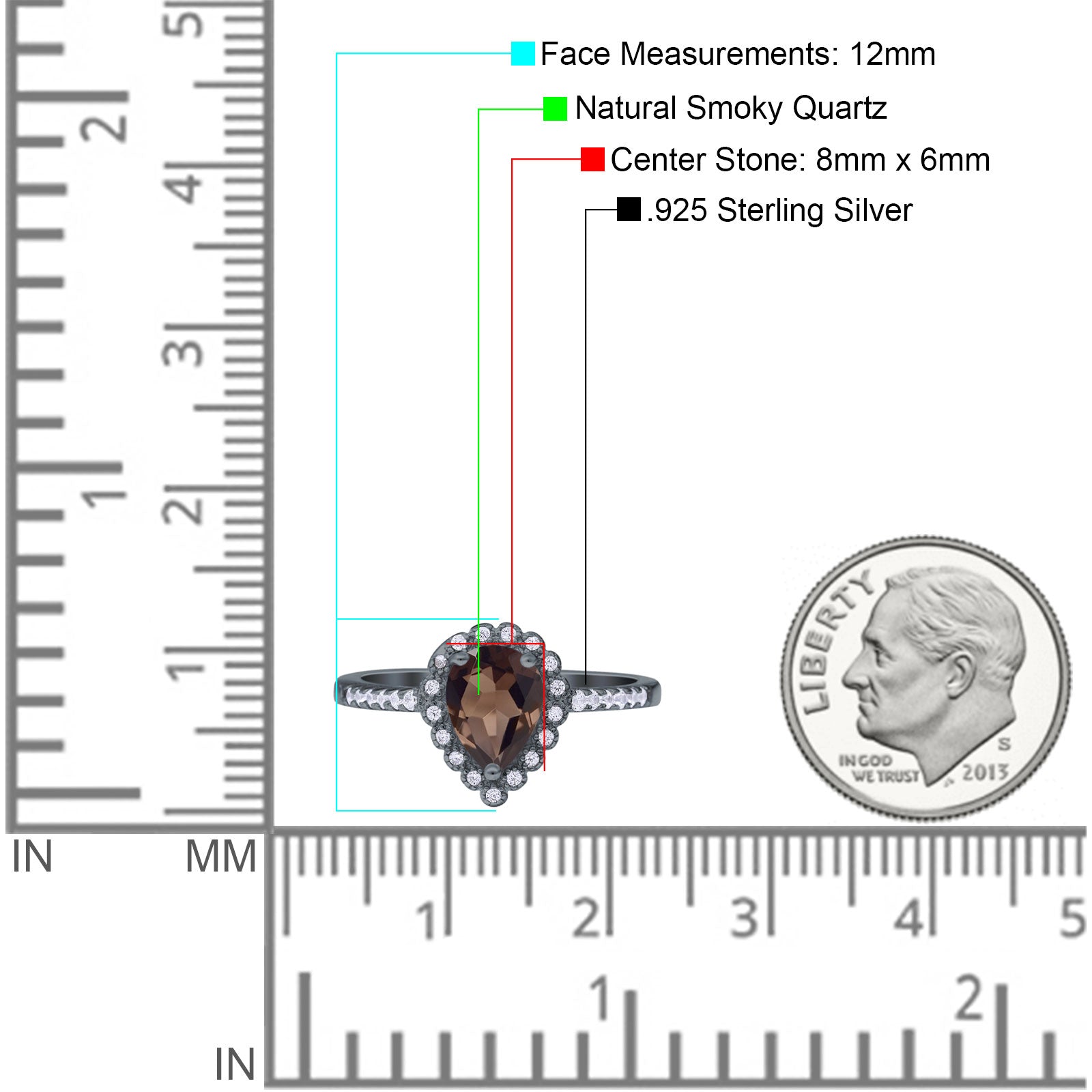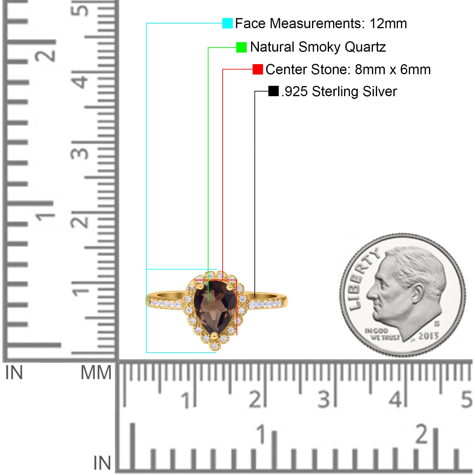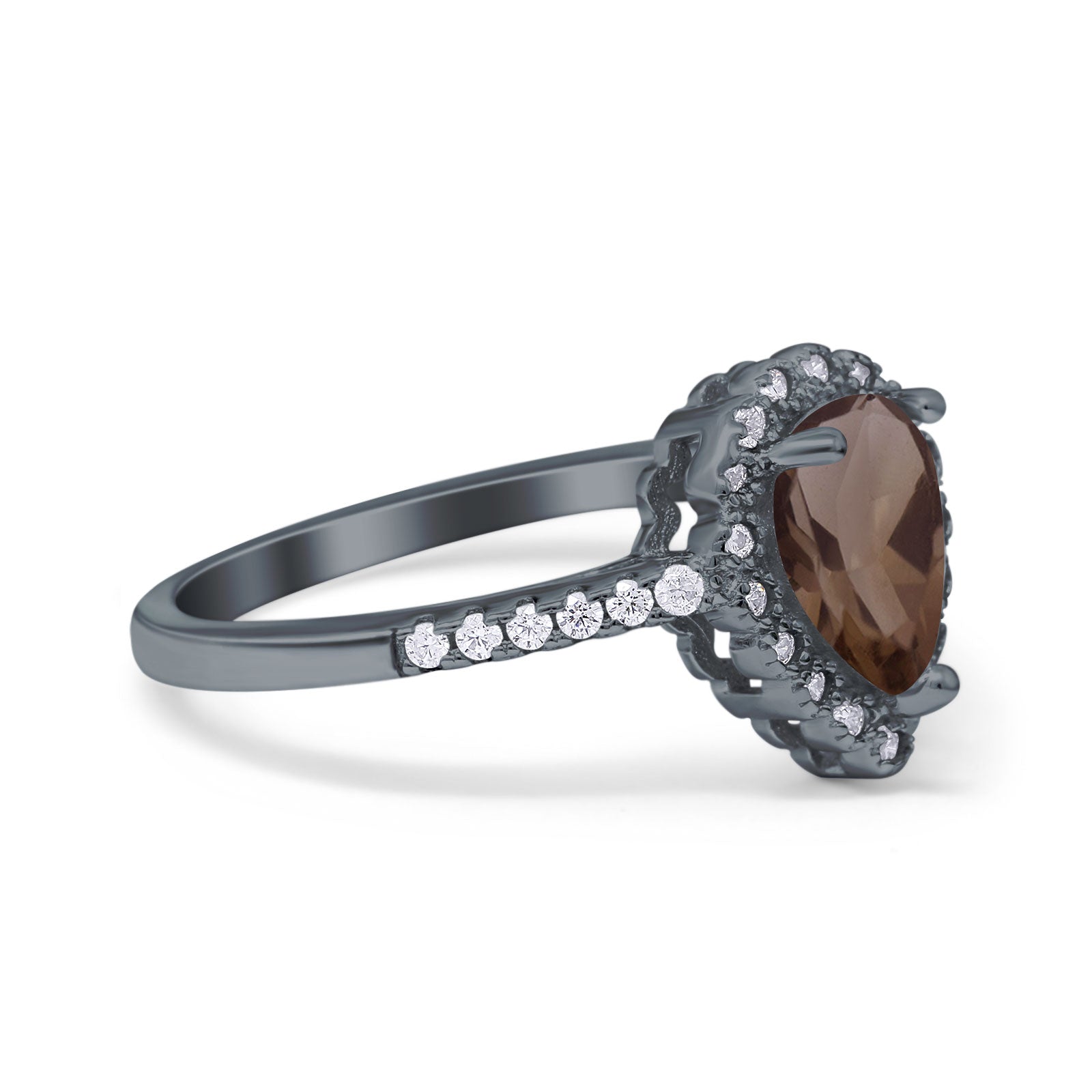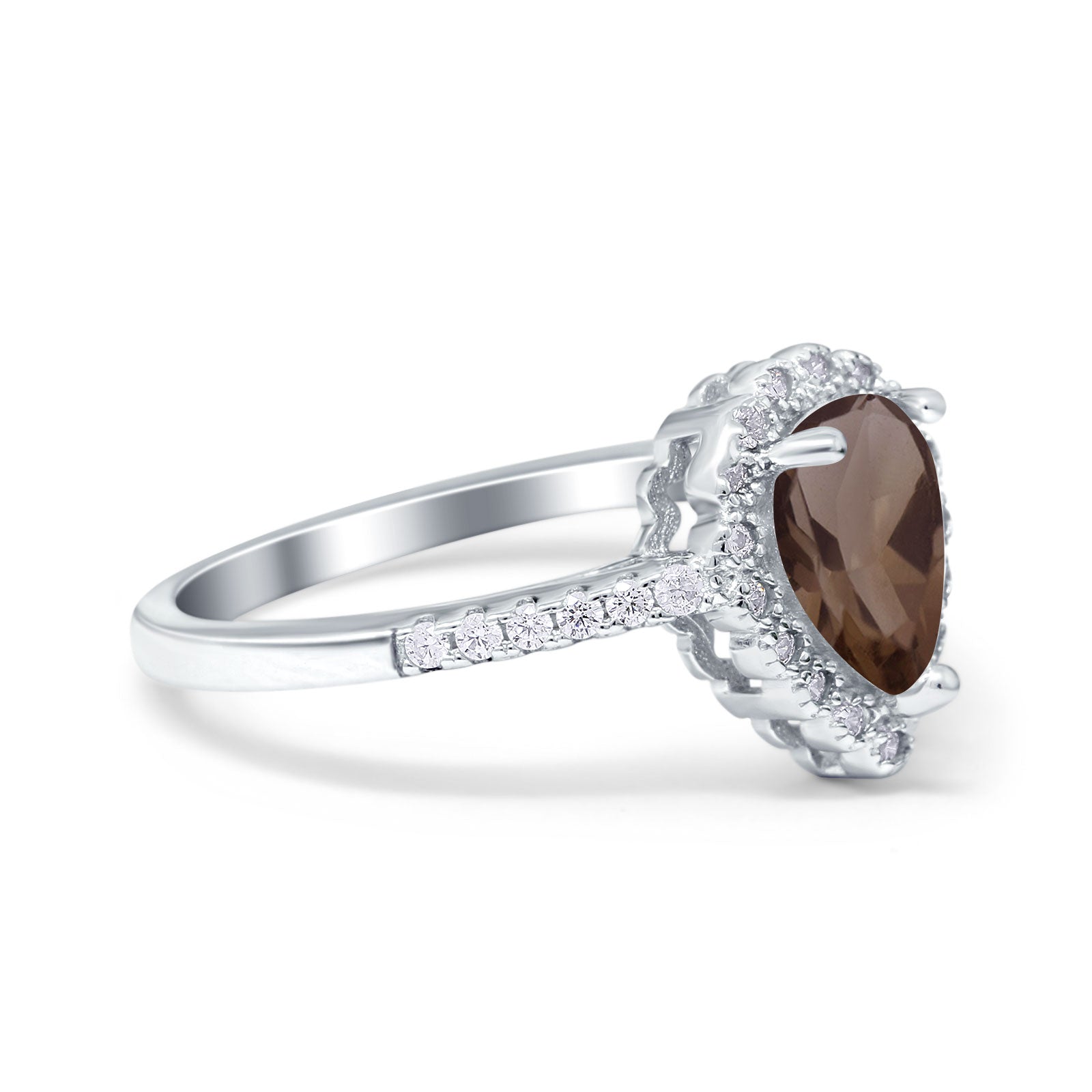 Art Deco Pear Natural Chocolate Smoky Quartz Halo Engagement Ring 925 Sterling Silver