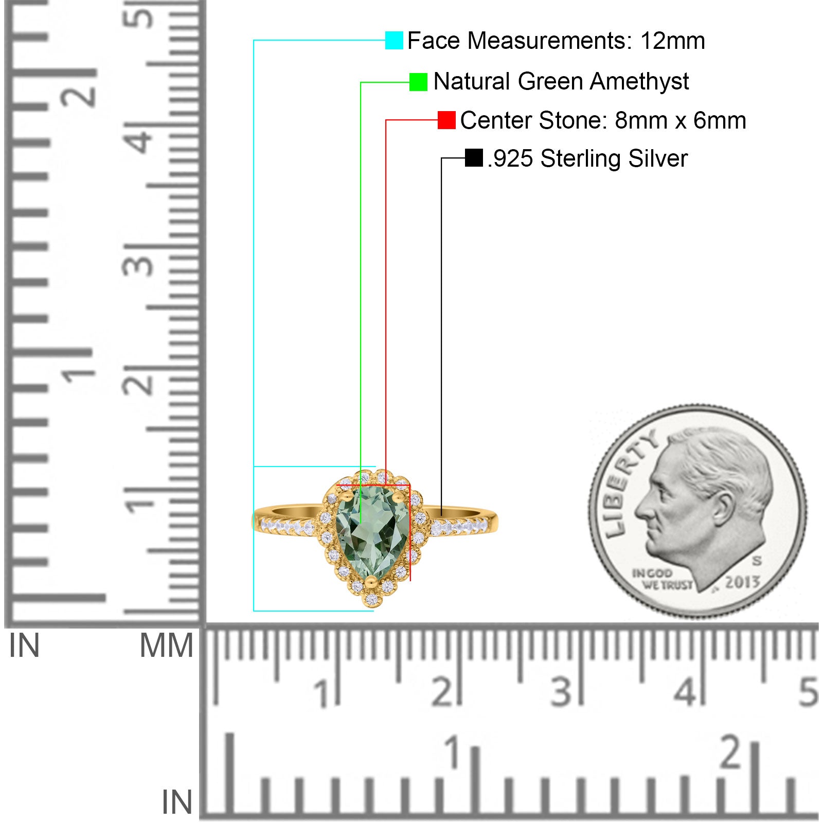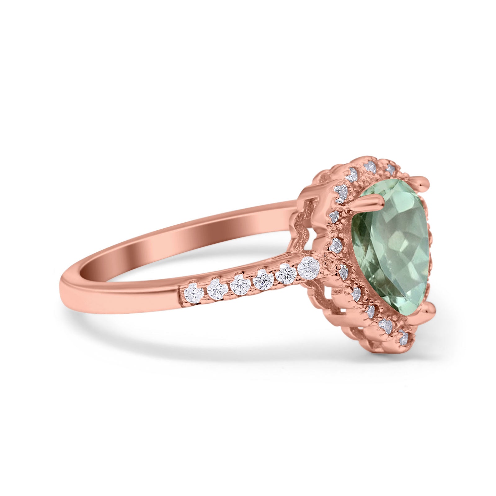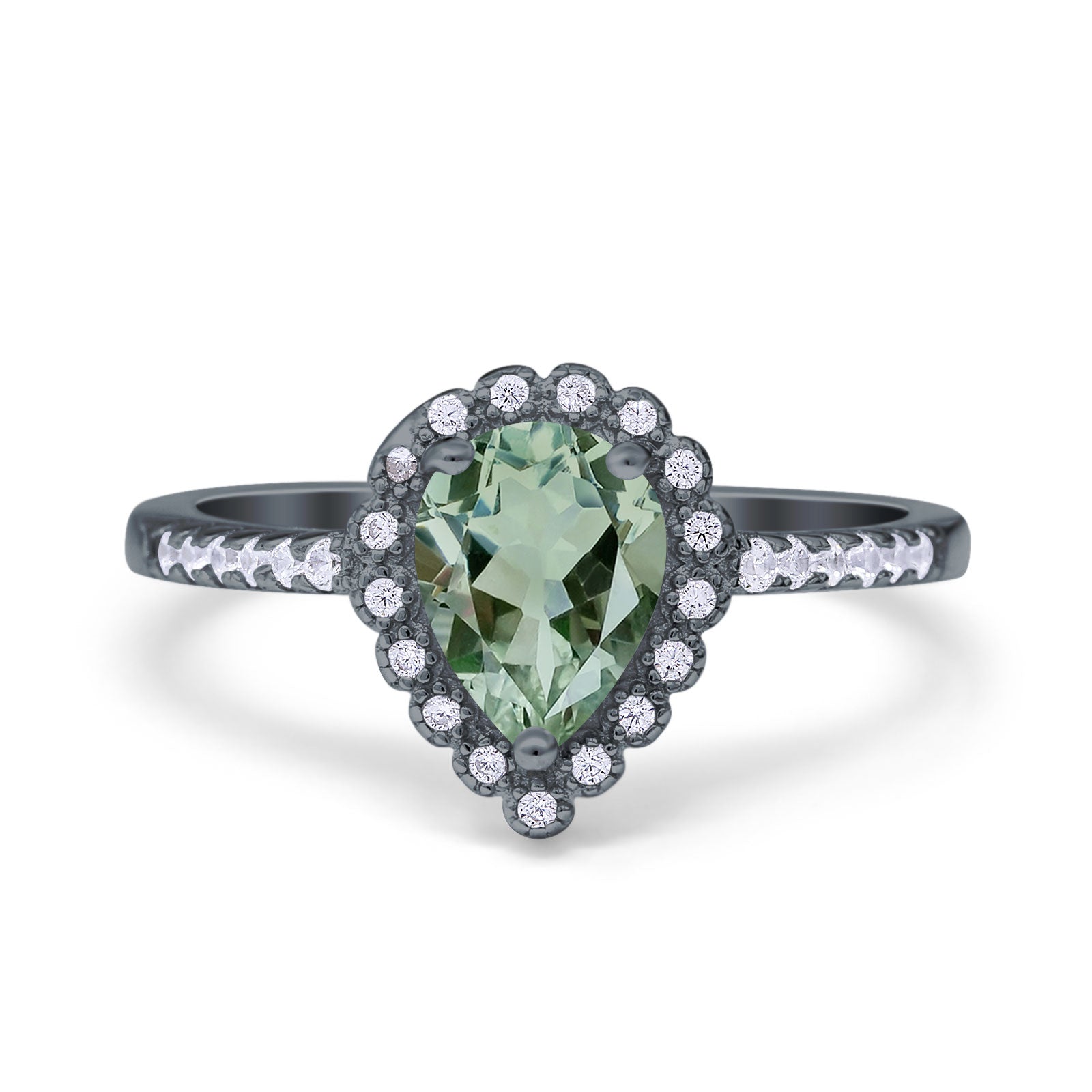 Art Deco Pear Natural Green Amethyst Prasiolite Halo Engagement Ring 925 Sterling Silver
