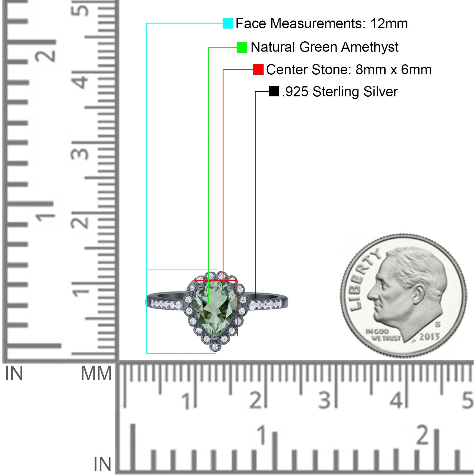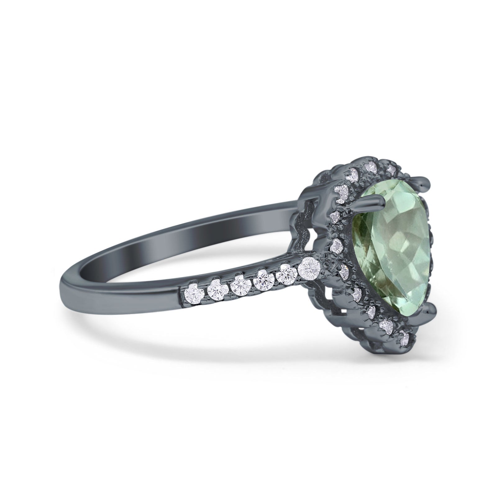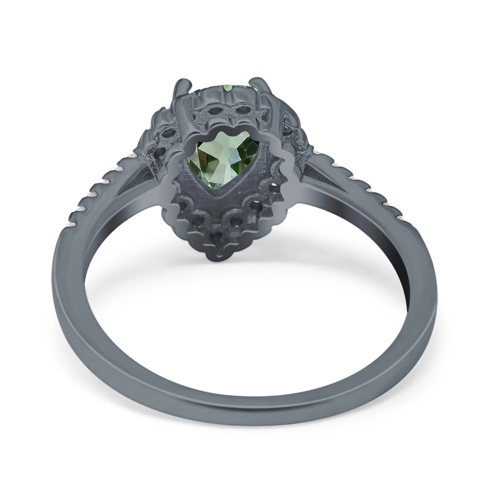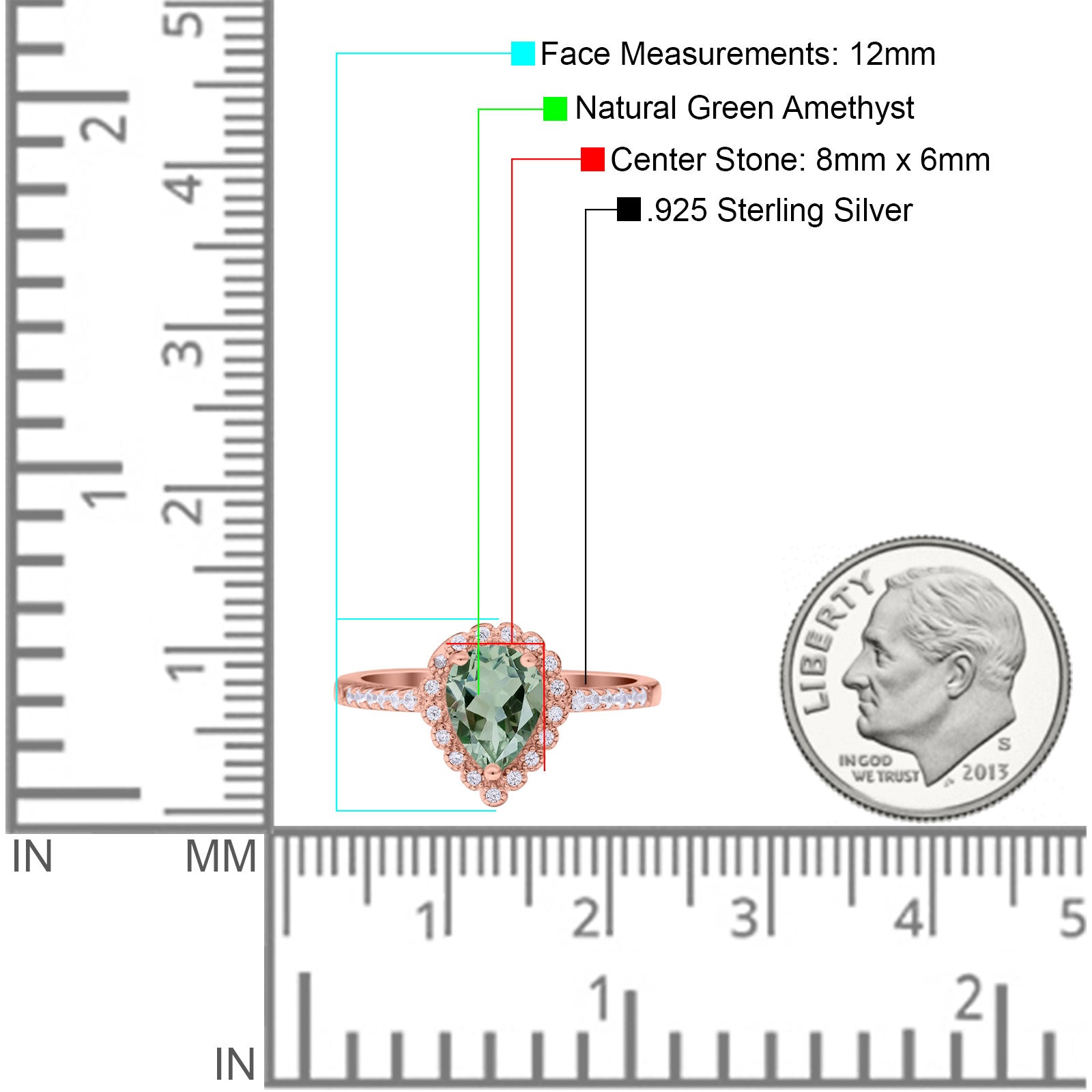 Art Deco Pear Natural Green Amethyst Prasiolite Halo Engagement Ring 925 Sterling Silver