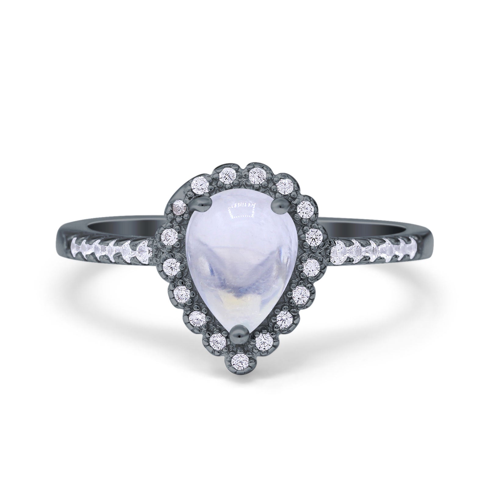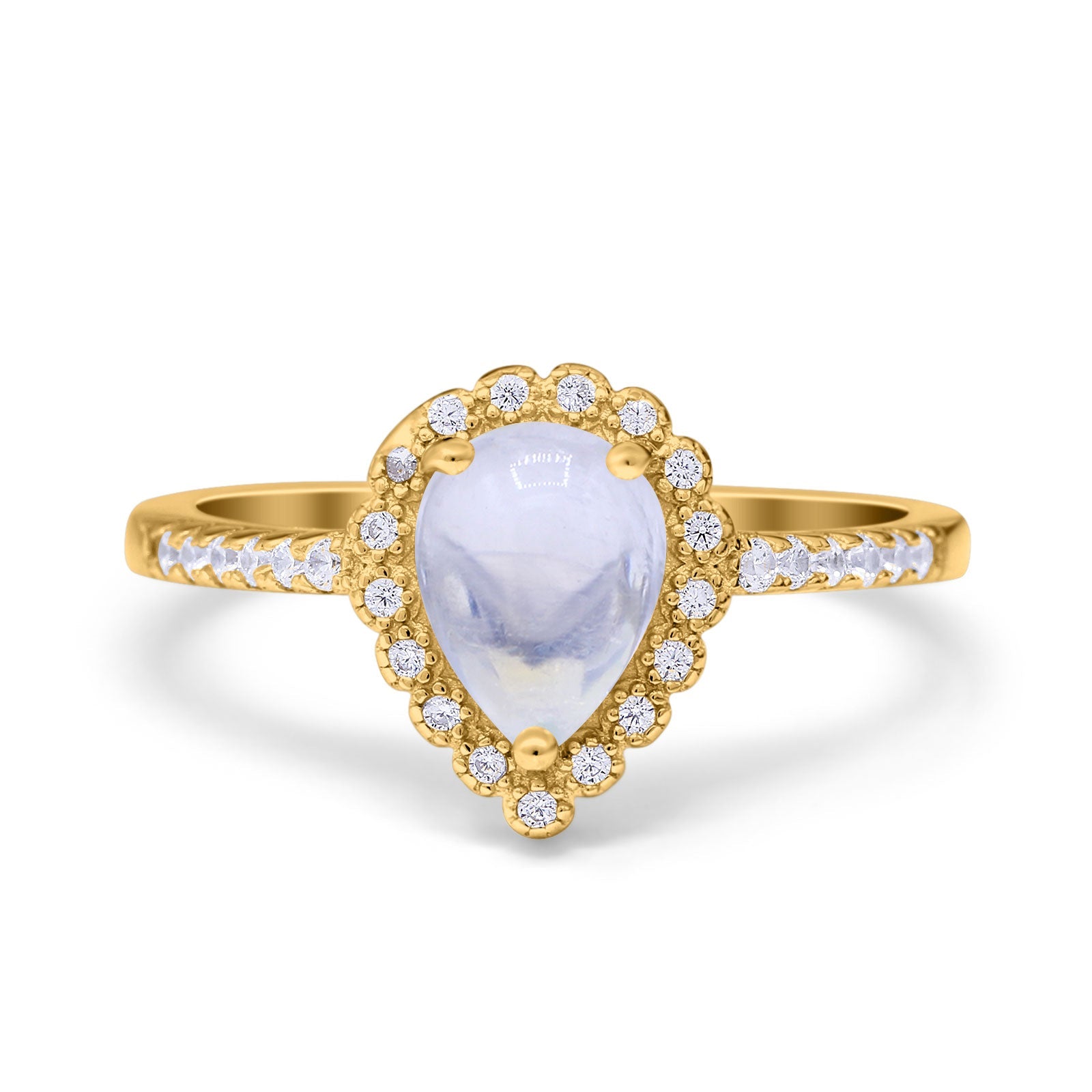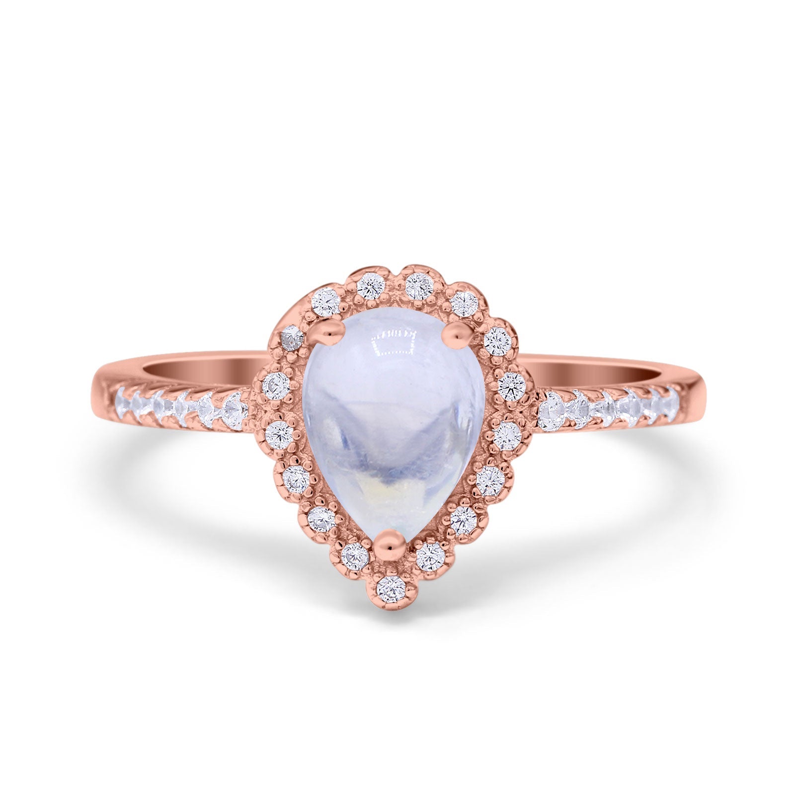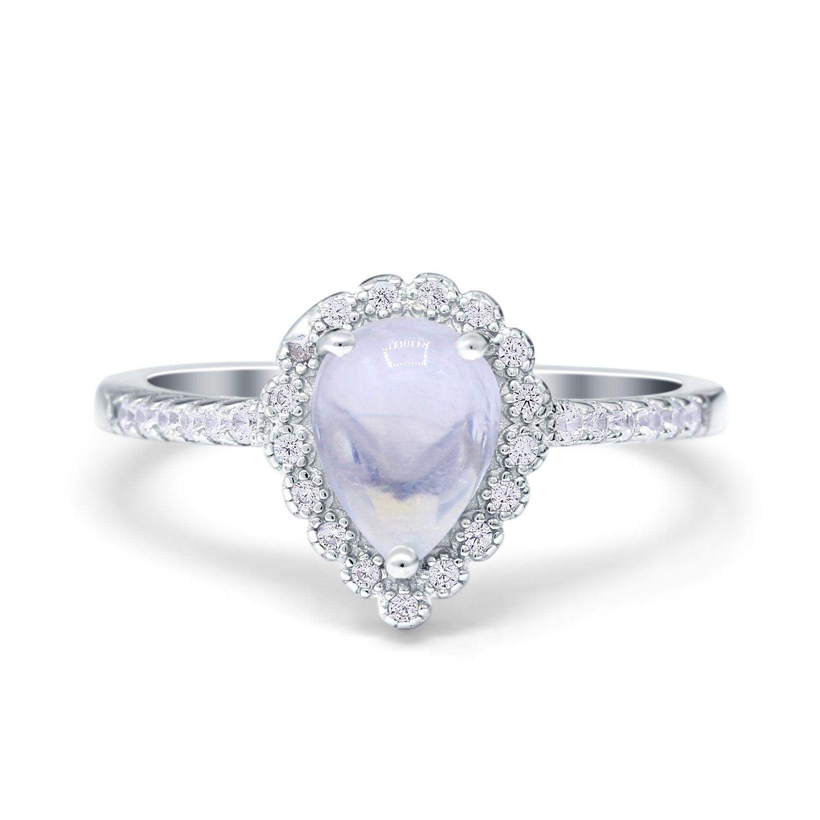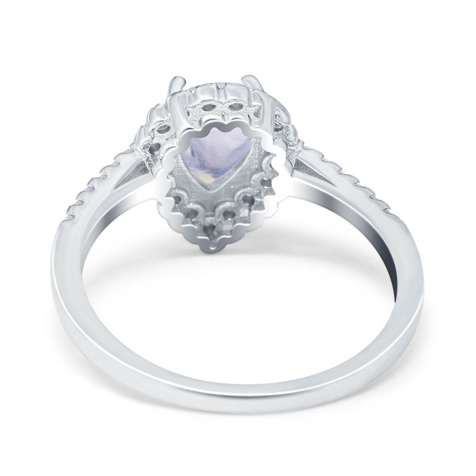 Art Deco Pear Natural Moonstone Halo Engagement Ring 925 Sterling Silver