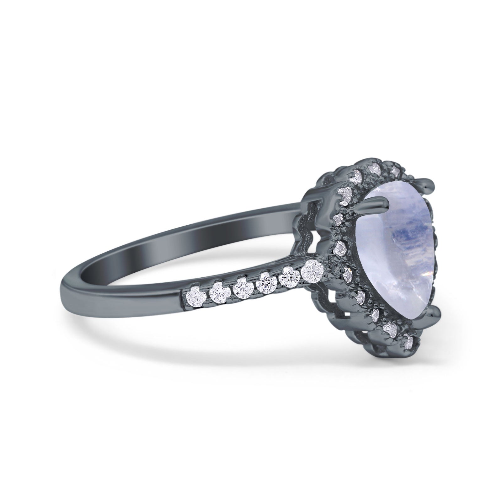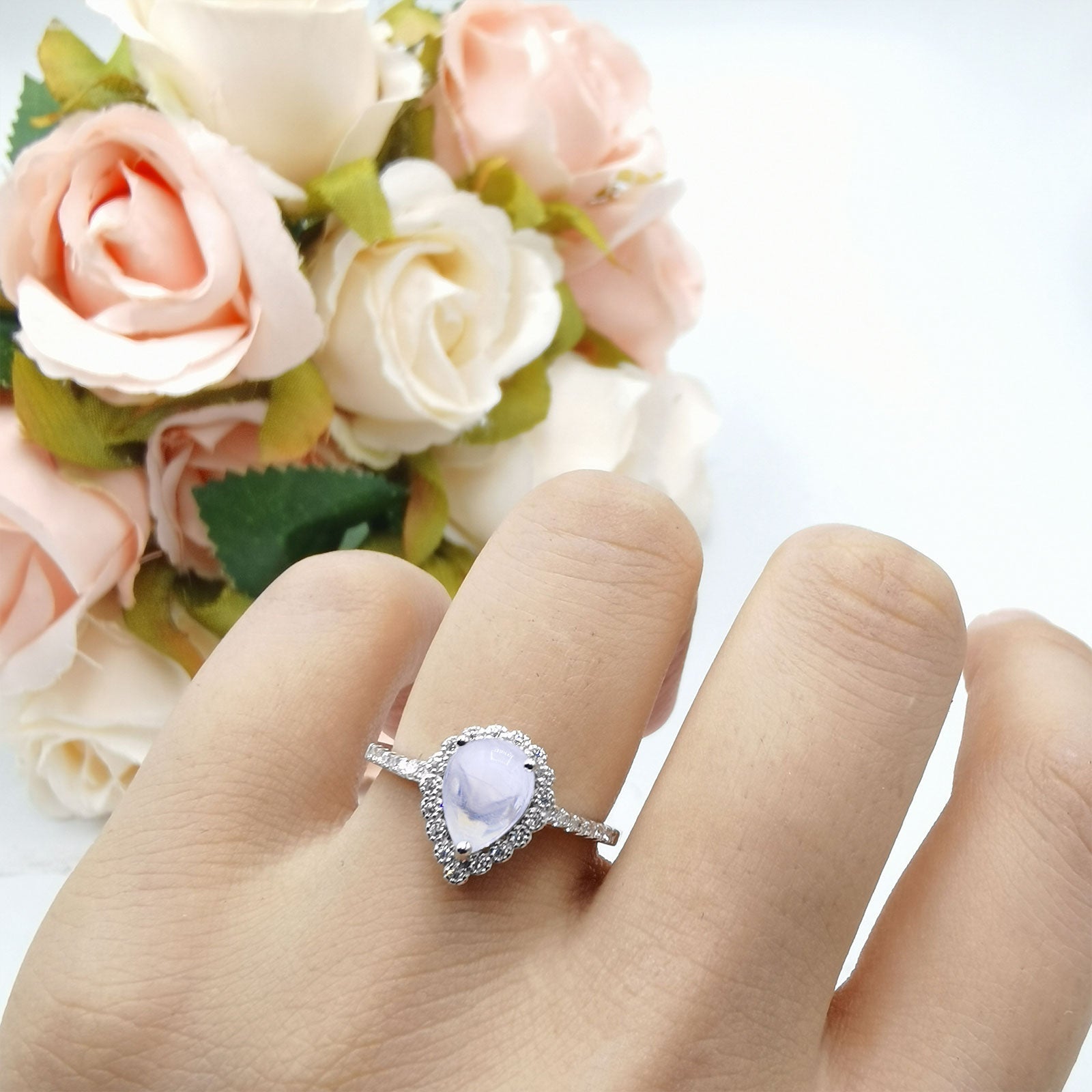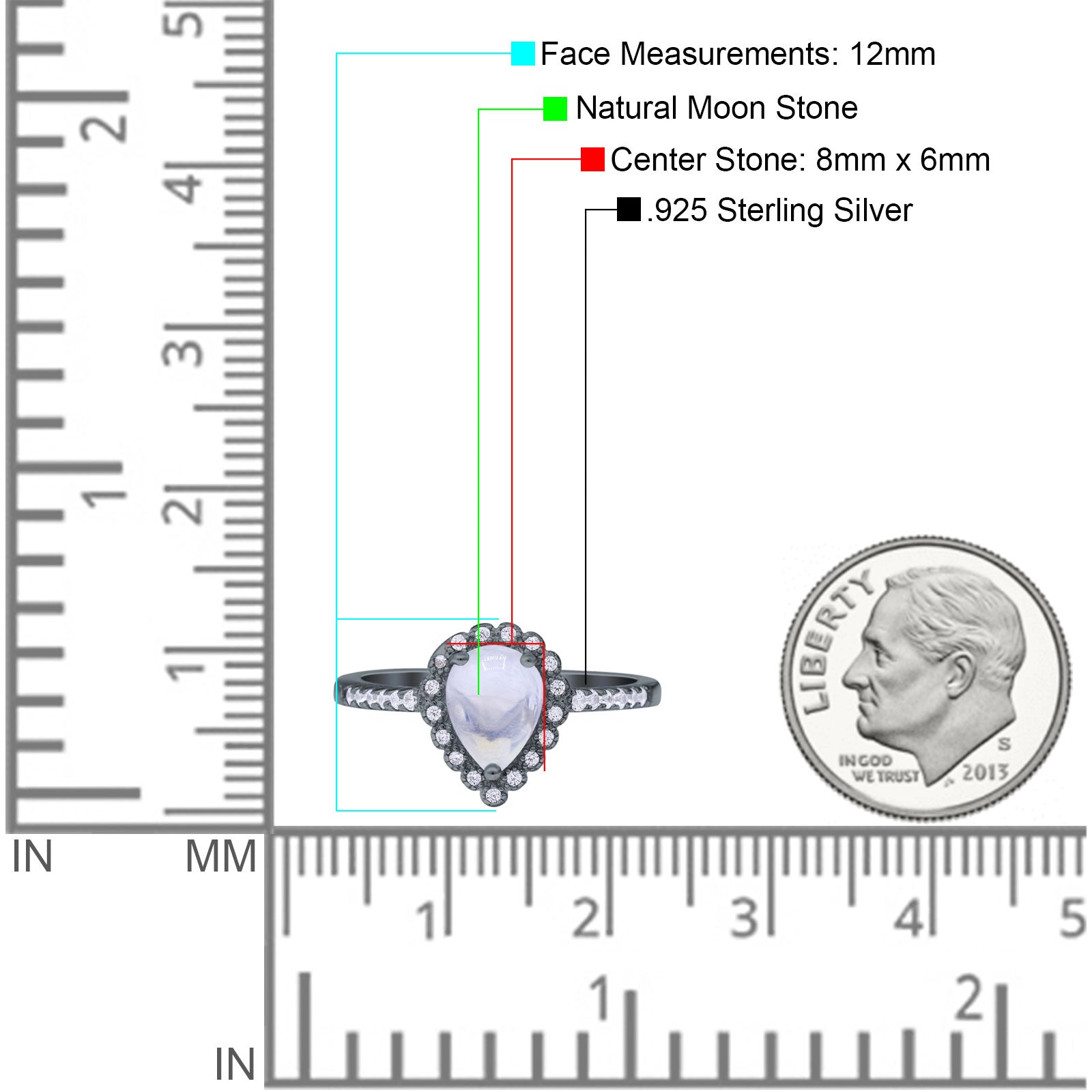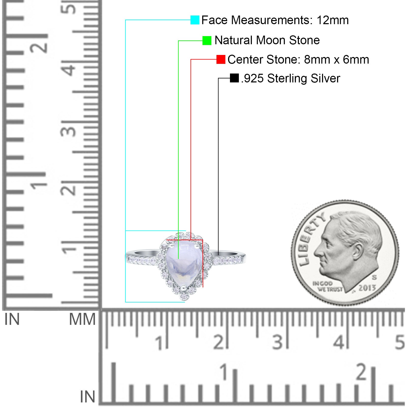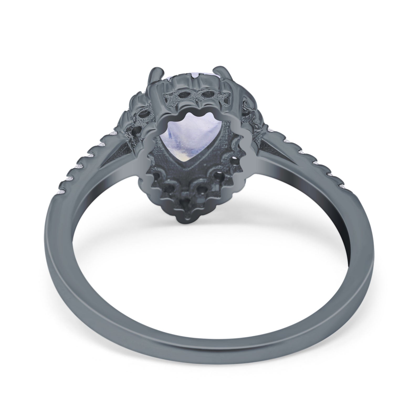 Art Deco Pear Natural Moonstone Halo Engagement Ring 925 Sterling Silver