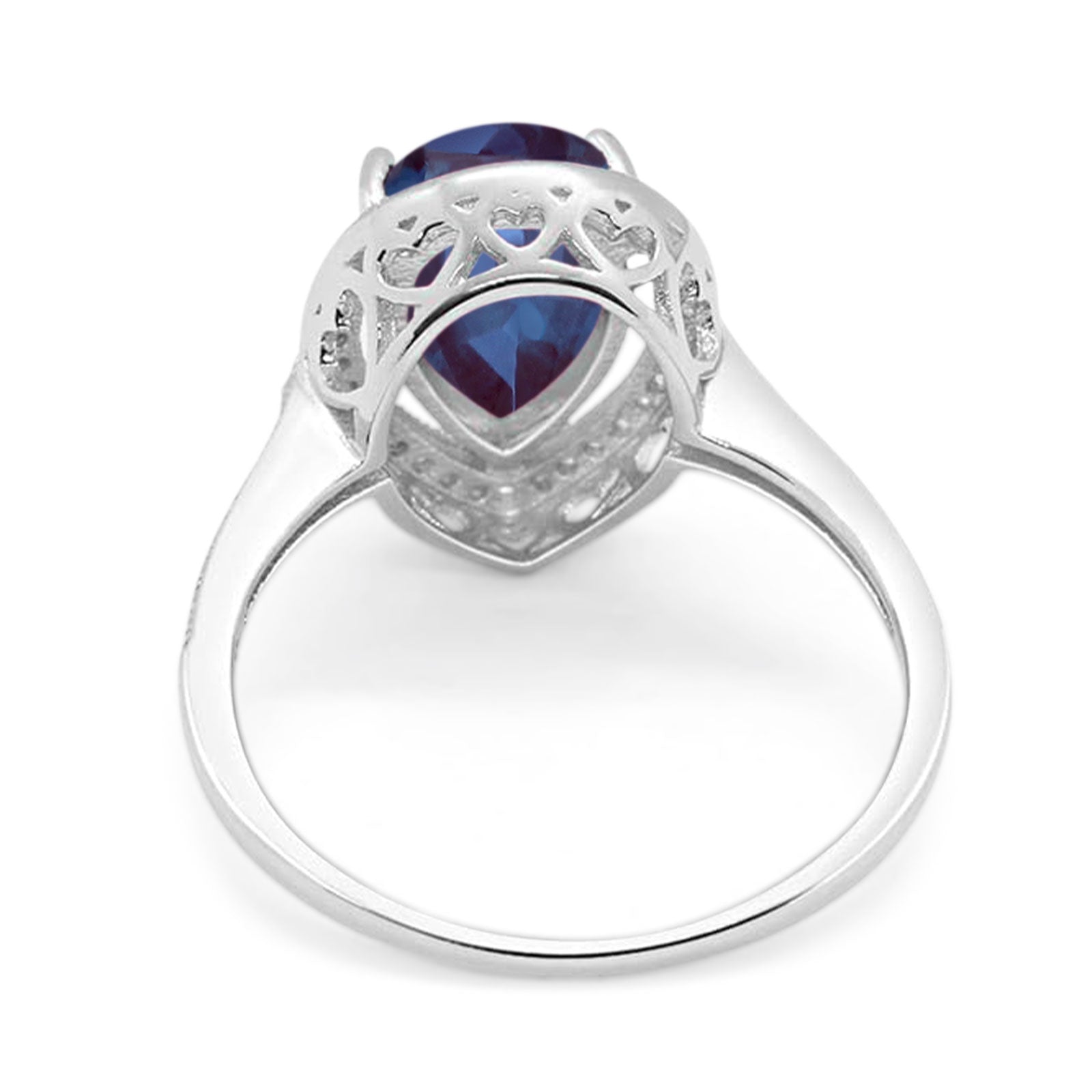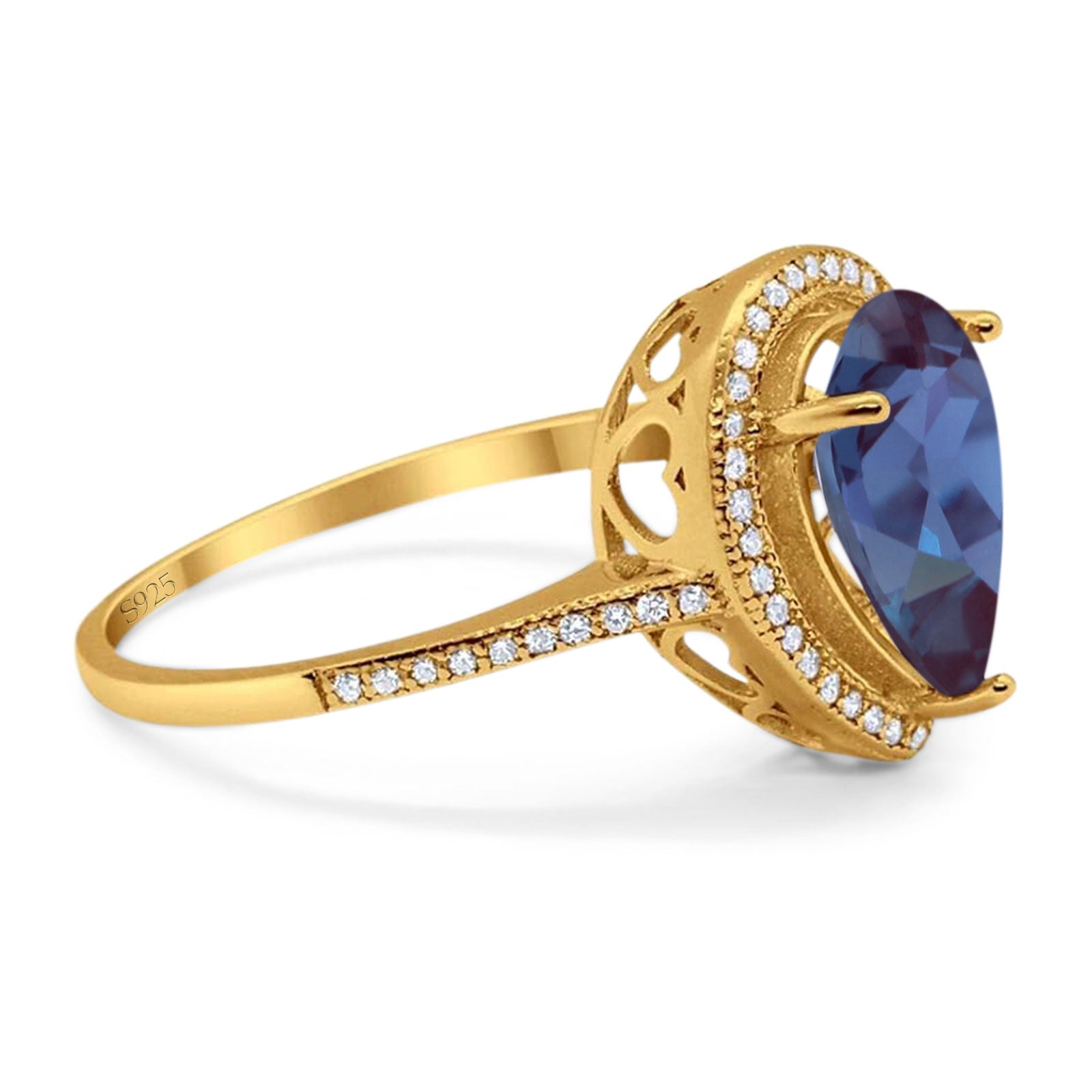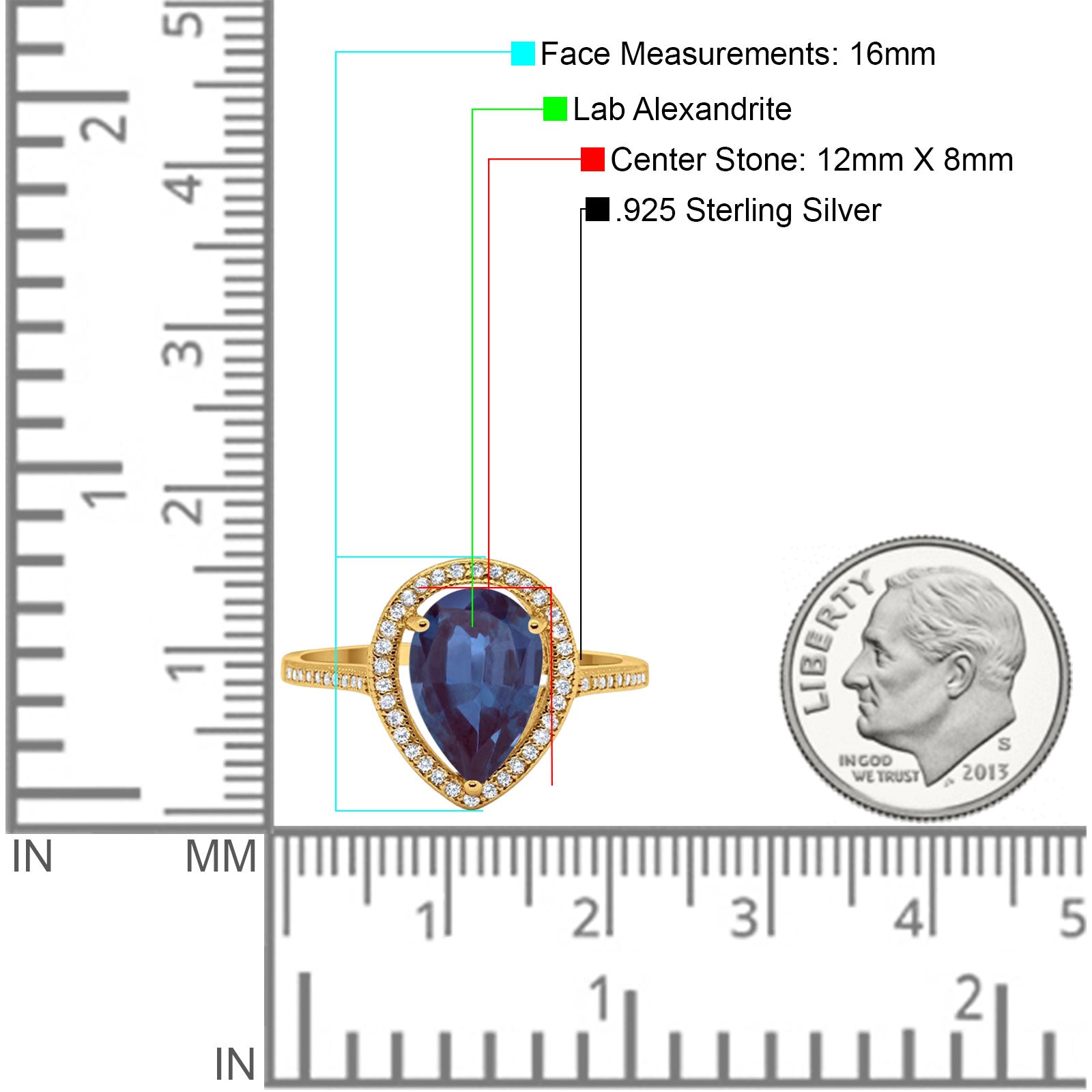 Art Deco Pear Teardrop Lab Alexandrite Cocktail Ring 925 Sterling Silver