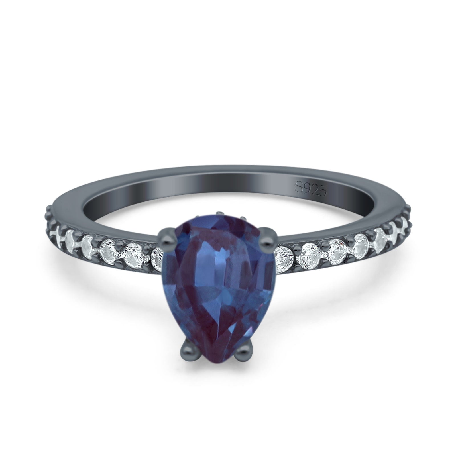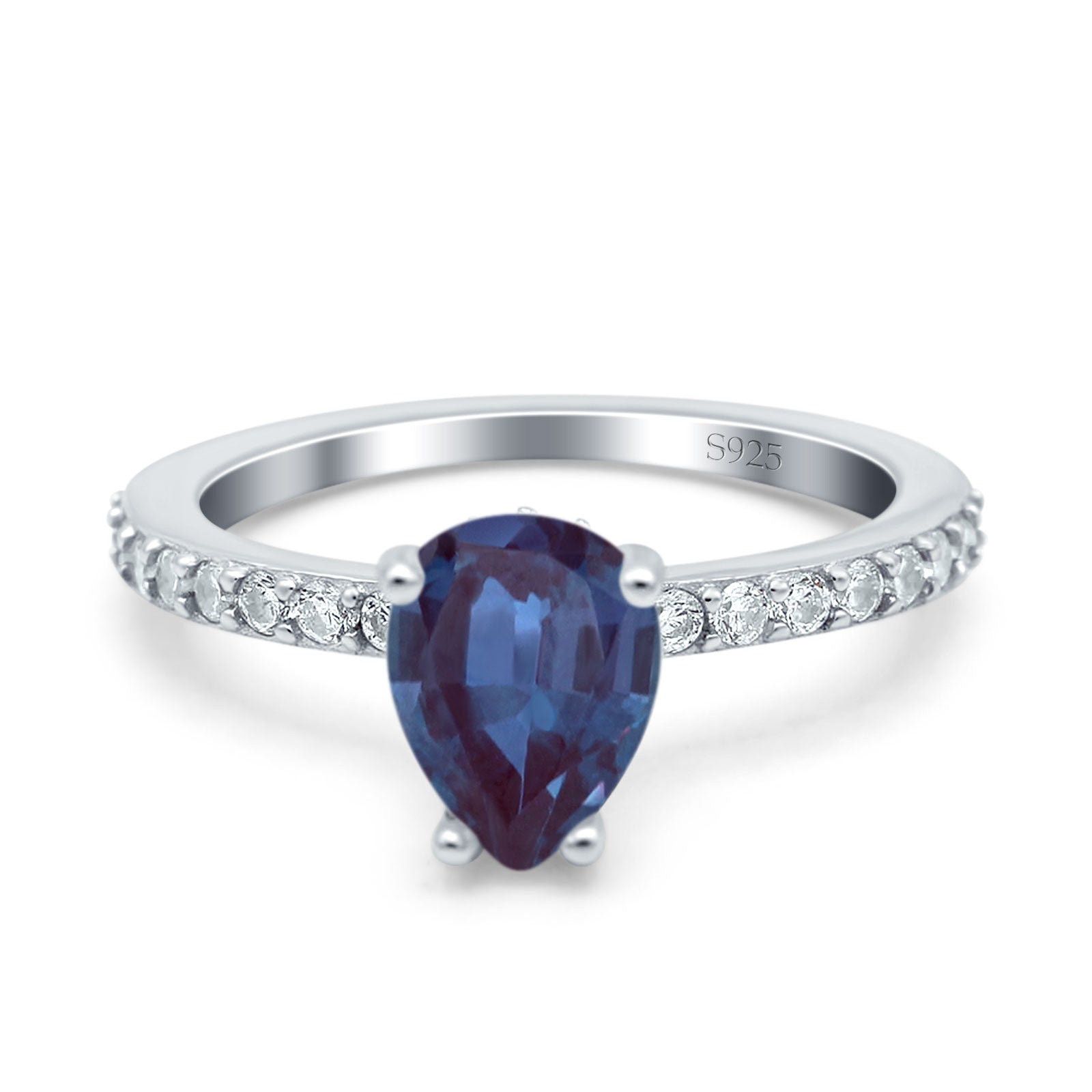 Art Deco Pear Teardrop Lab Alexandrite Wedding Ring 925 Sterling Silver
