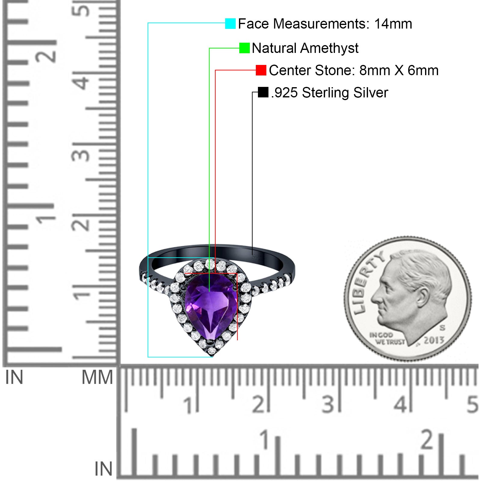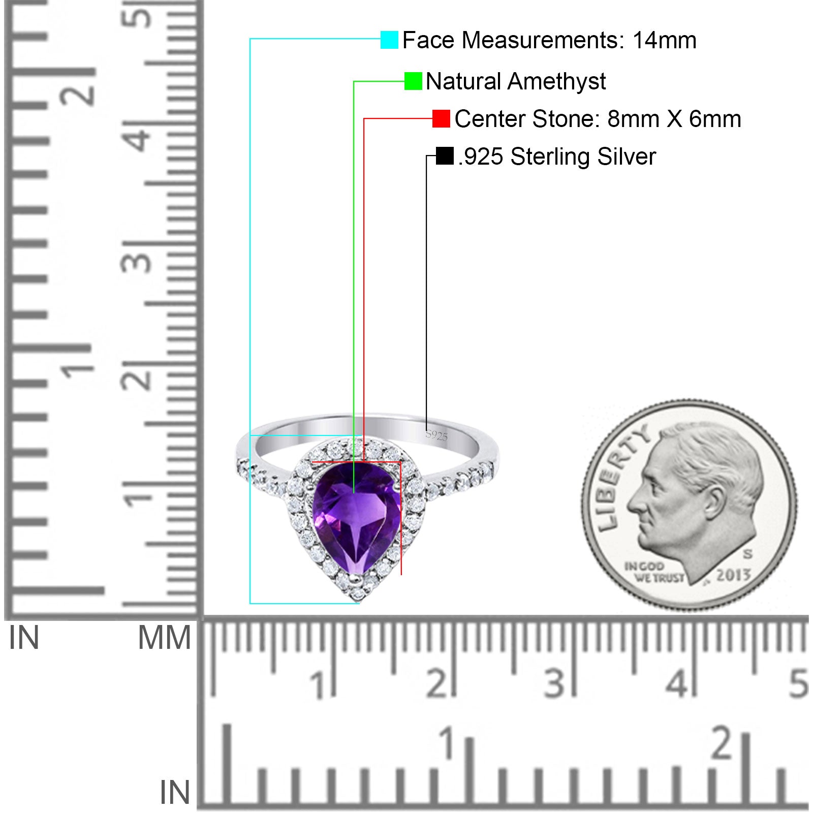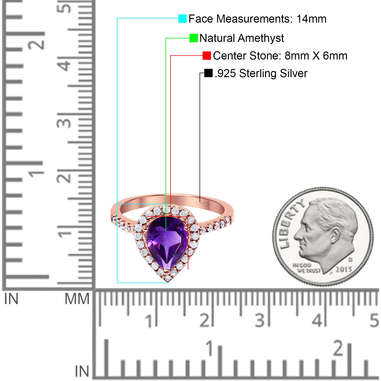 Art Deco Pear Teardrop Natural Amethyst Halo Wedding Ring 925 Sterling Silver