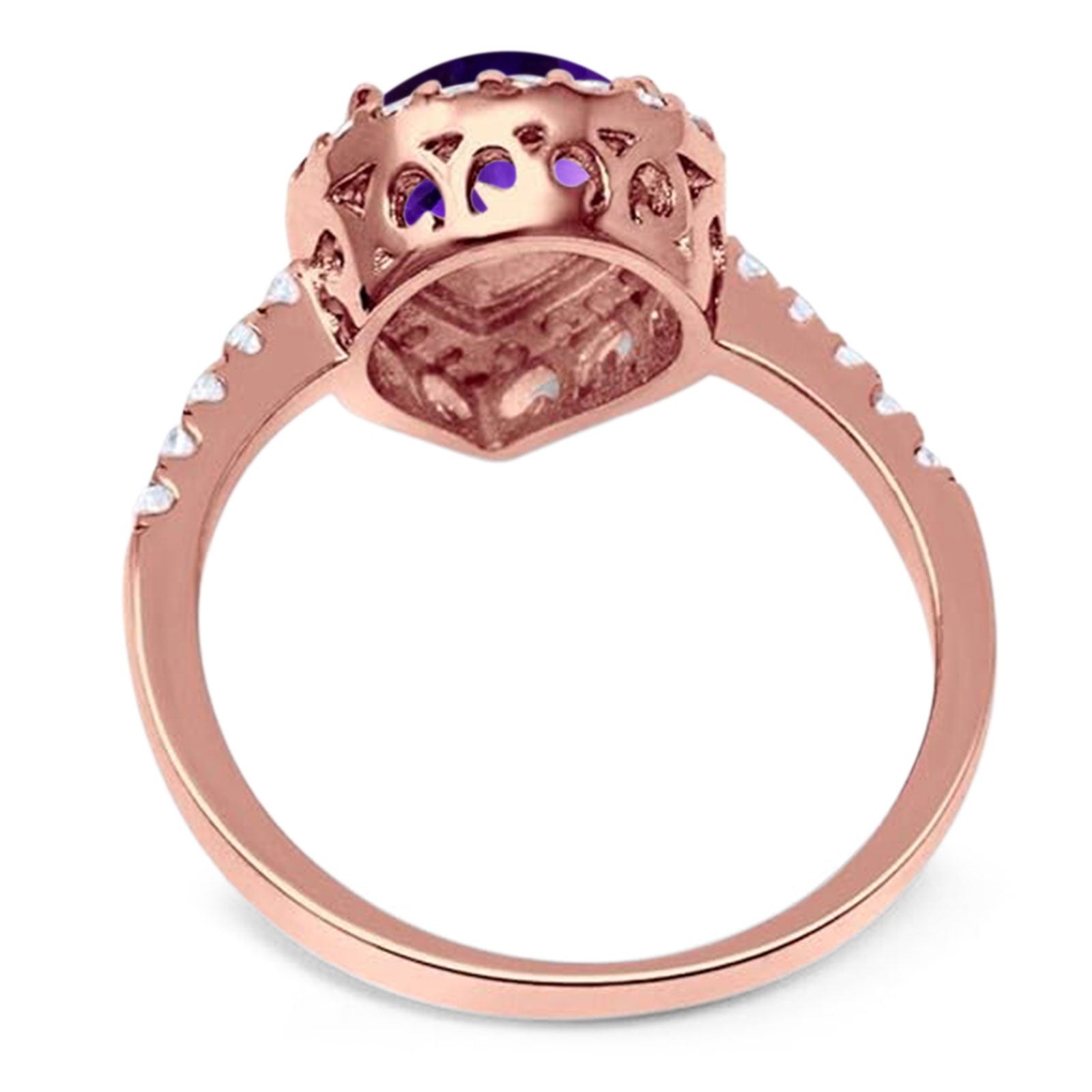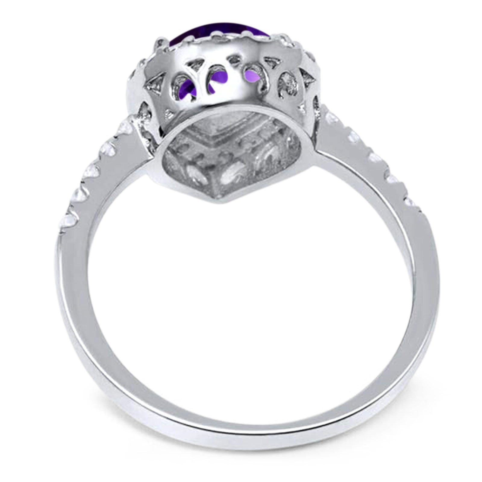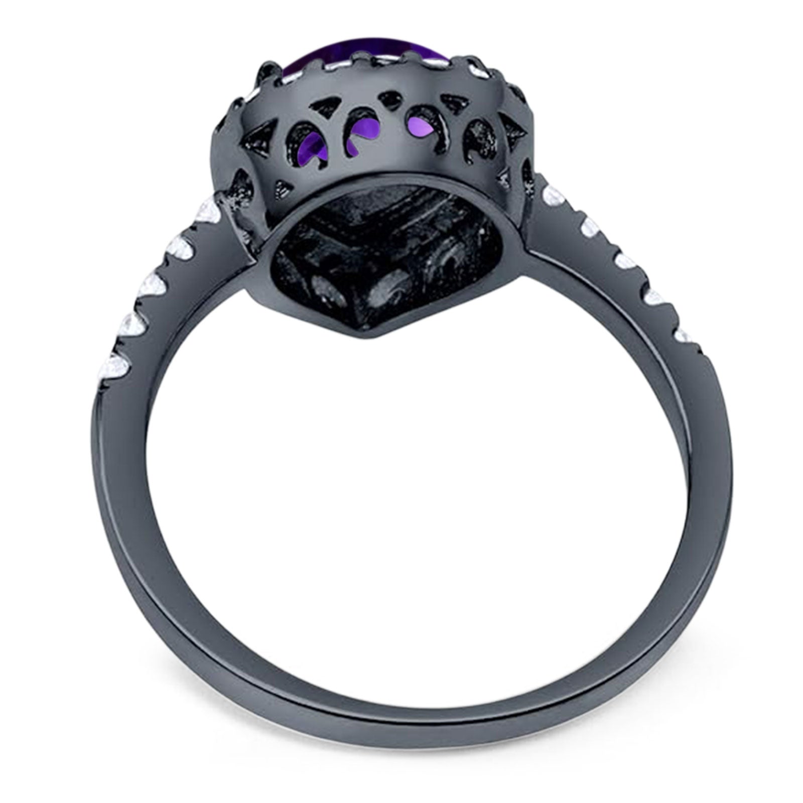 Art Deco Pear Teardrop Natural Amethyst Halo Wedding Ring 925 Sterling Silver
