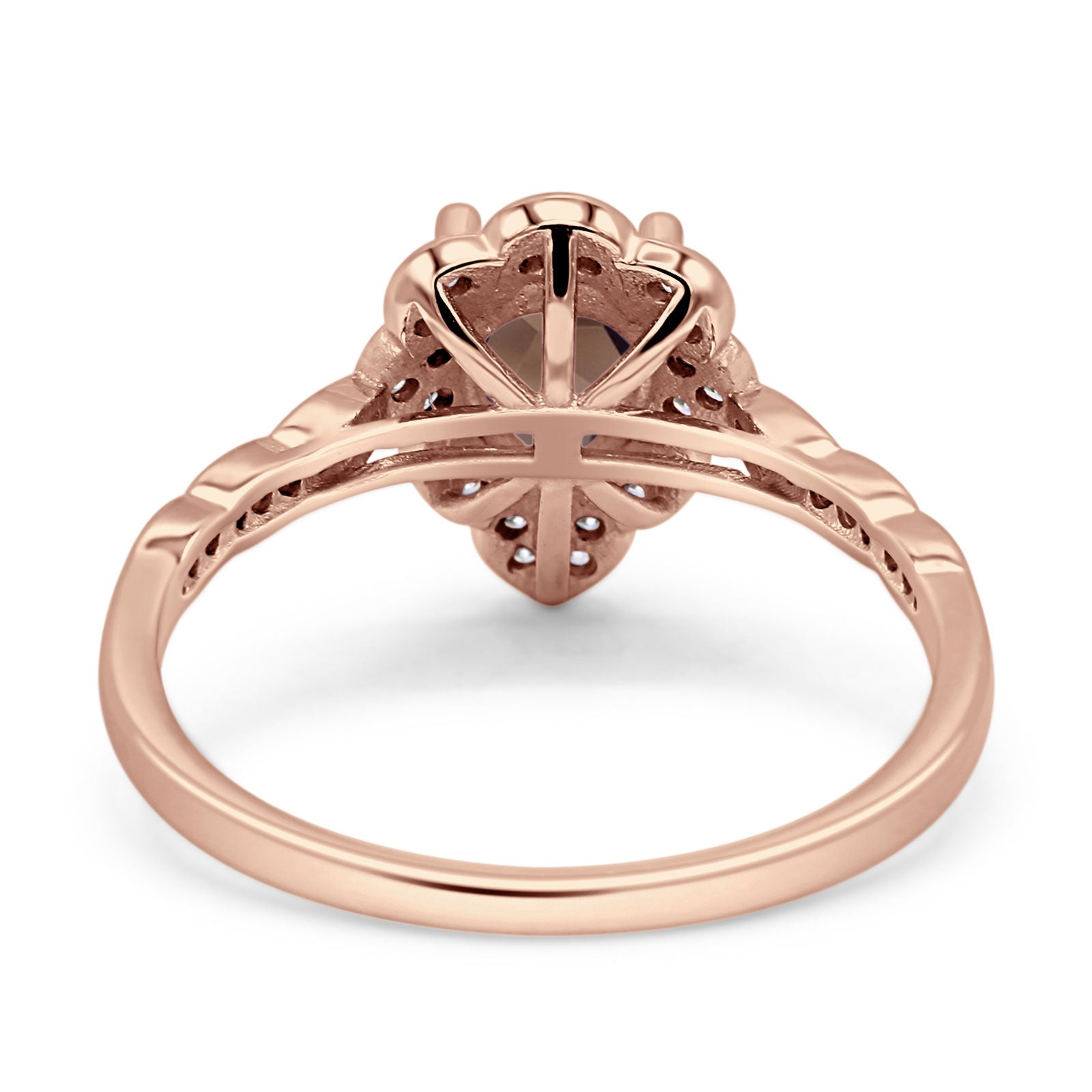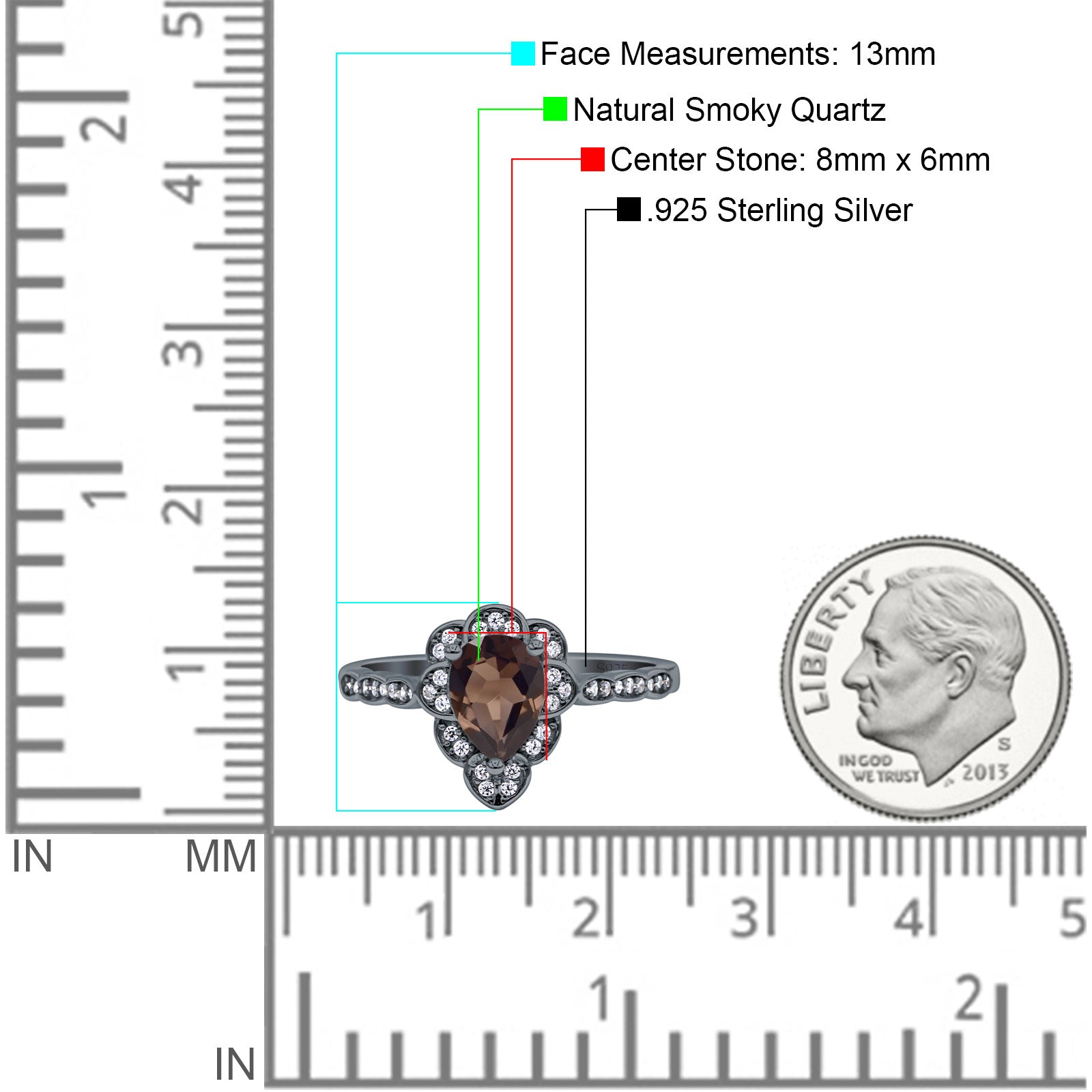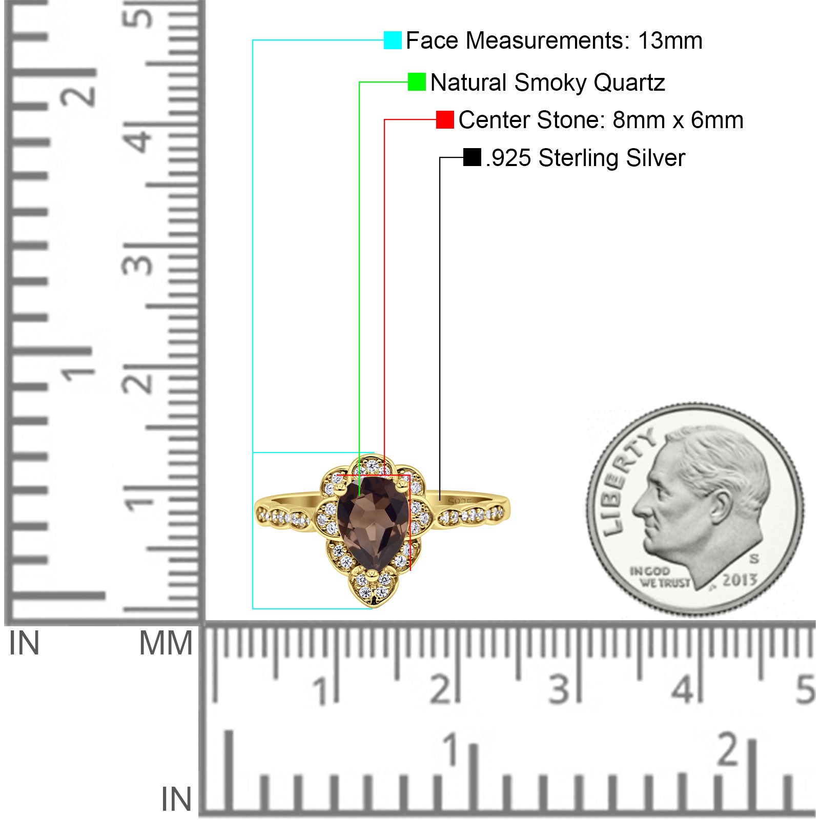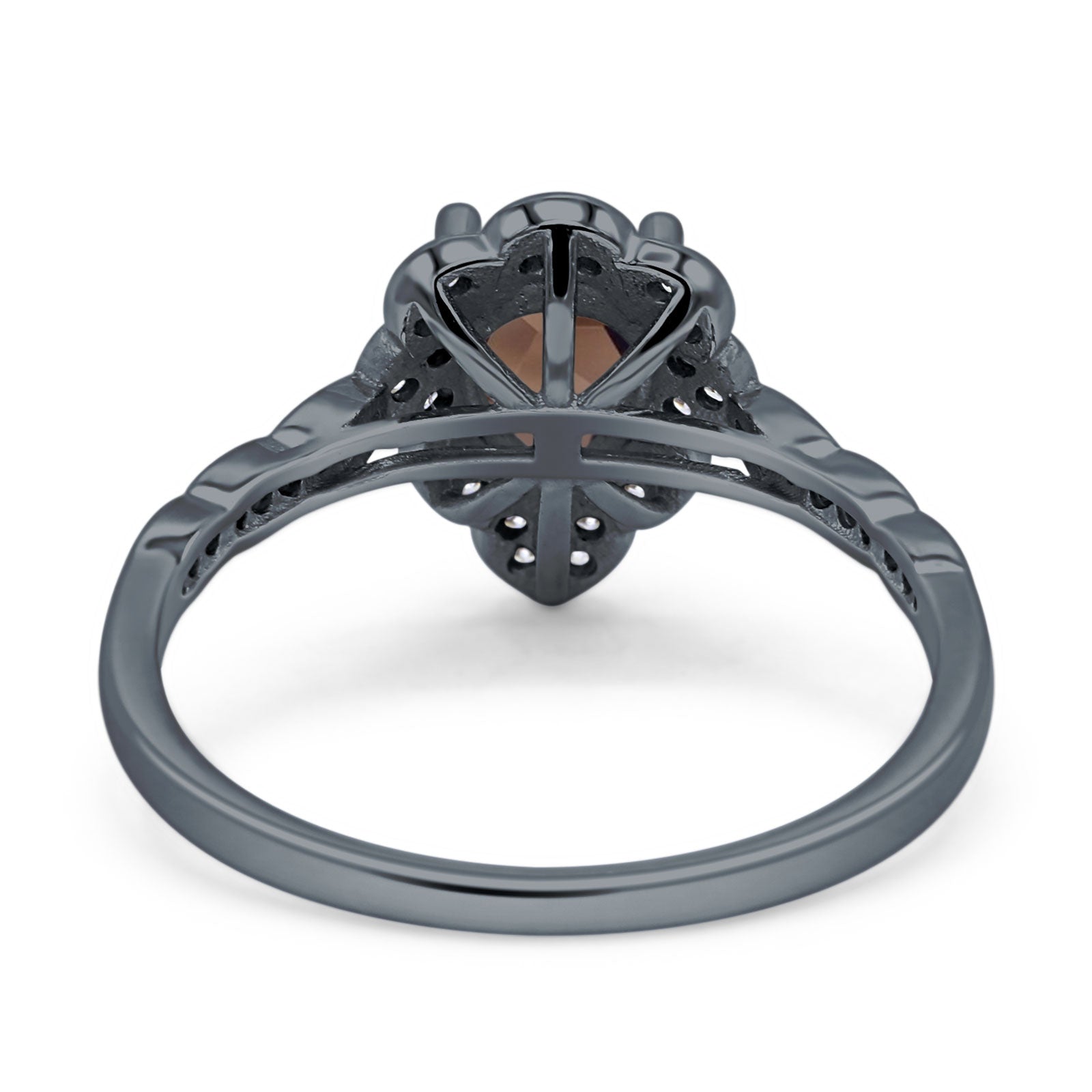 Art Deco Pear Teardrop Natural Chocolate Smoky Quartz Halo Ring 925 Sterling Silver