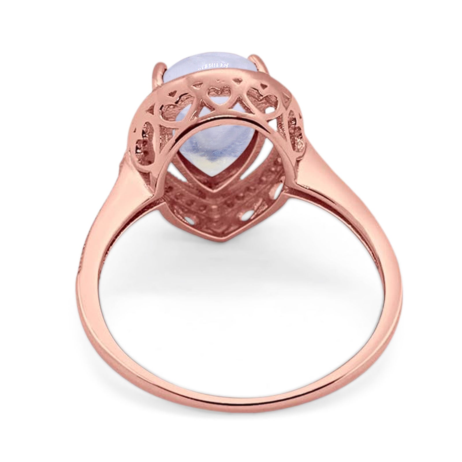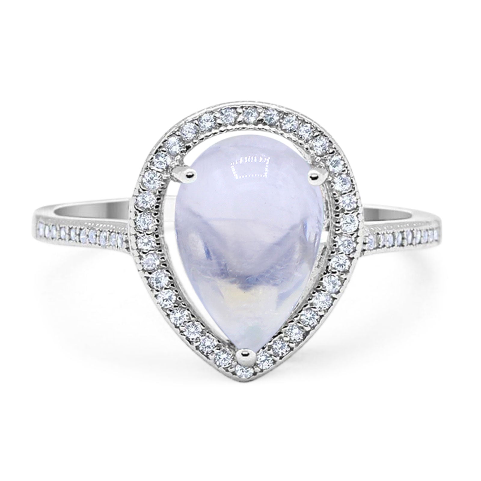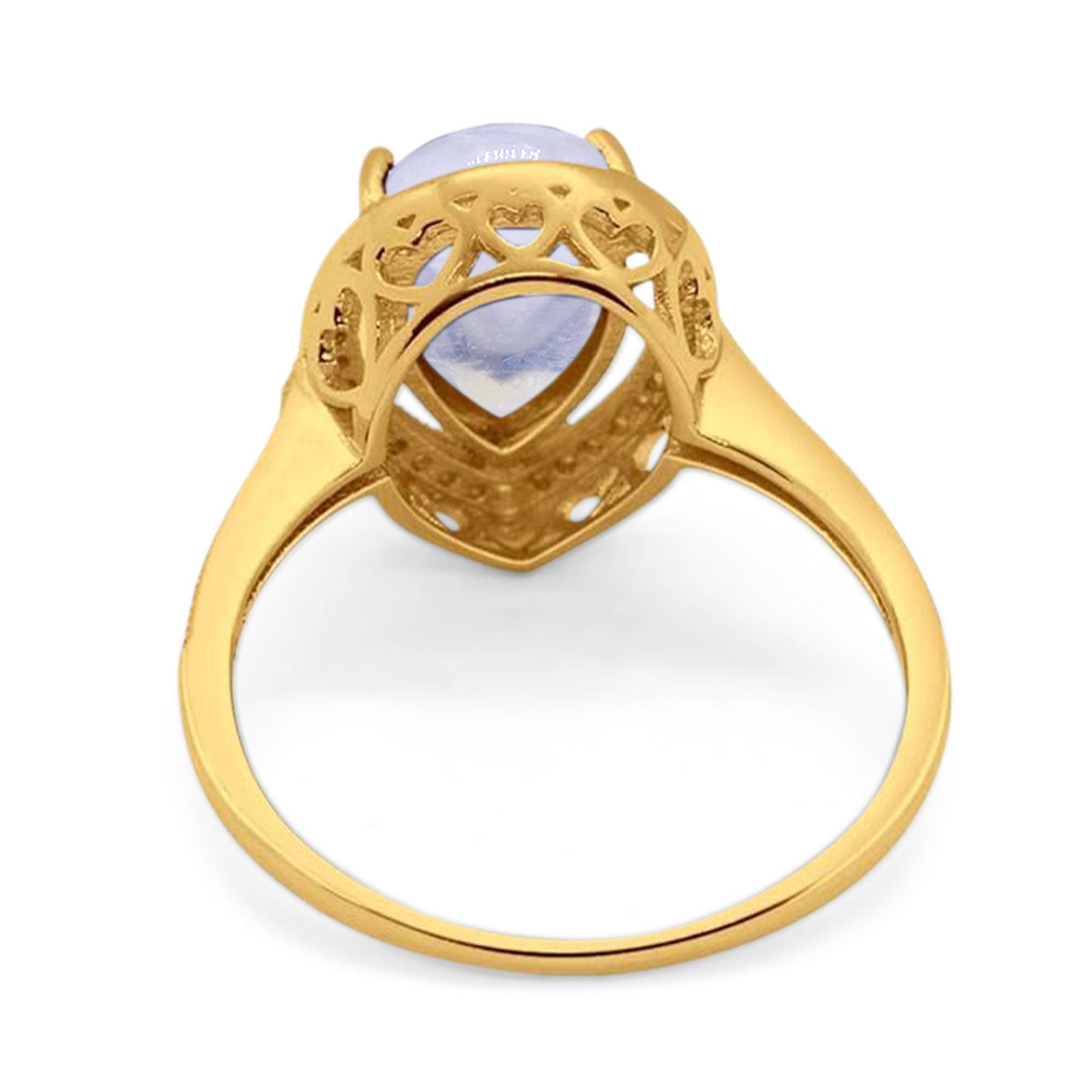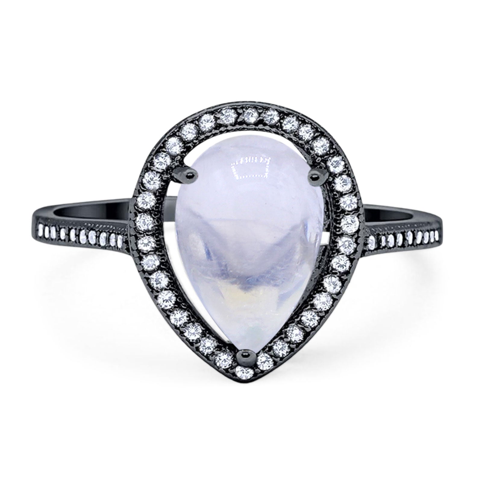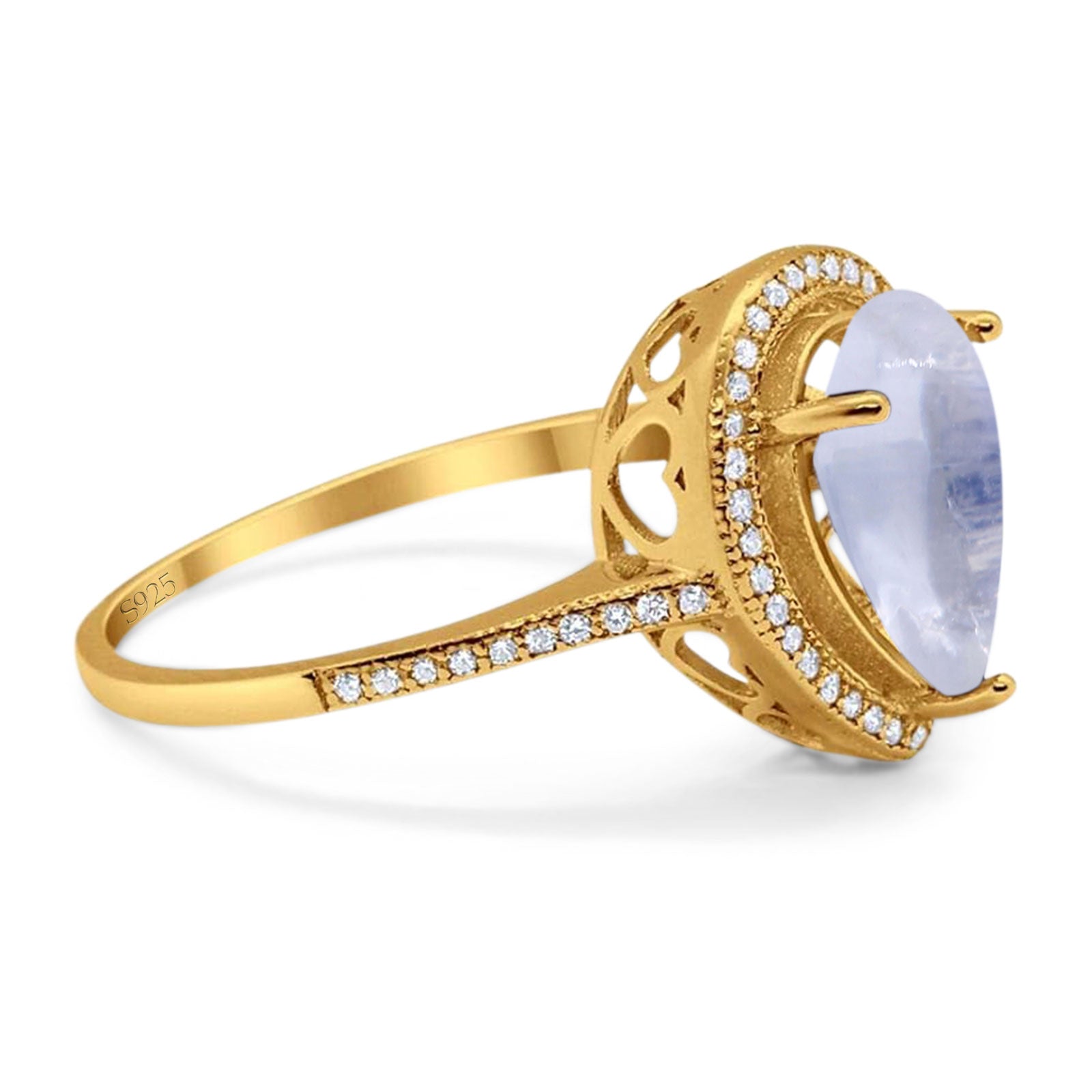 Art Deco Pear Teardrop Natural Moonstone Cocktail Ring 925 Sterling Silver