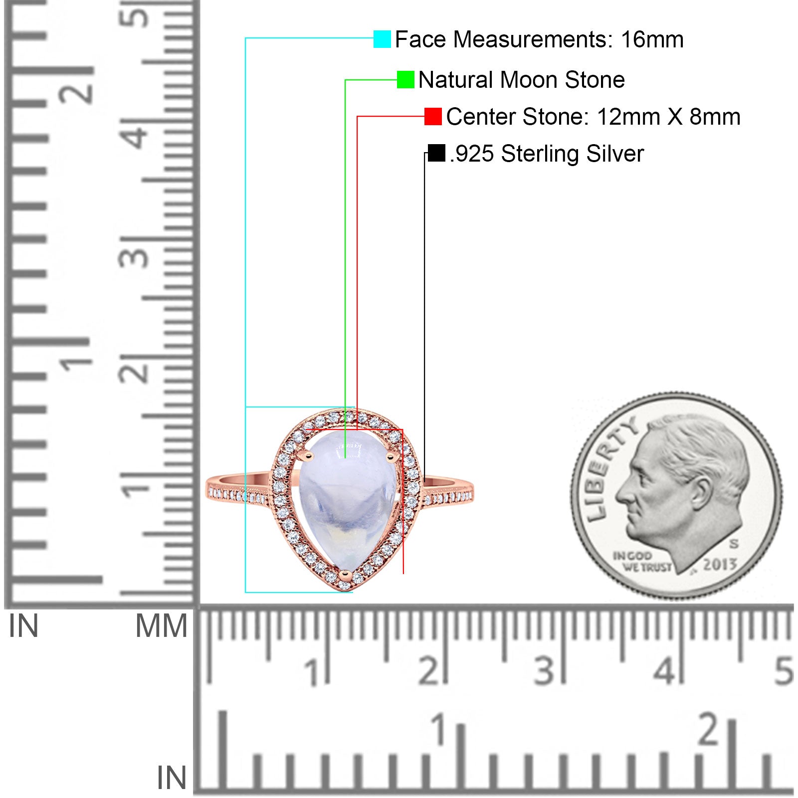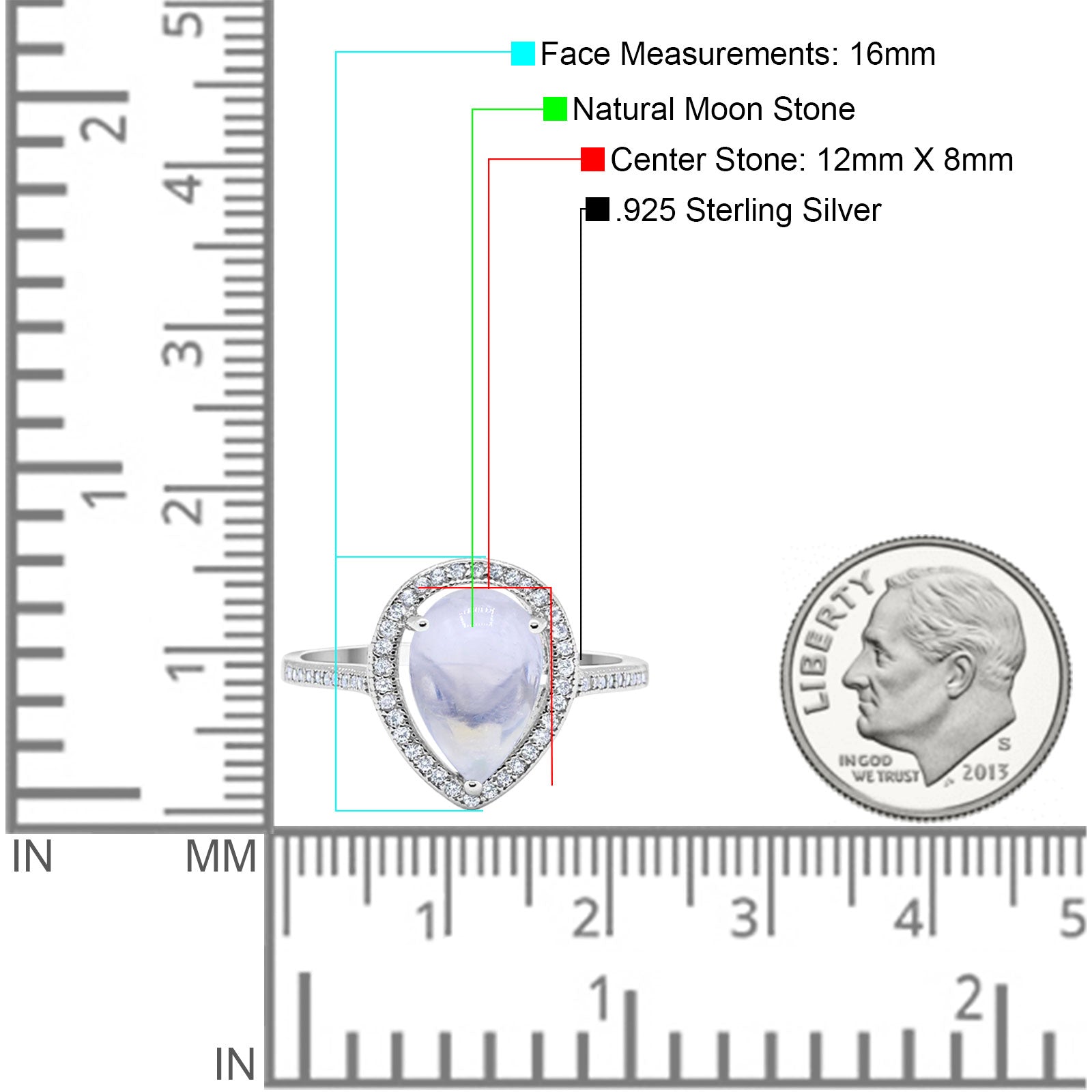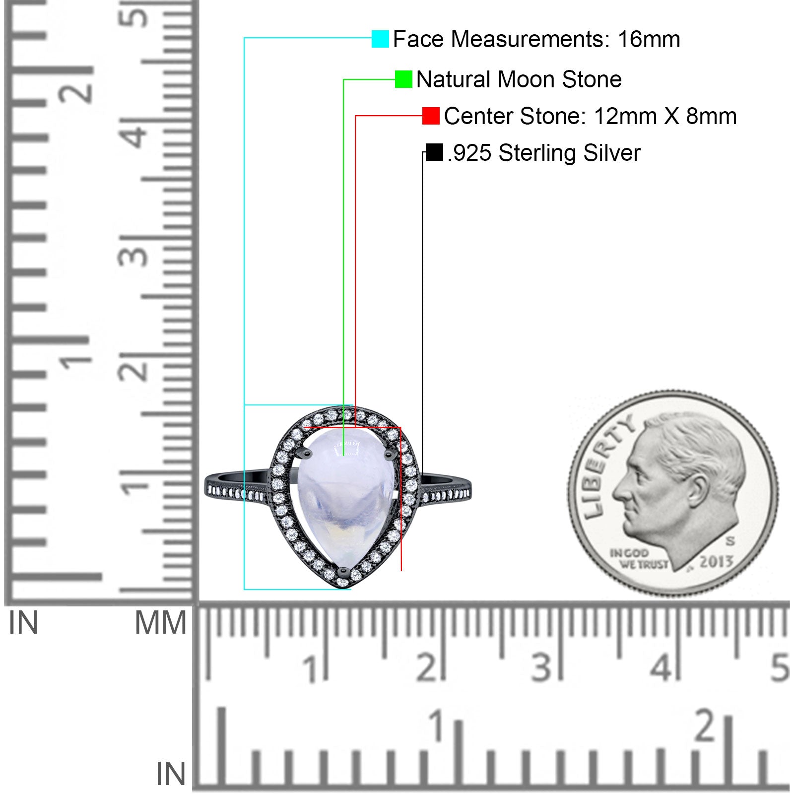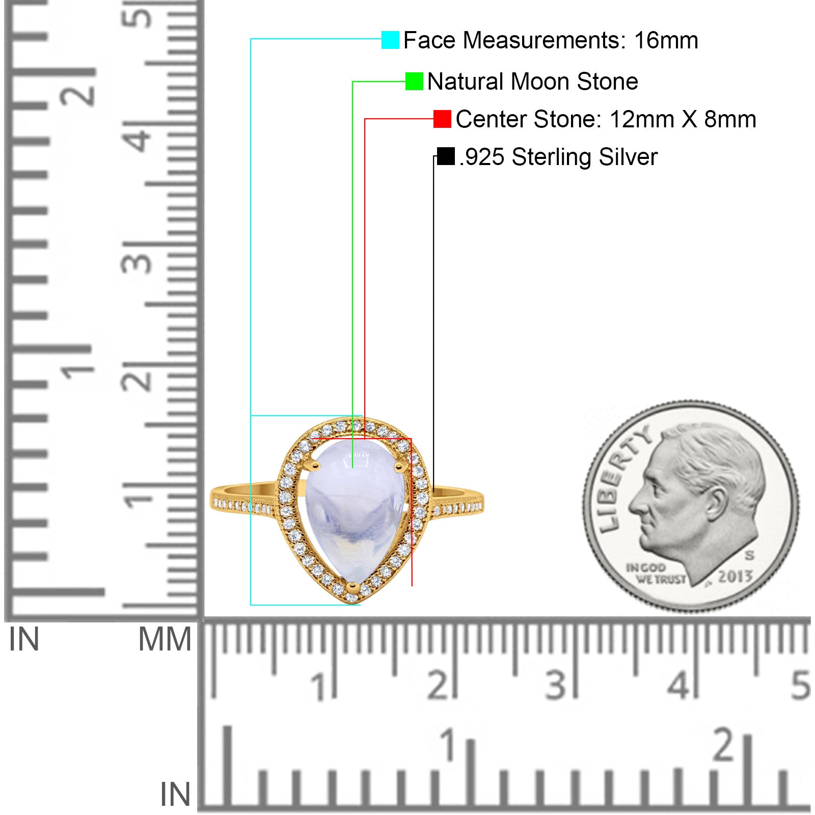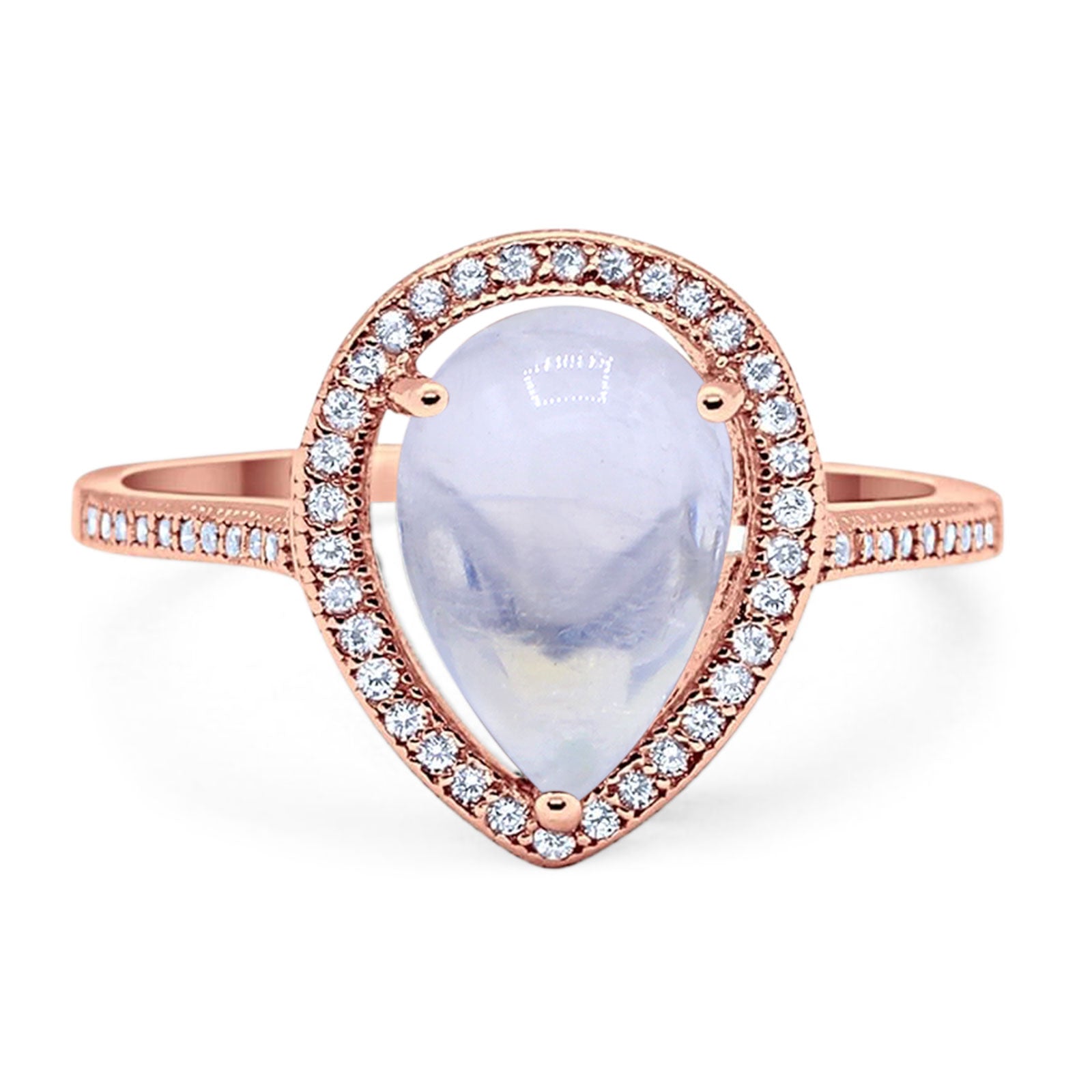 Art Deco Pear Teardrop Natural Moonstone Cocktail Ring 925 Sterling Silver