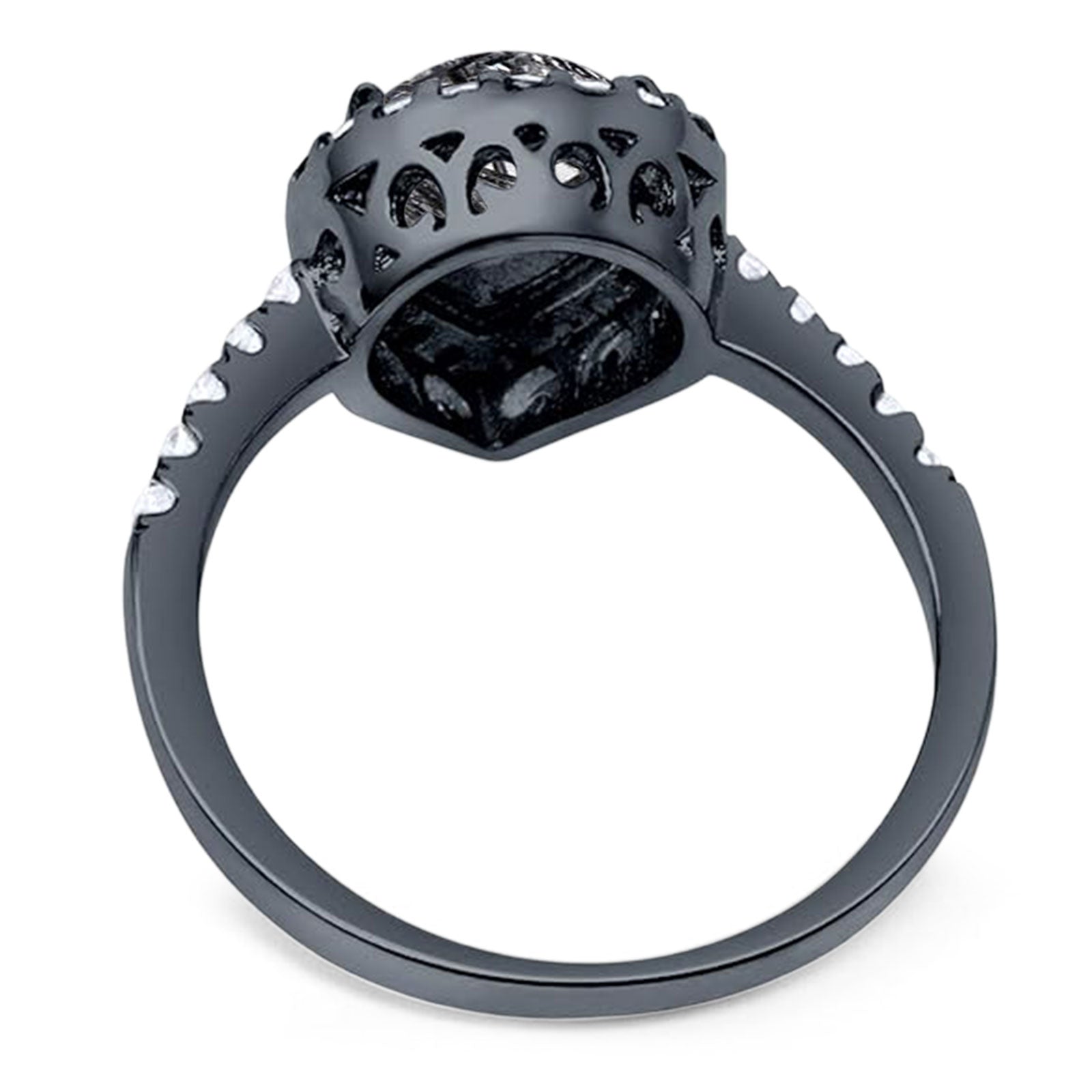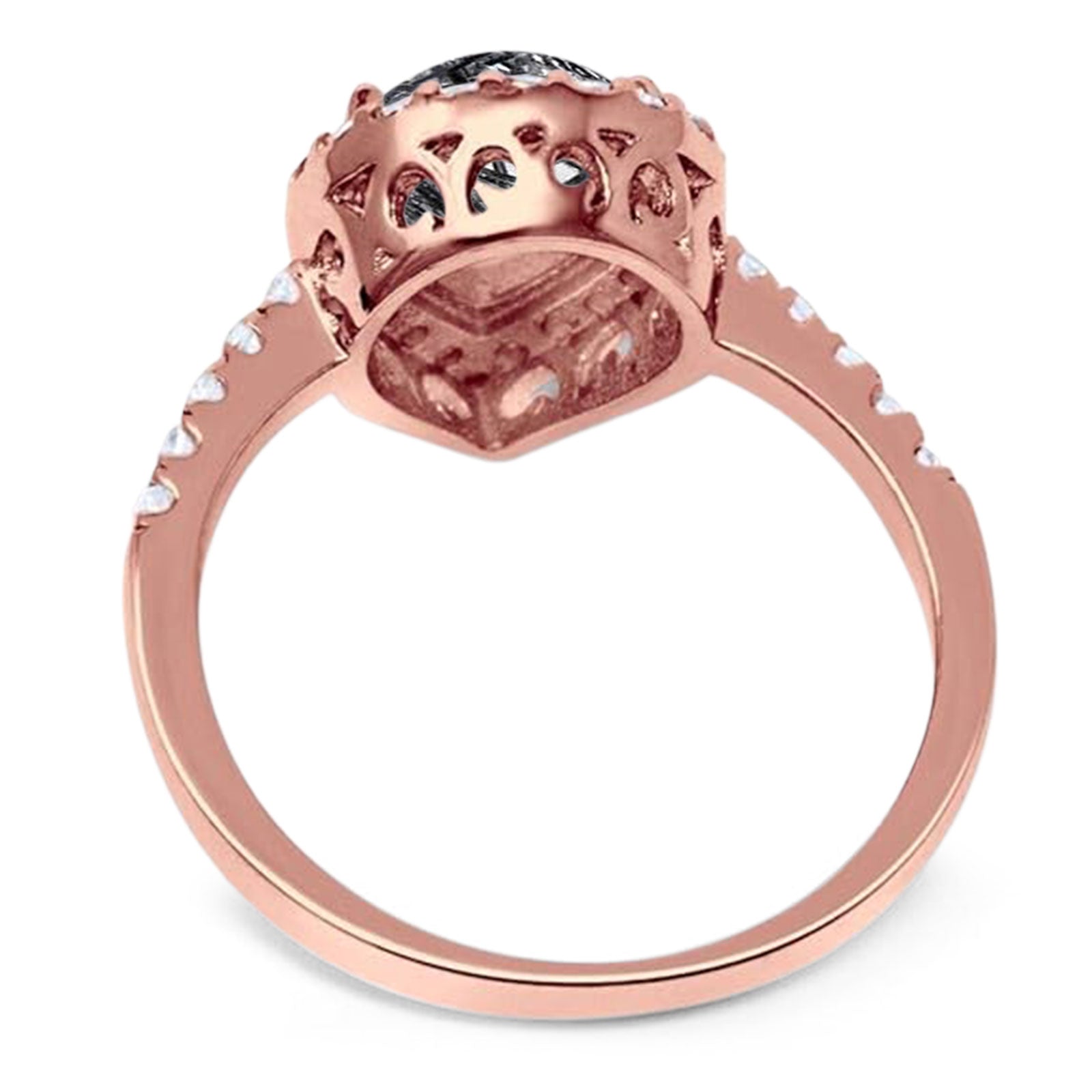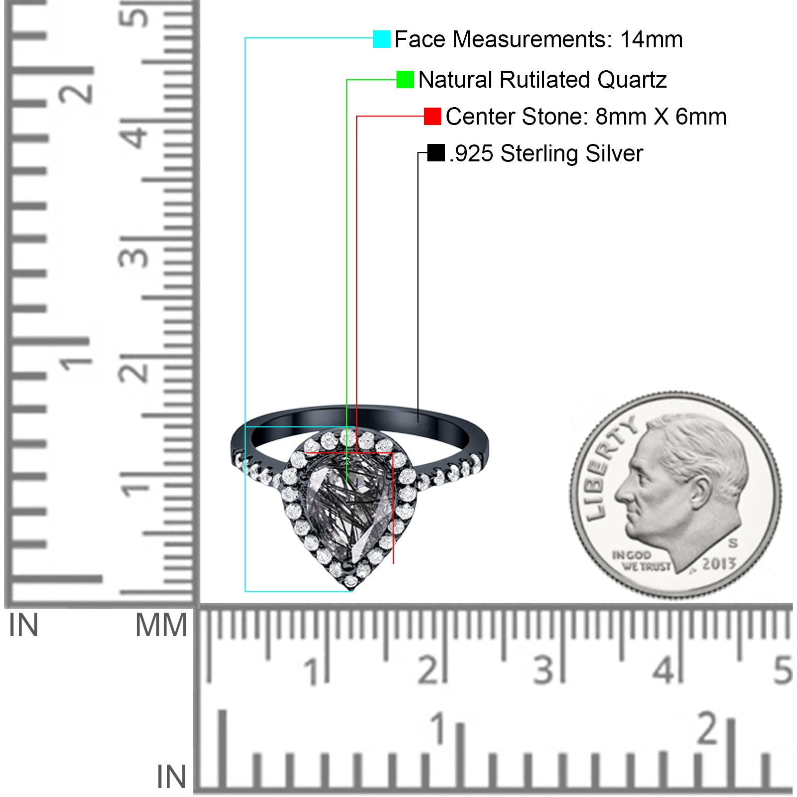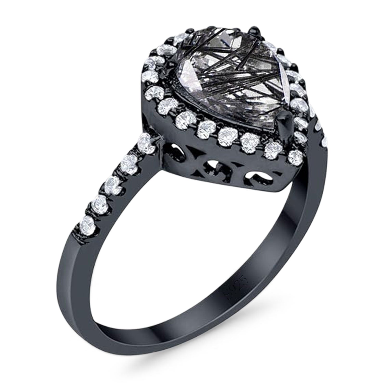 Art Deco Pear Teardrop Natural Rutilated Quartz Halo Wedding Ring 925 Sterling Silver
