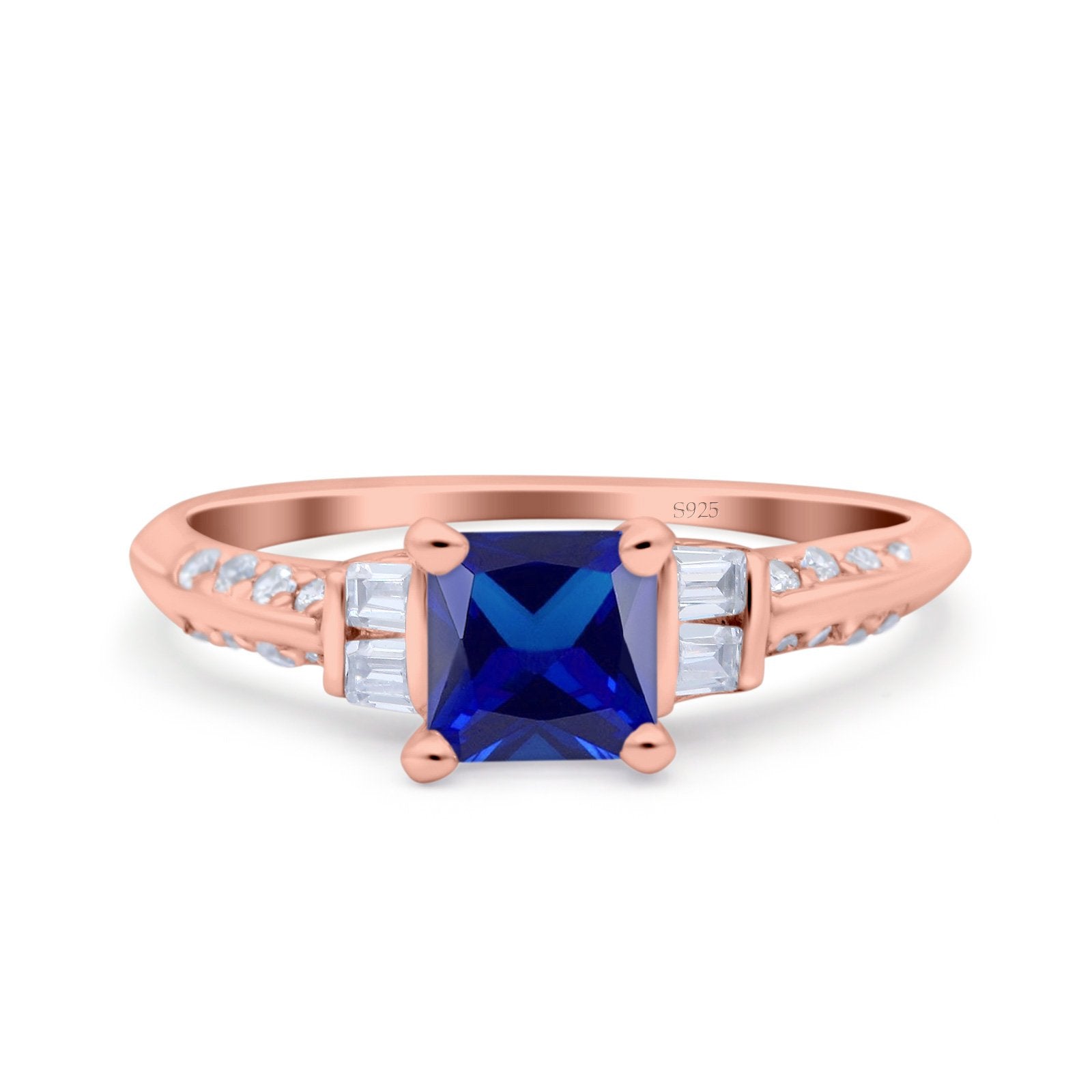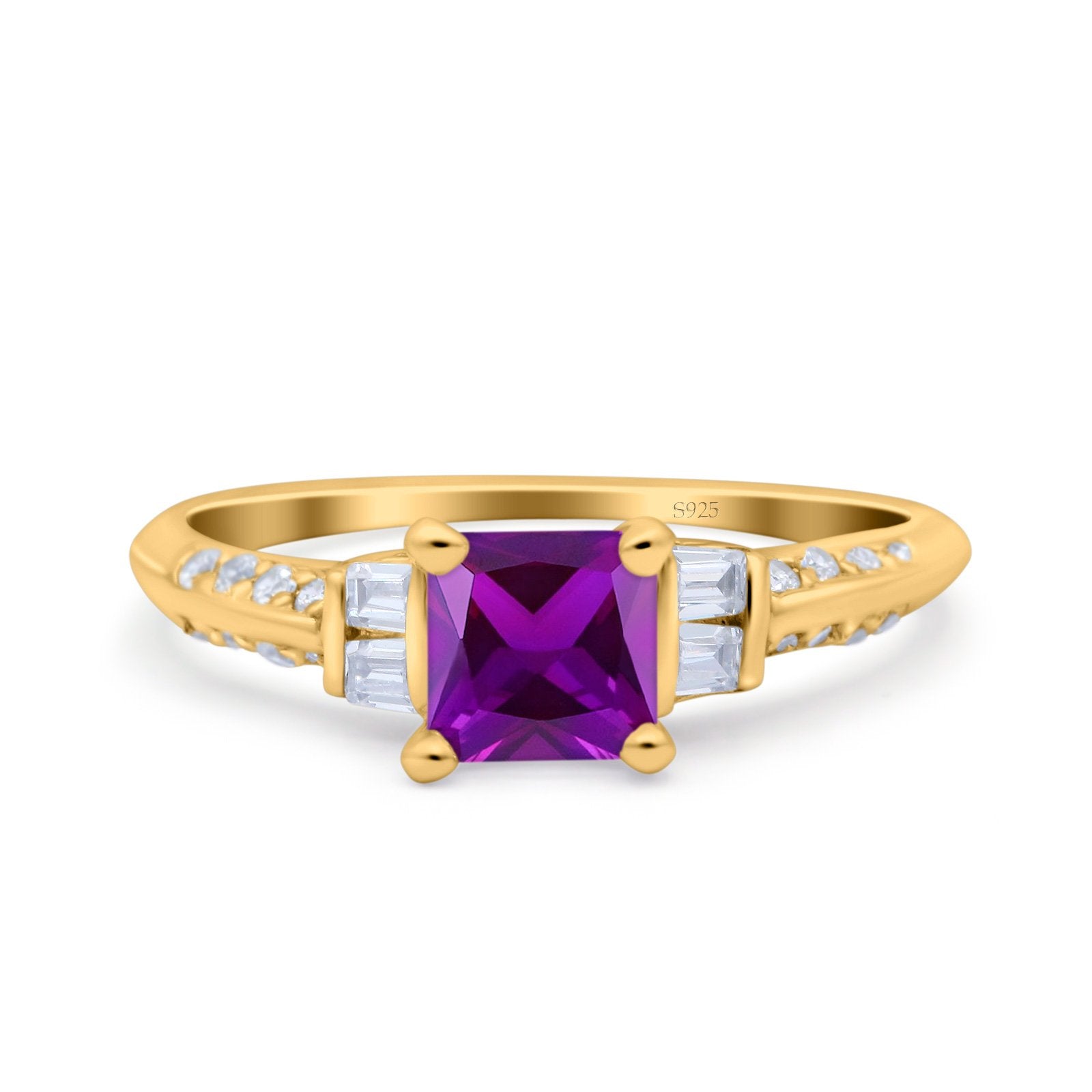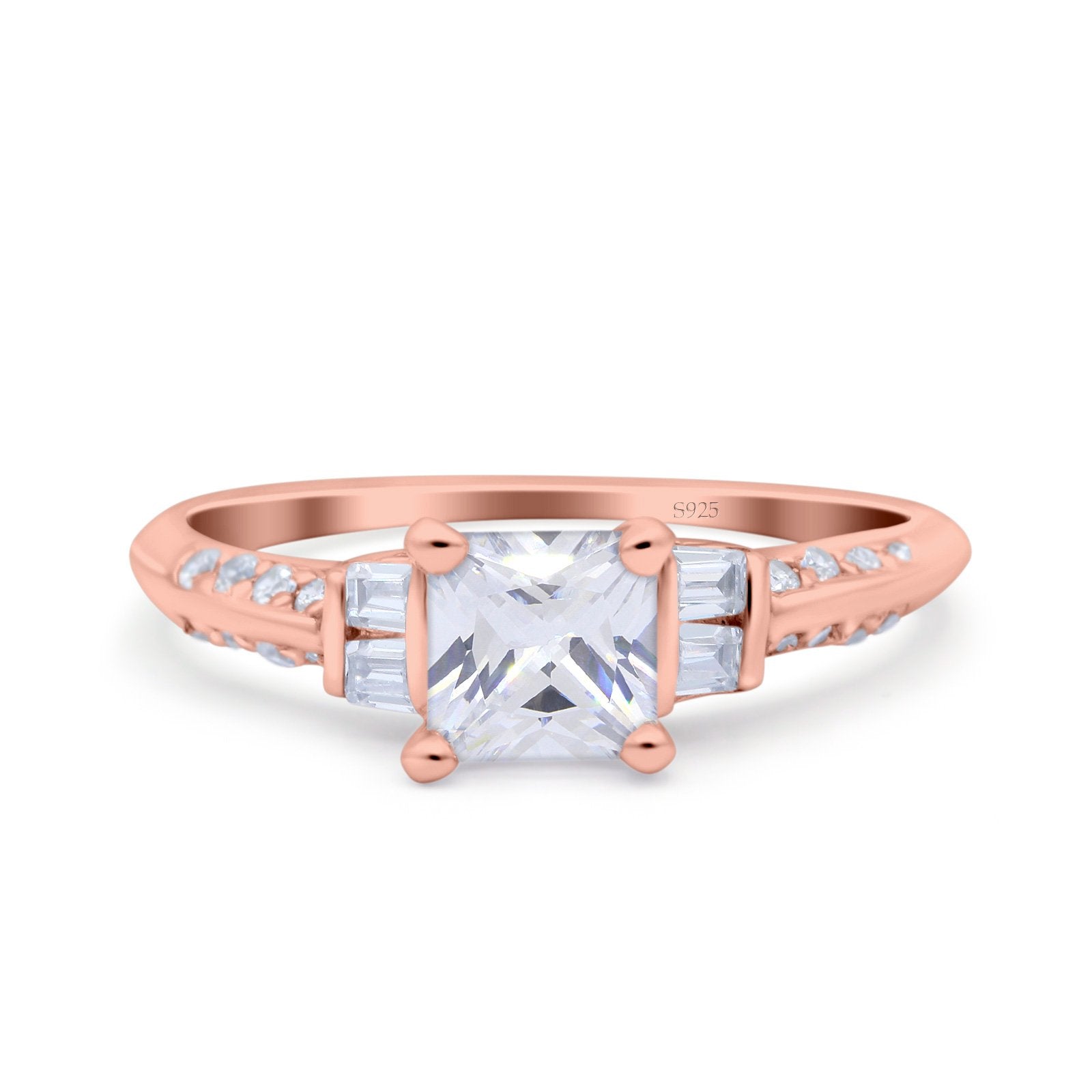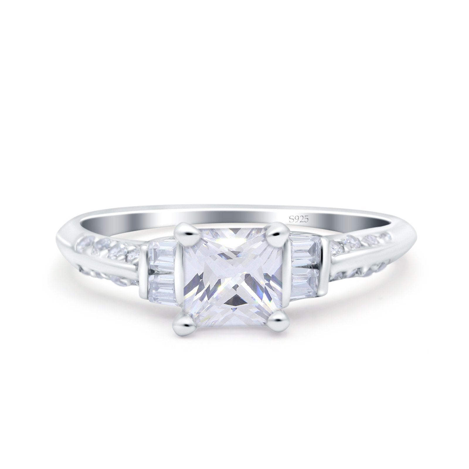 Art Deco Princess Cut Wedding Engagement Bridal Ring Baguette Round Simulated Cubic Zirconia 925 Sterling Silver