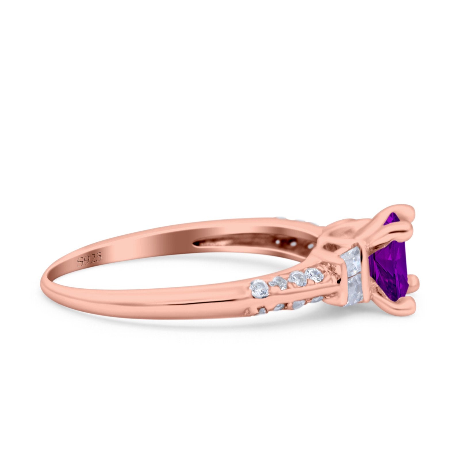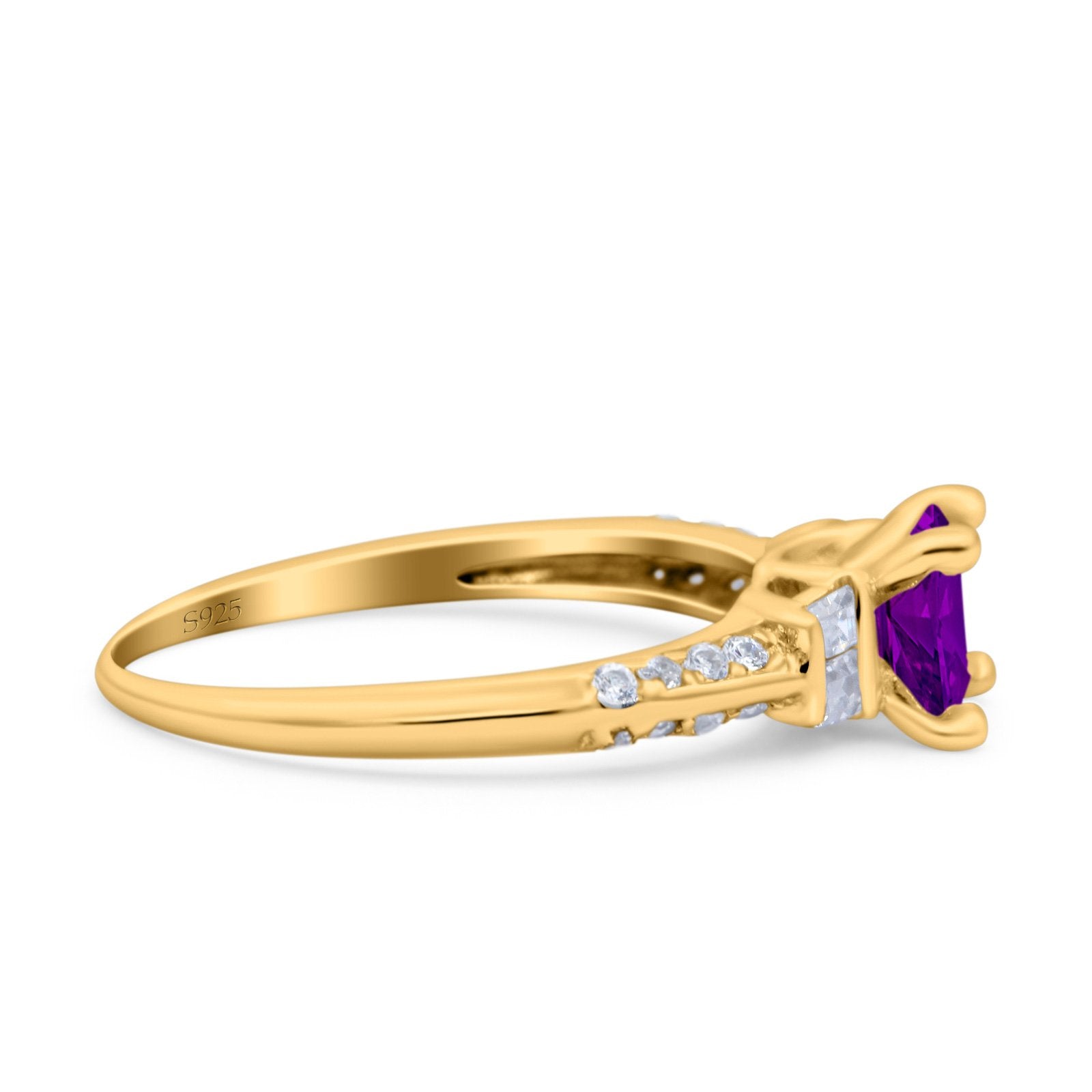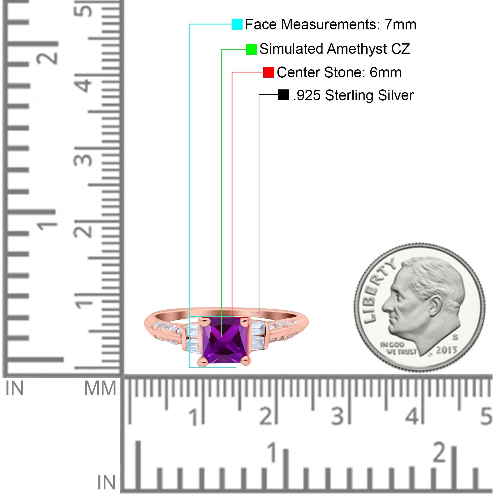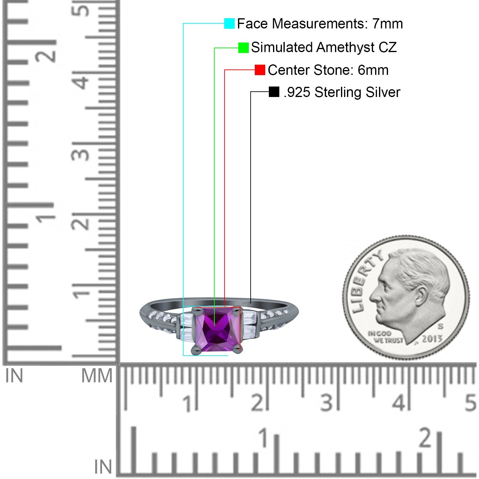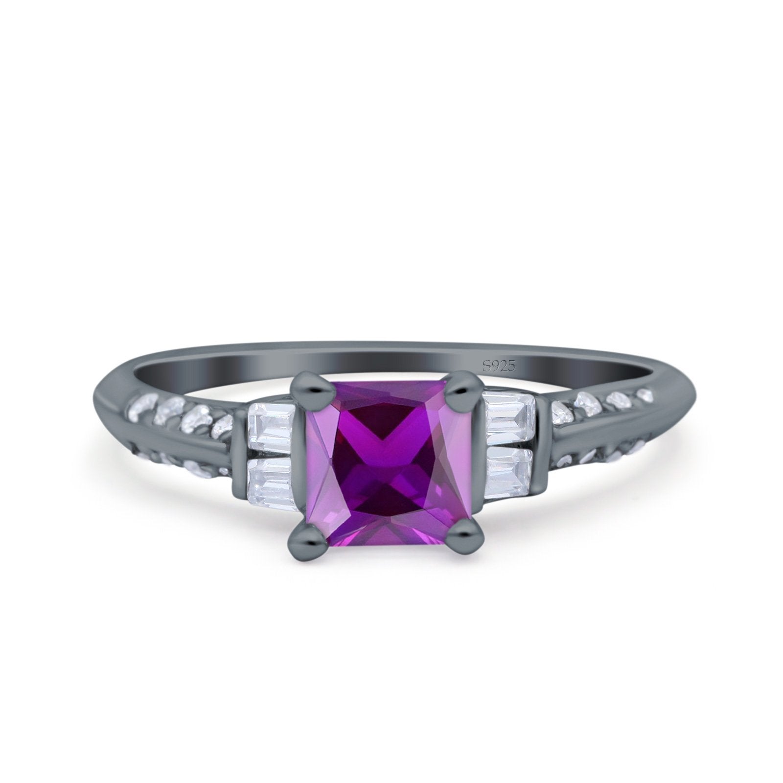 Art Deco Princess Cut Wedding Engagement Bridal Ring Baguette Round Simulated Cubic Zirconia 925 Sterling Silver