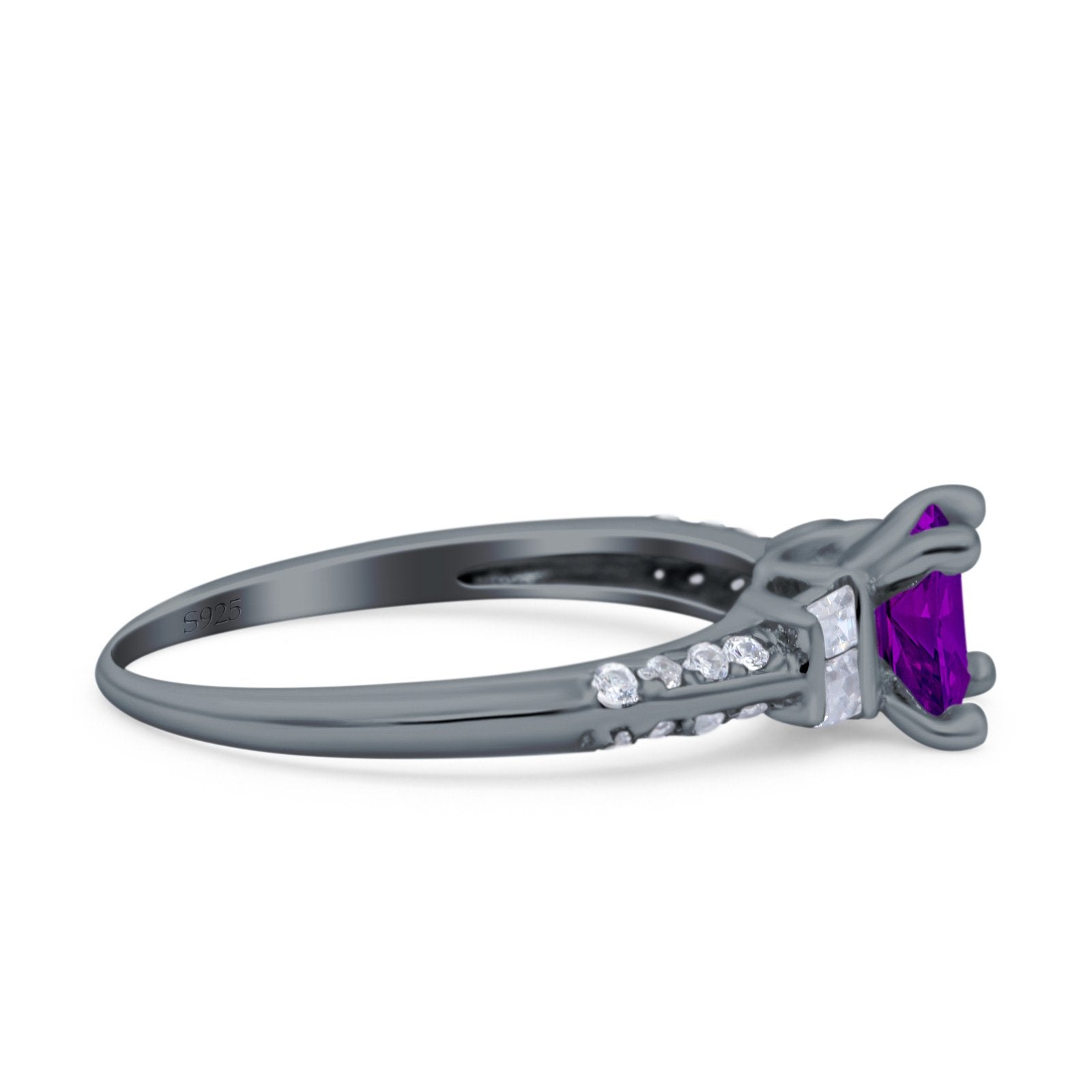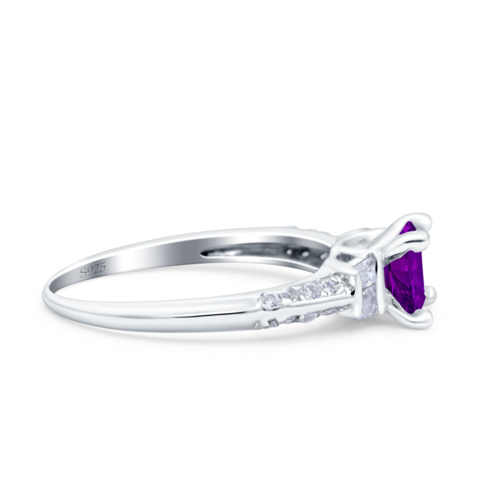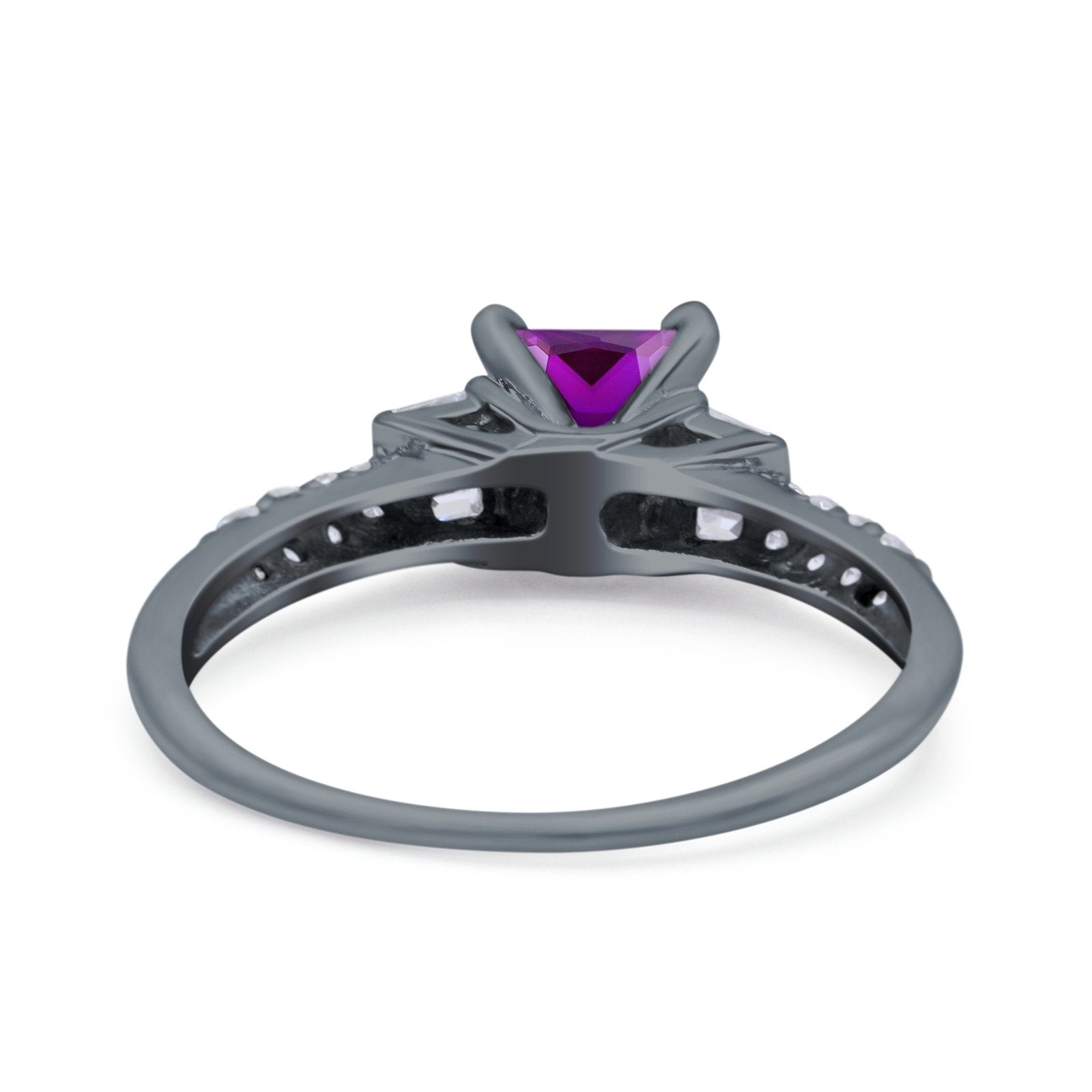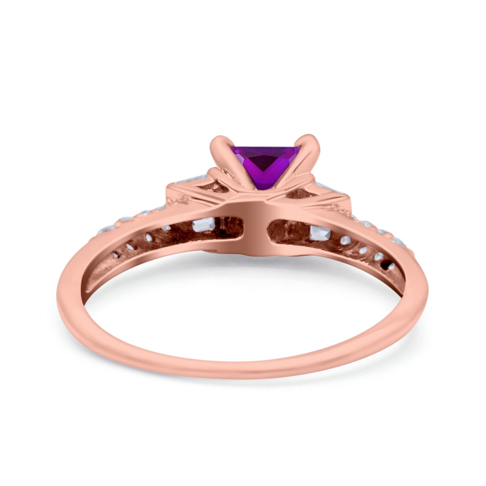 Art Deco Princess Cut Wedding Engagement Bridal Ring Baguette Round Simulated Cubic Zirconia 925 Sterling Silver