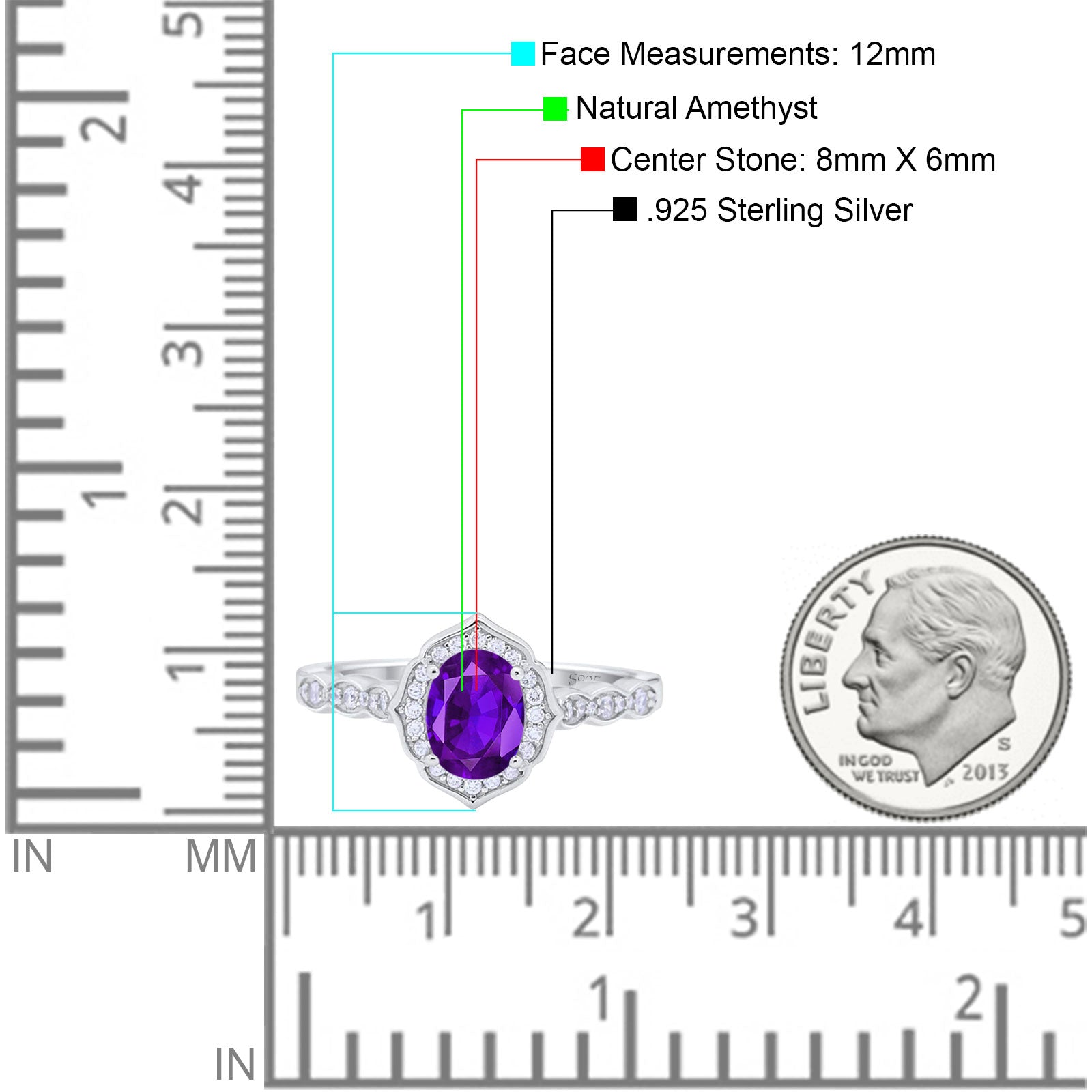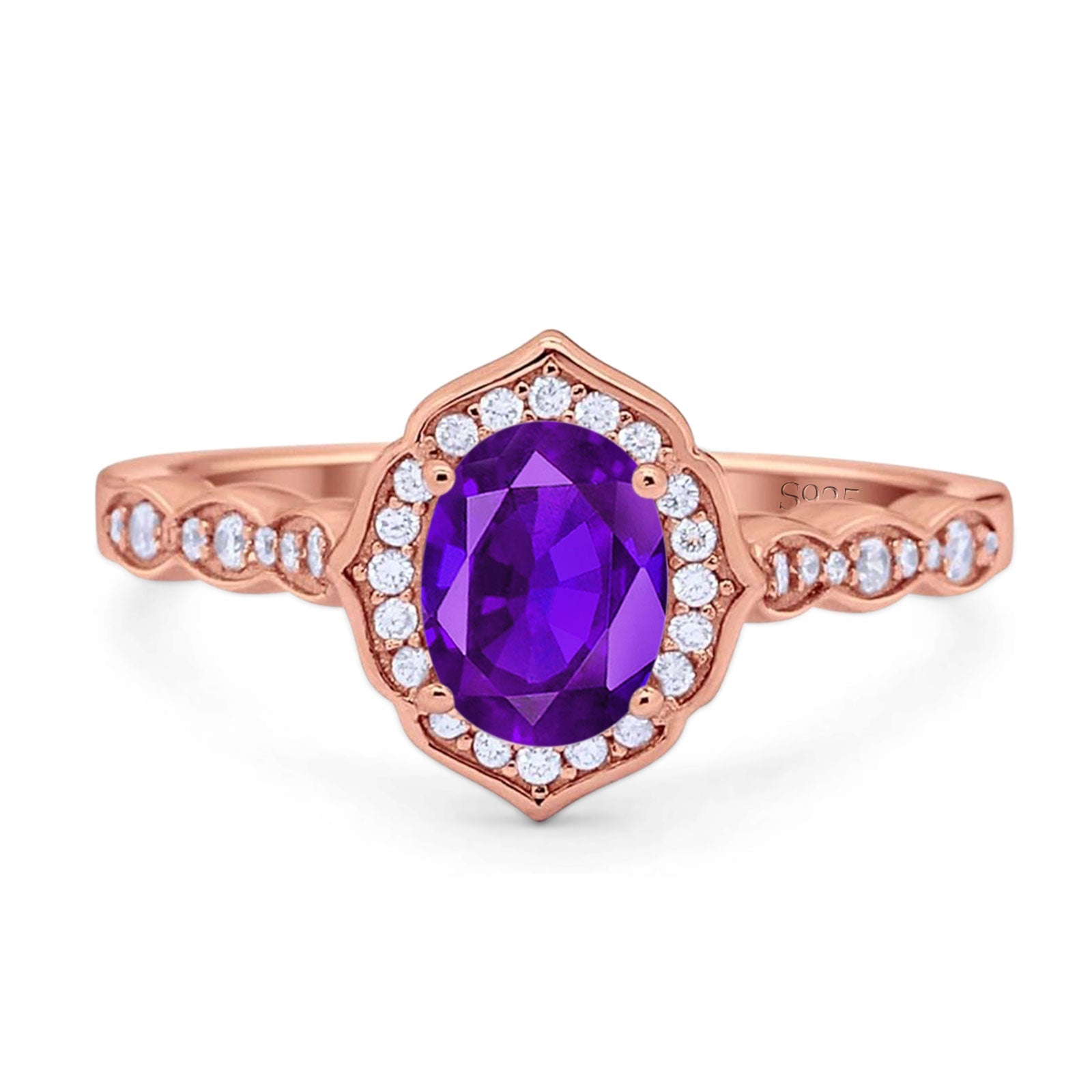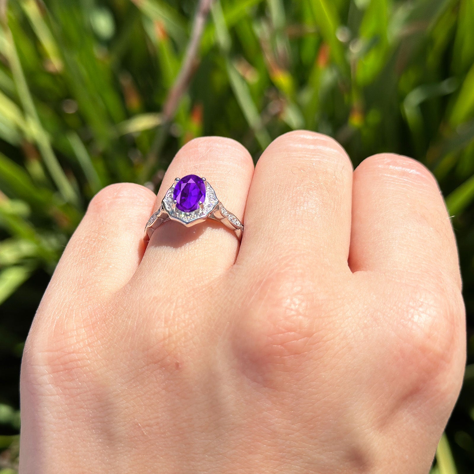 Art Deco Ring Oval Natural Amethyst Floral Ring 925 Sterling Silver