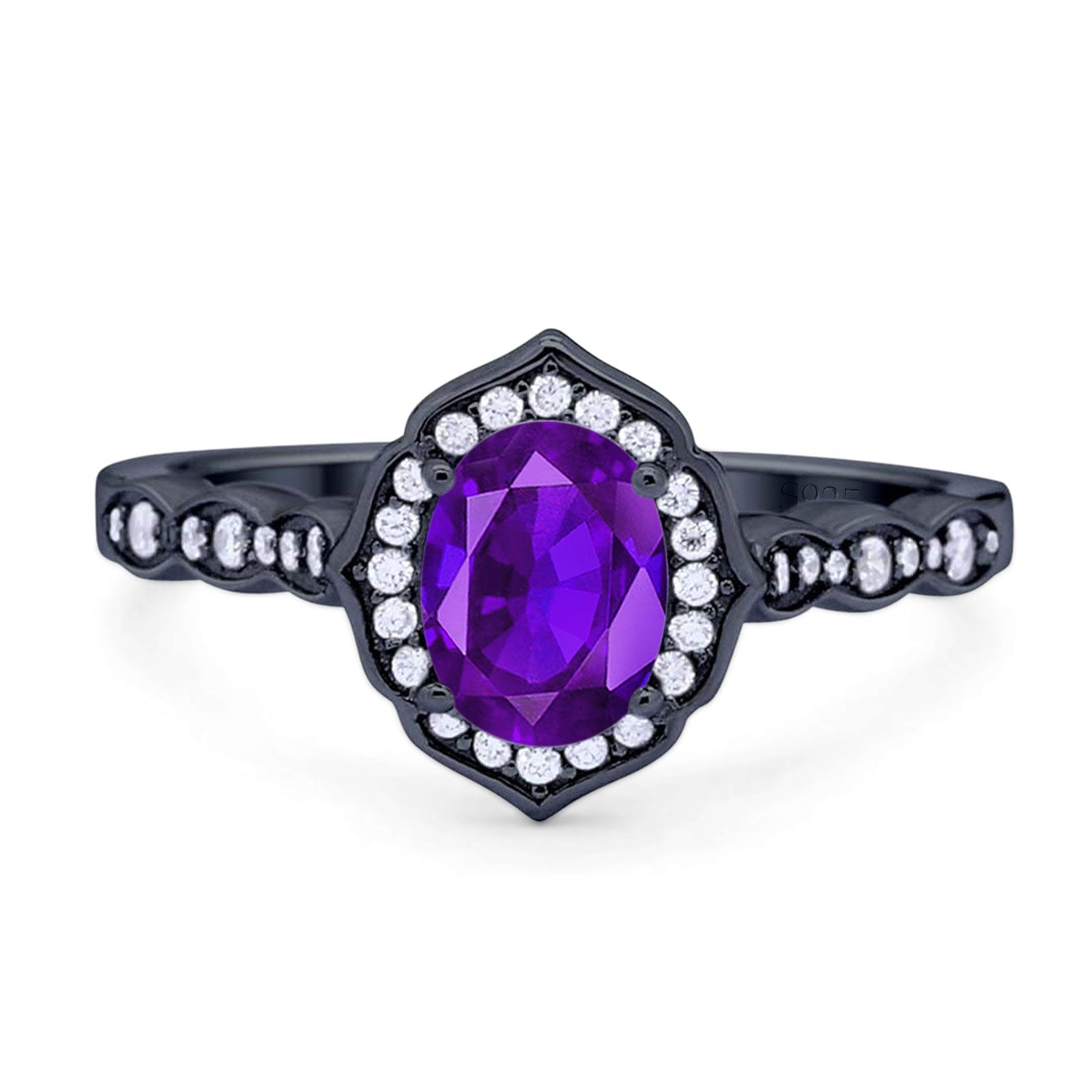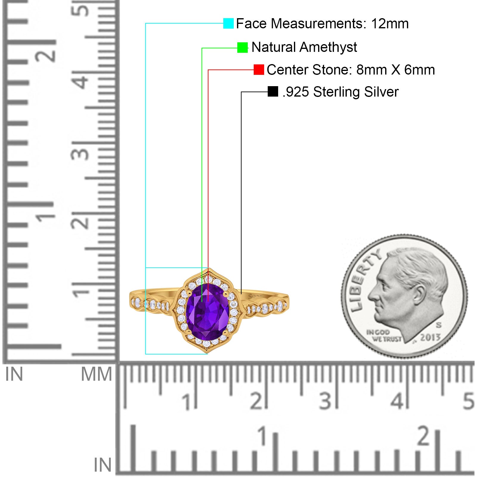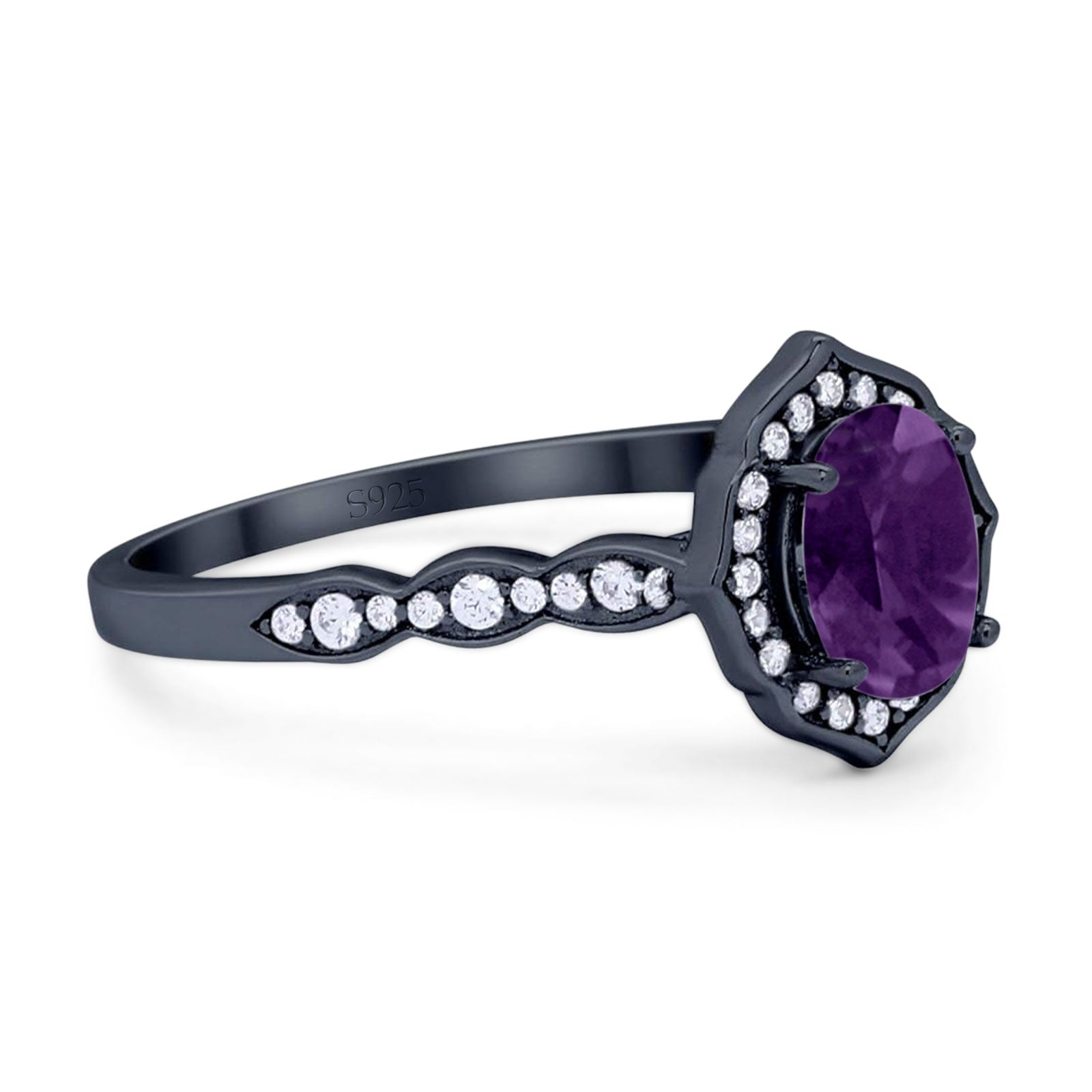 Art Deco Ring Oval Natural Amethyst Floral Ring 925 Sterling Silver
