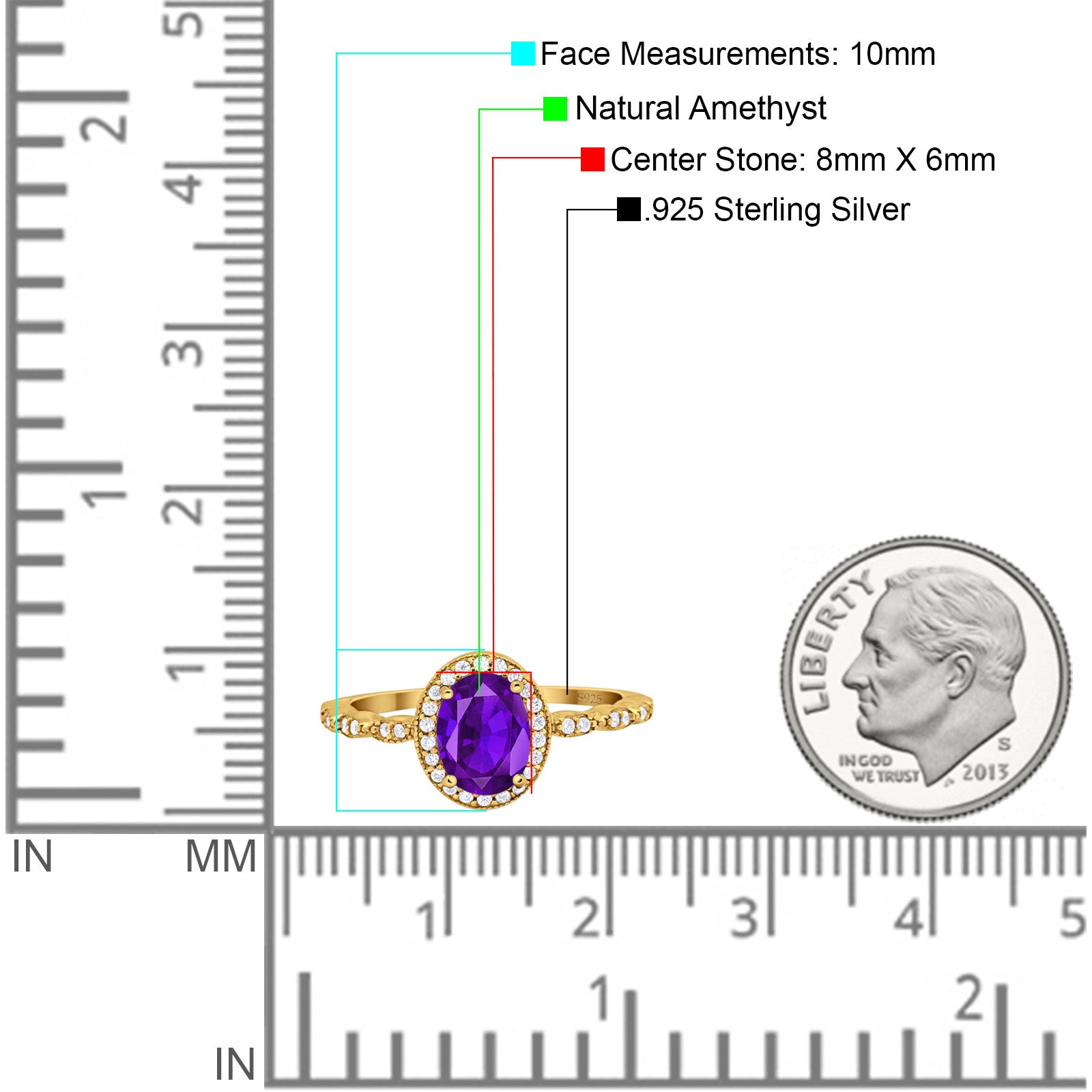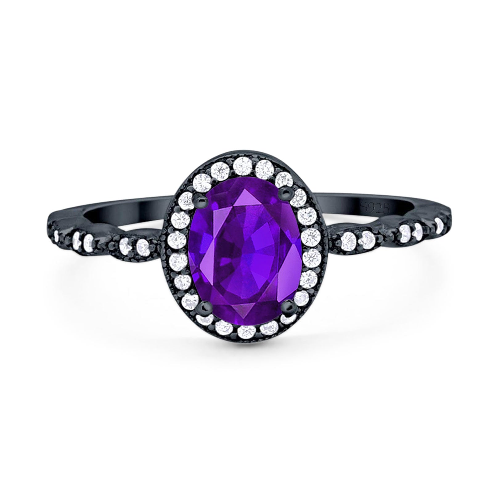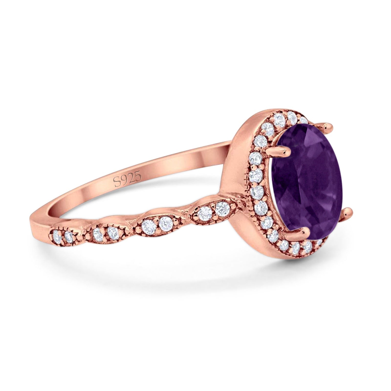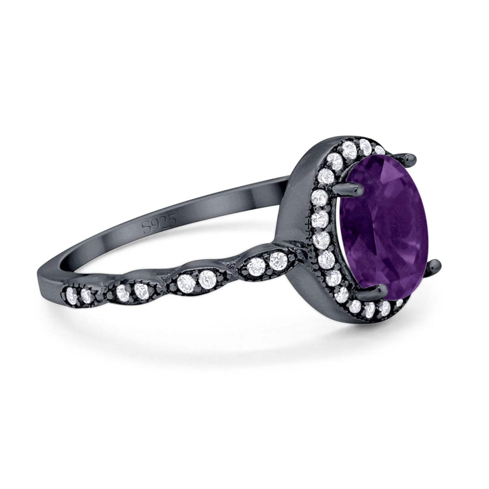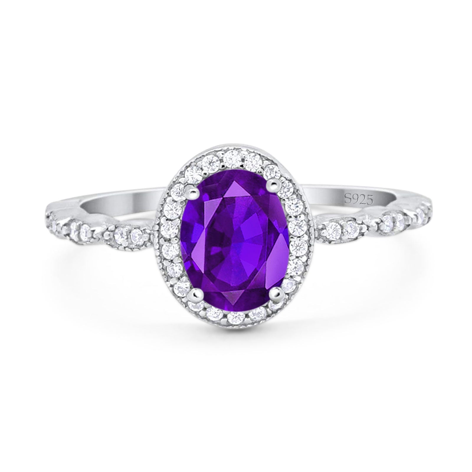 Art Deco Ring Oval Natural Amethyst Wedding Ring 925 Sterling Silver